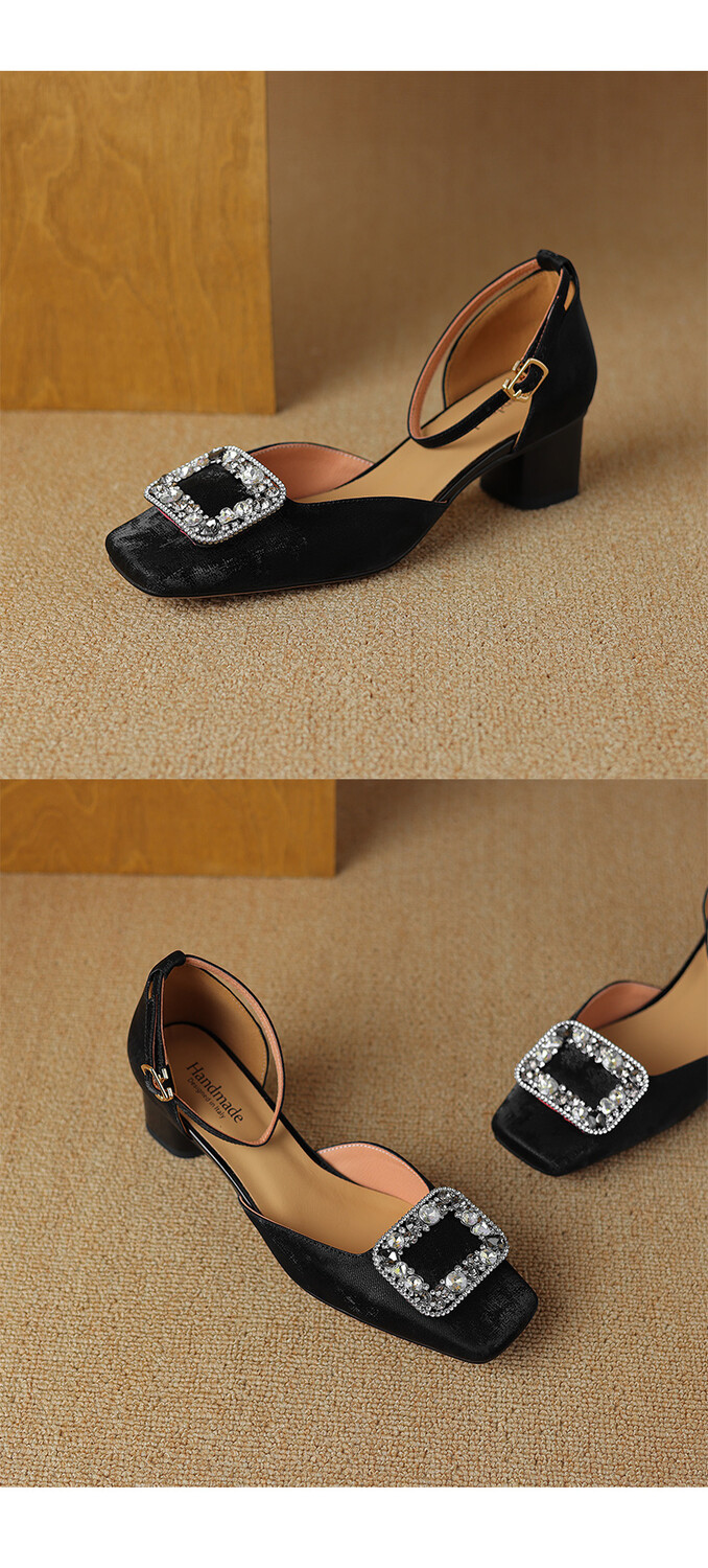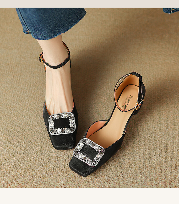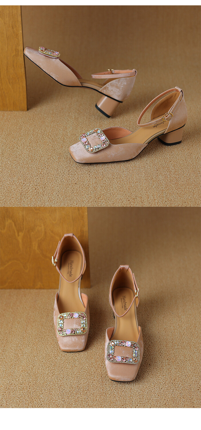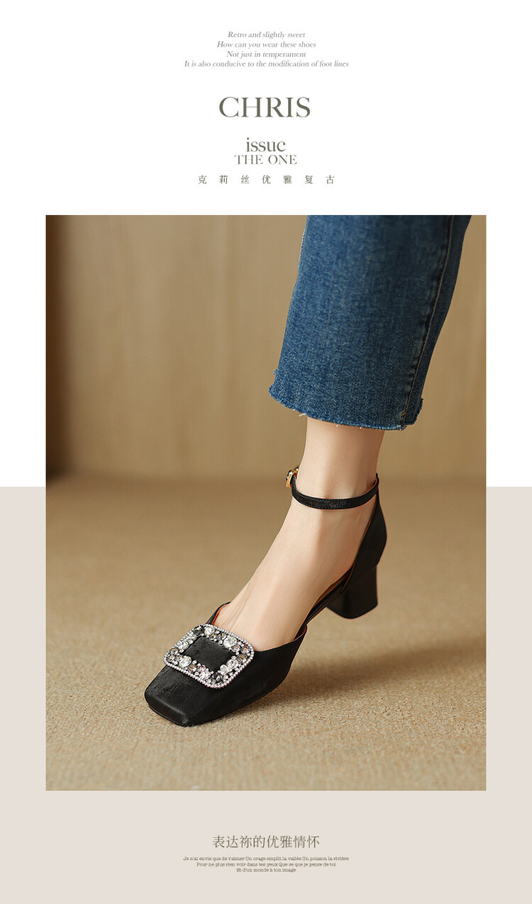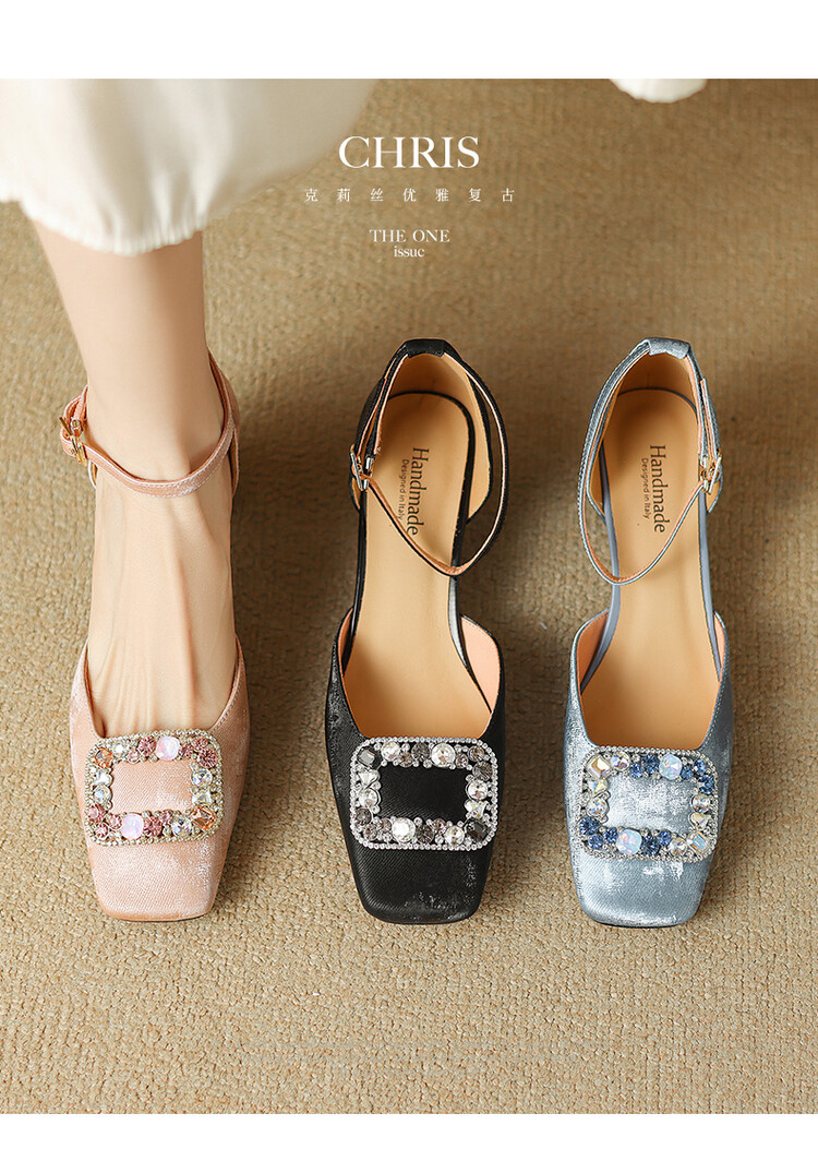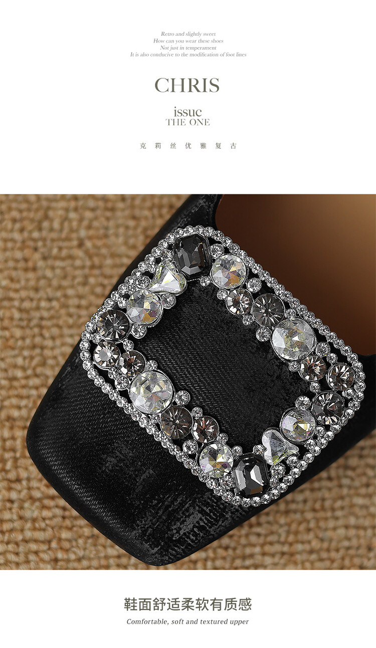 【预售5天】高级感满满水钻方扣时尚低跟包头凉鞋2024夏季仙女风氛围感凉鞋女LD&6739