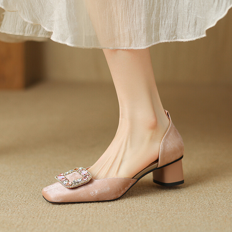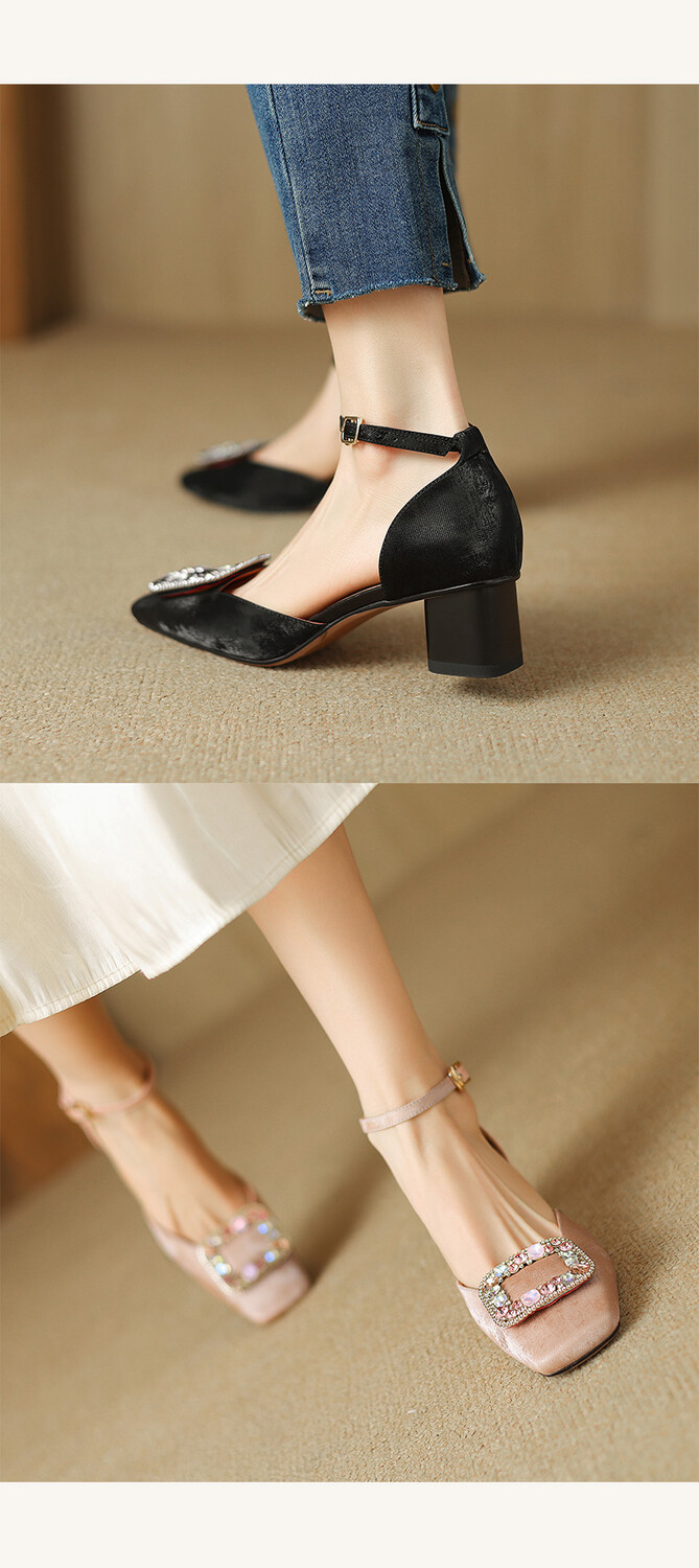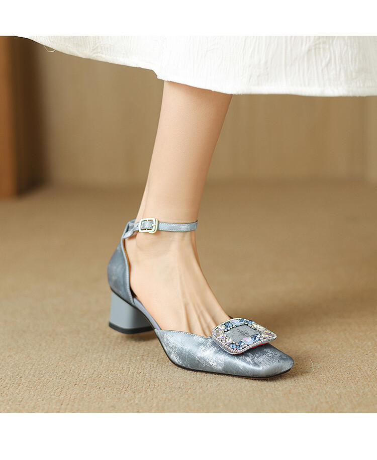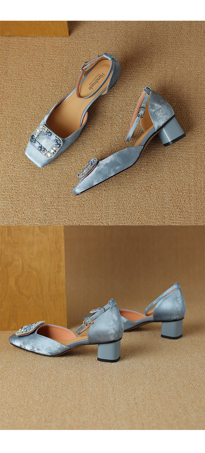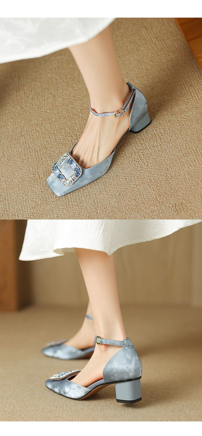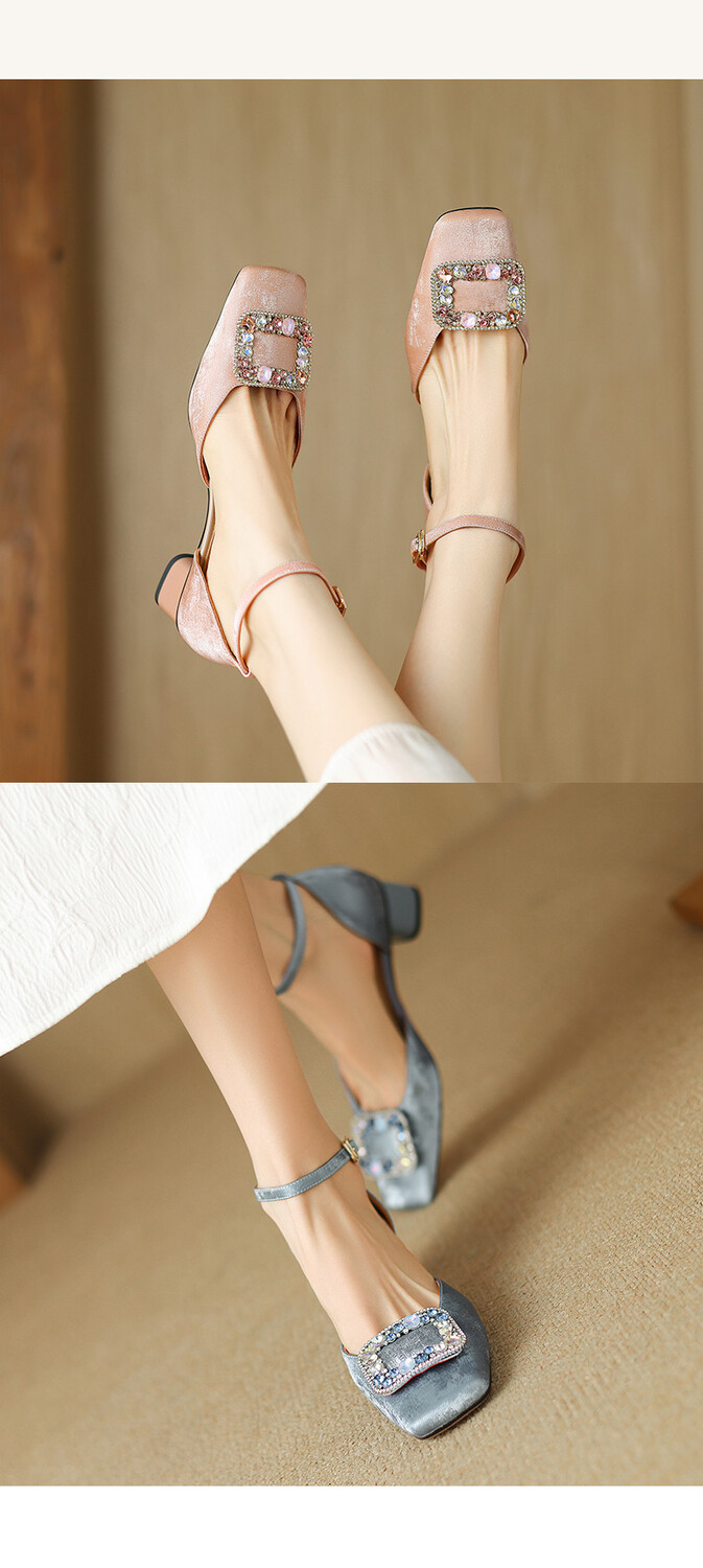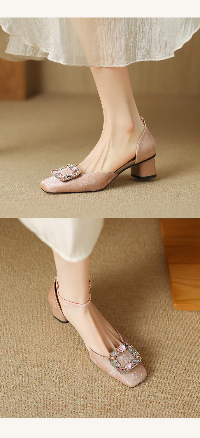 【预售5天】高级感满满水钻方扣时尚低跟包头凉鞋2024夏季仙女风氛围感凉鞋女LD&6739