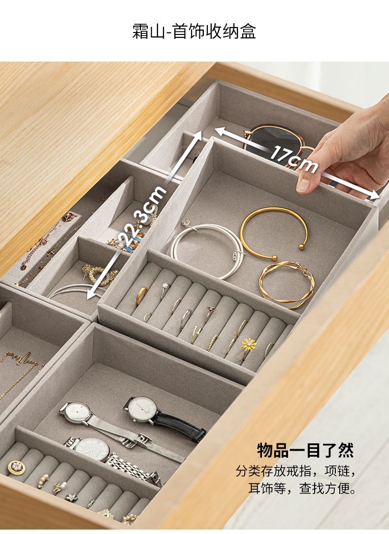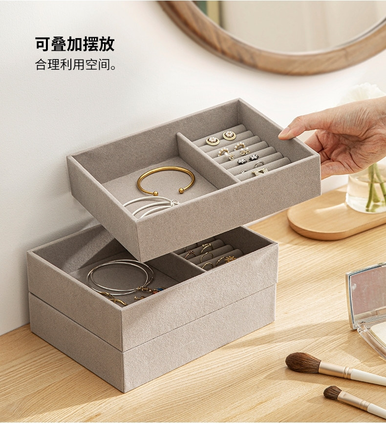 【收纳专场】霜山首饰盒项链耳环耳钉饰品收纳盒家用精致绒布戒指分格储物盒
