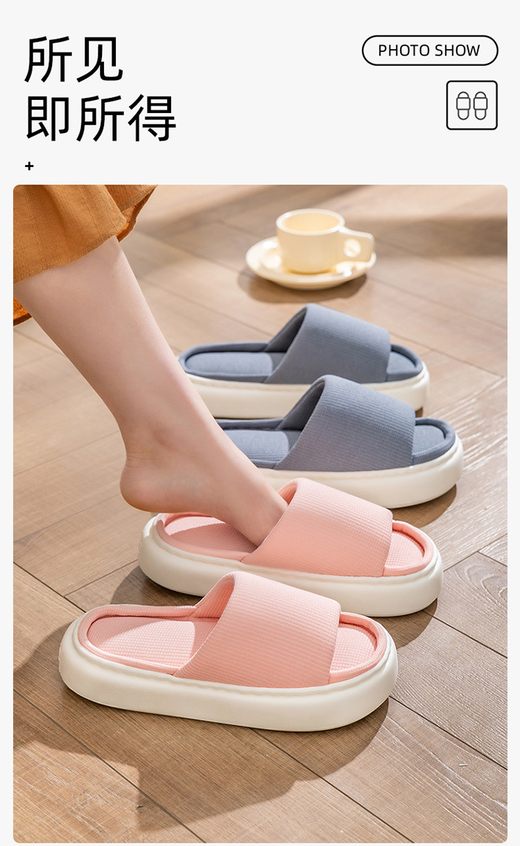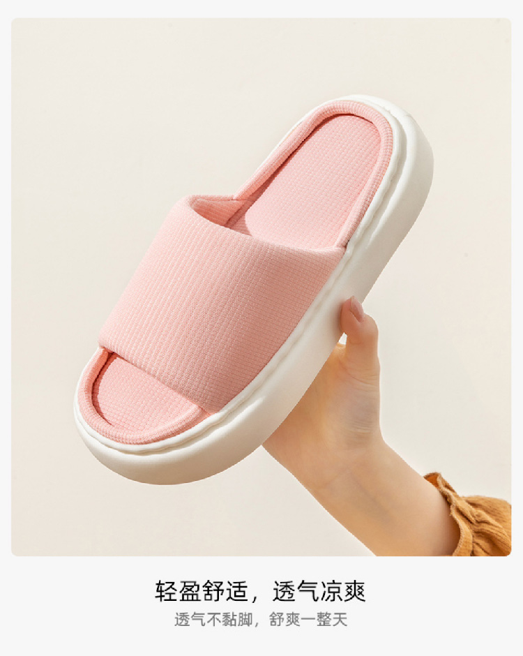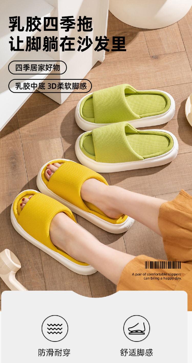 【亚麻乳胶拖鞋】春夏新品简约小清新情侣拖鞋 男女居家乳胶棉麻拖鞋厚底