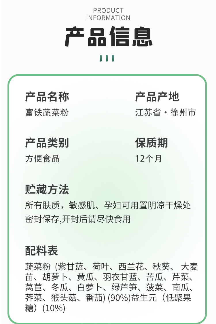 今磨房富铁蔬菜粉 优选19种蔬菜 富含膳食纤维 商品图2