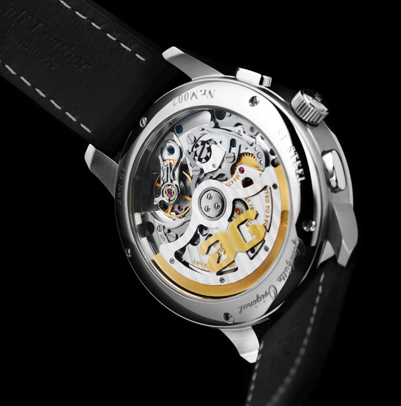 镜面 材质 | 蓝宝石水晶玻璃 | 表盘 | 精钢表壳 黑色哑光漆面,罗马数字/时标涂有黑色 Super-LumiNova 夜光材料,阿拉伯数字/黑色轨道圈,指针Super-LumiNova 夜光材料,黑色时标 大日历 计时 动力储备显示 飞返/逆跳 |