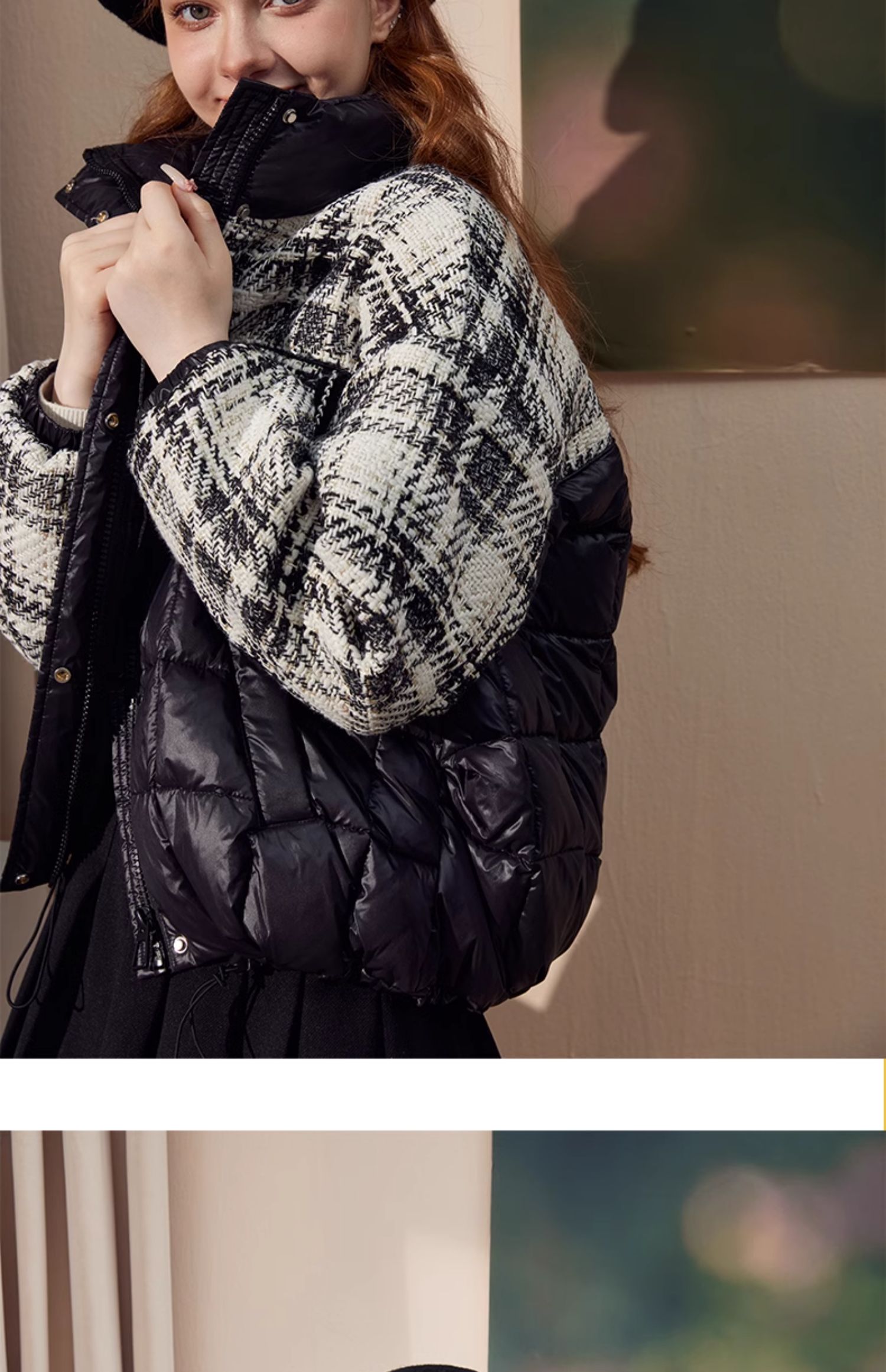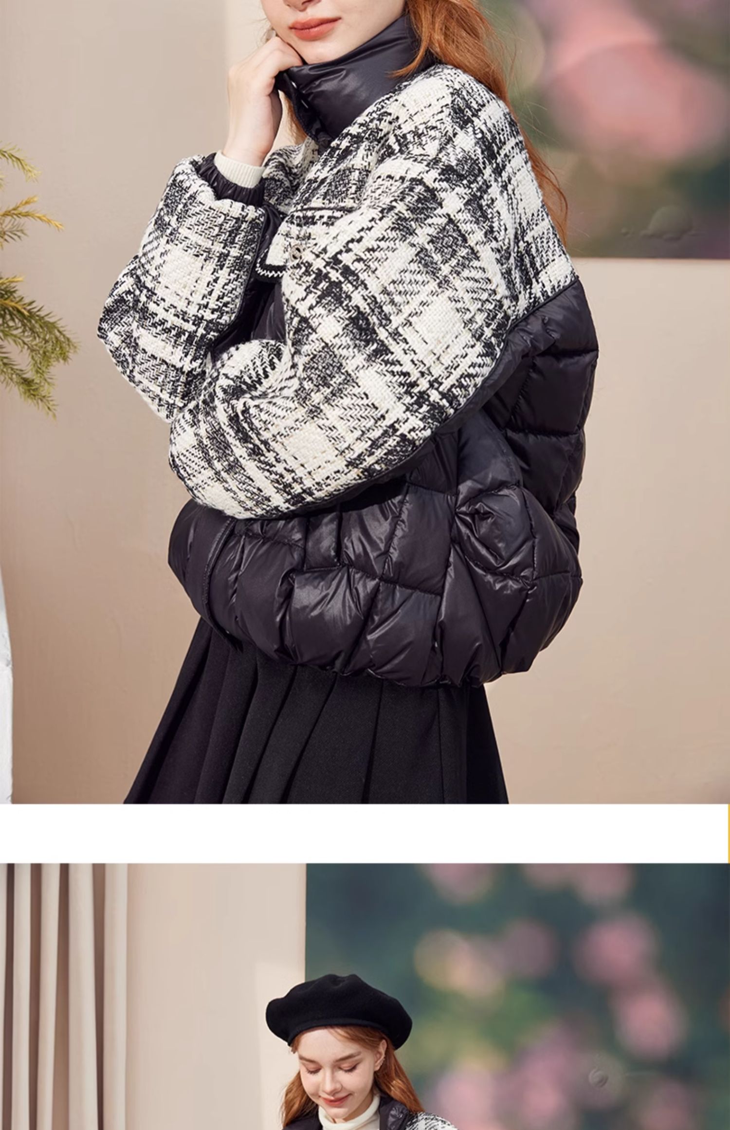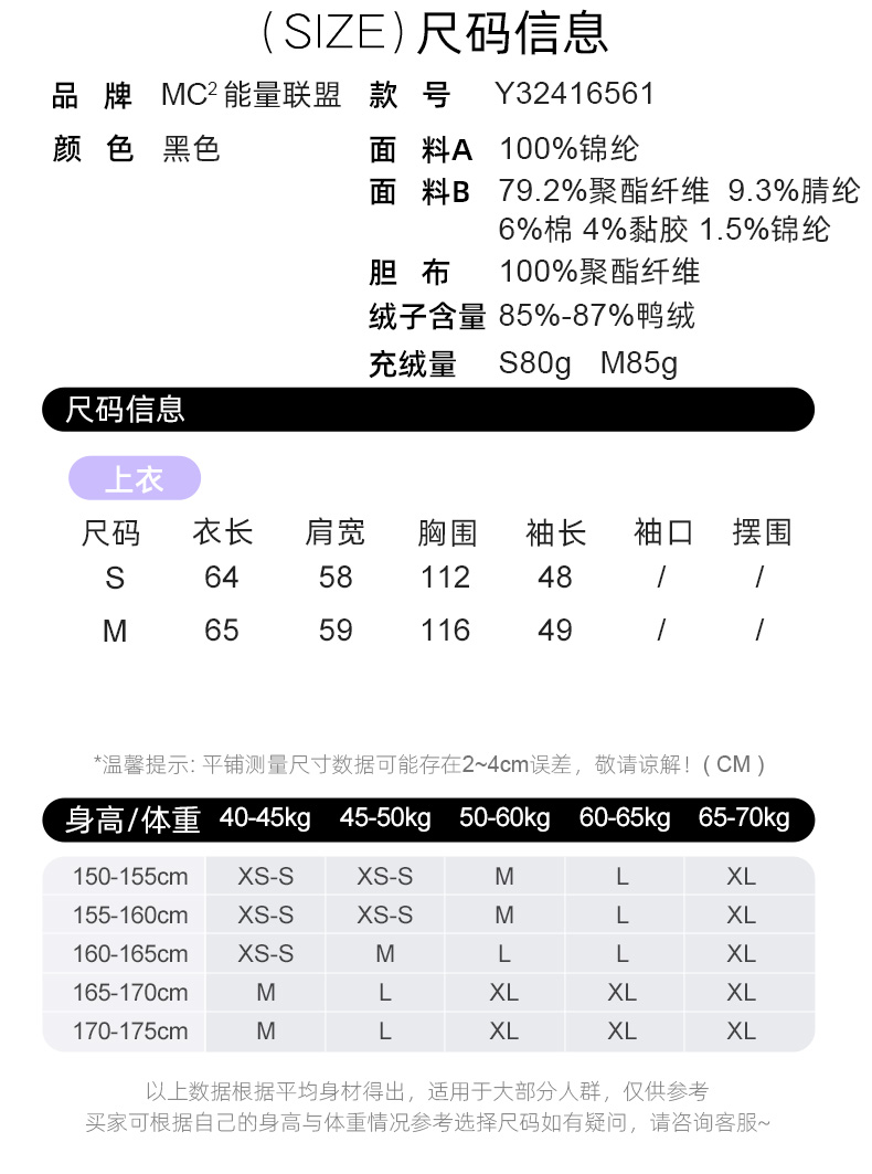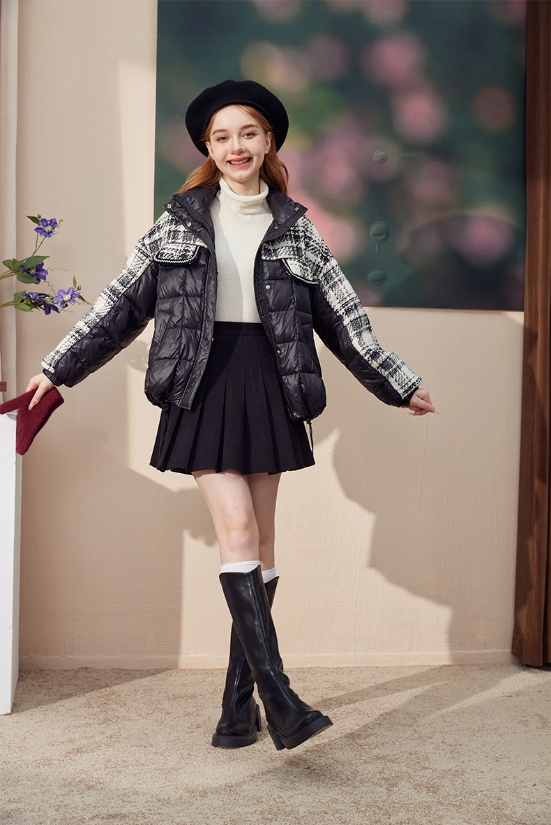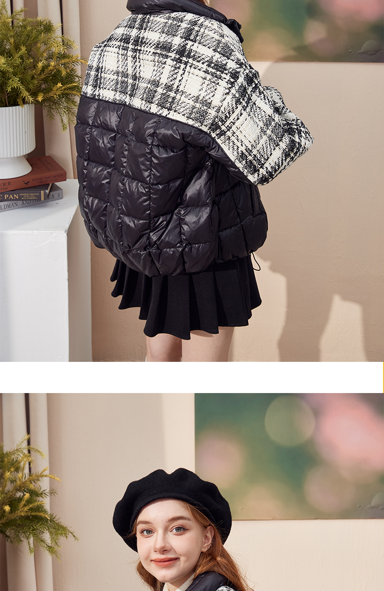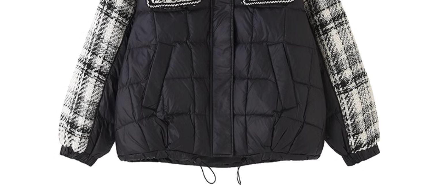 mc2黑色立领小香风撞色短款羽绒外套女装2023冬装新款时尚面包服