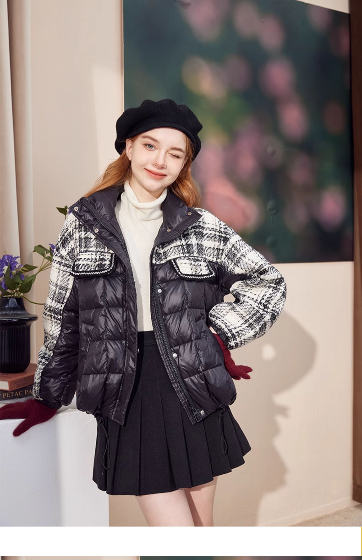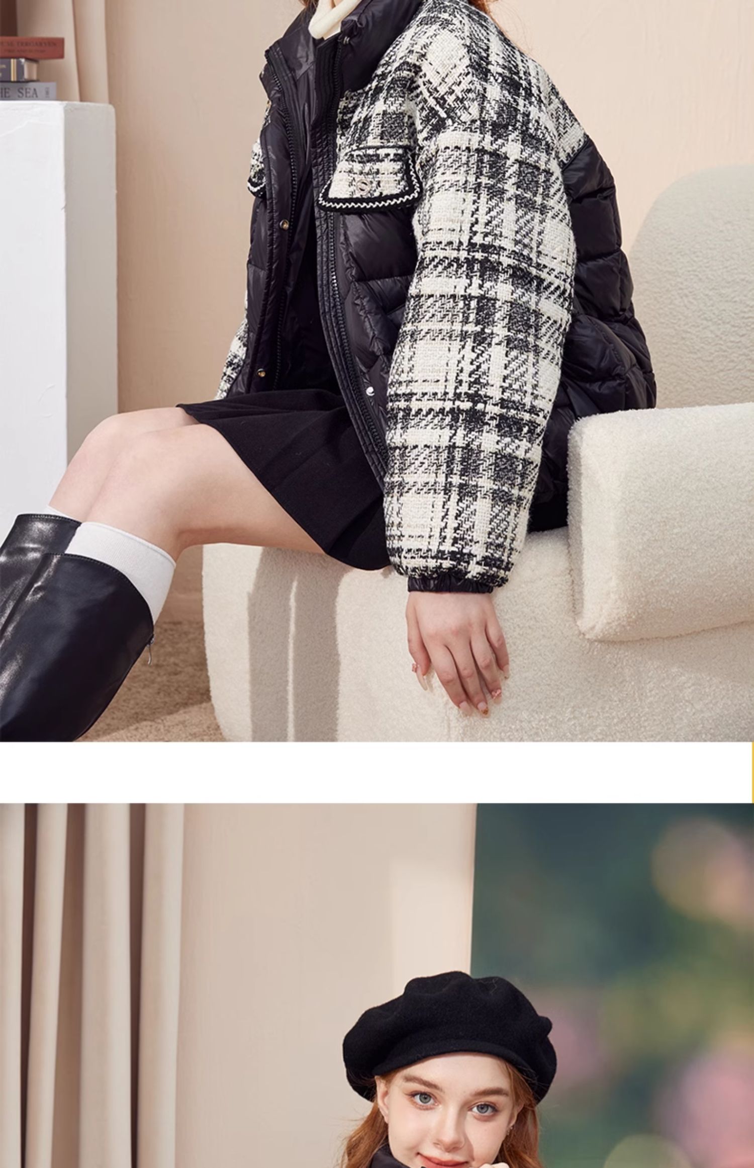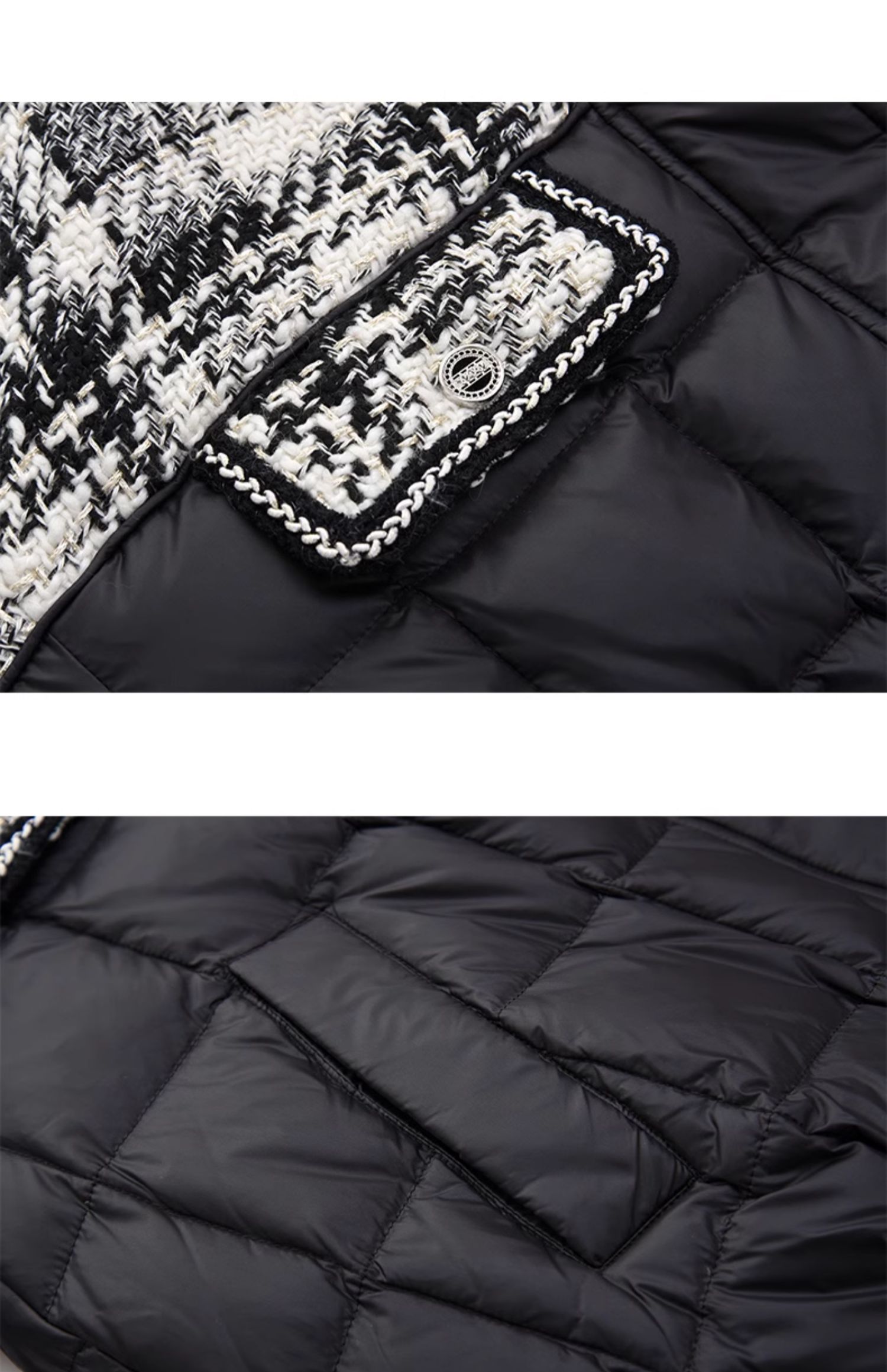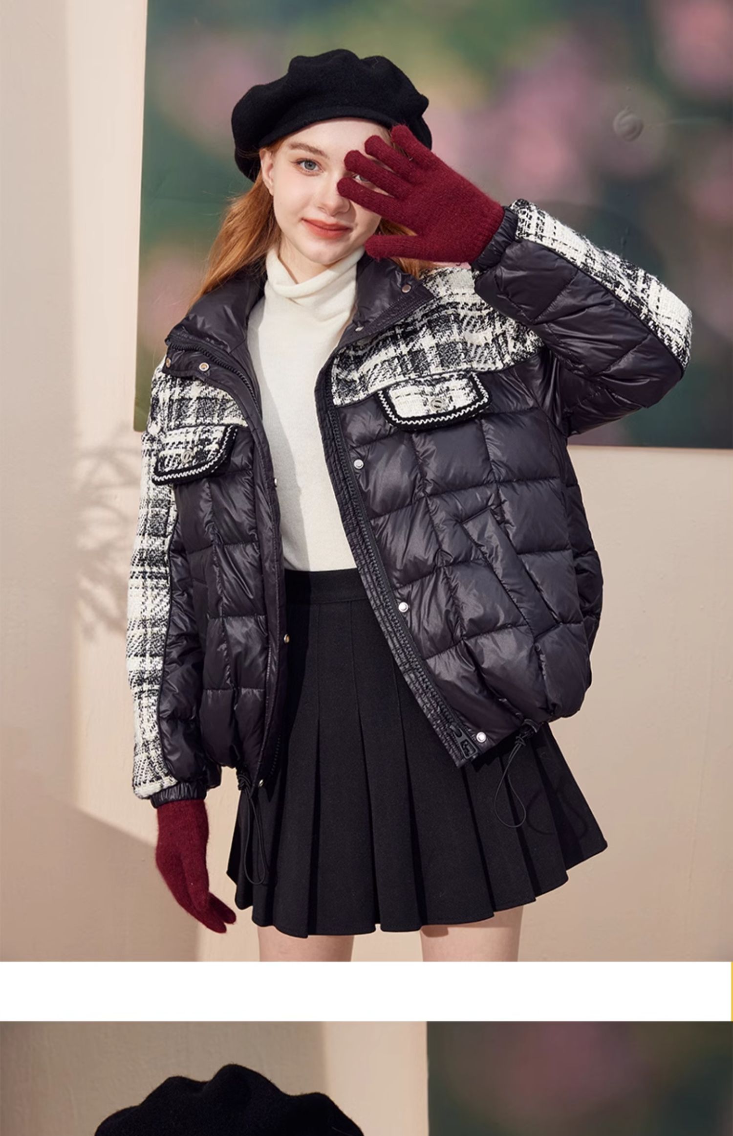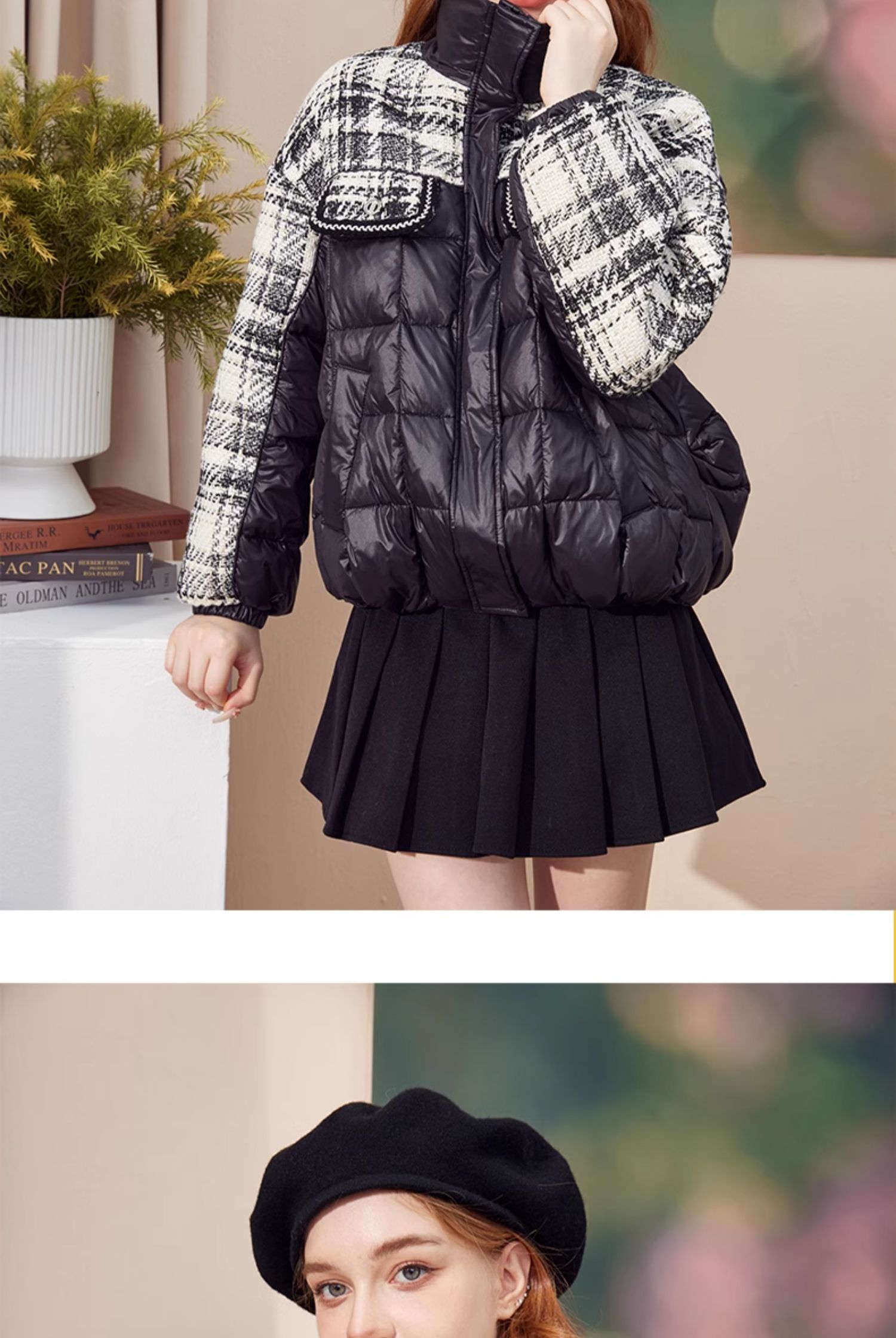 mc2黑色立领小香风撞色短款羽绒外套女装2023冬装新款时尚面包服