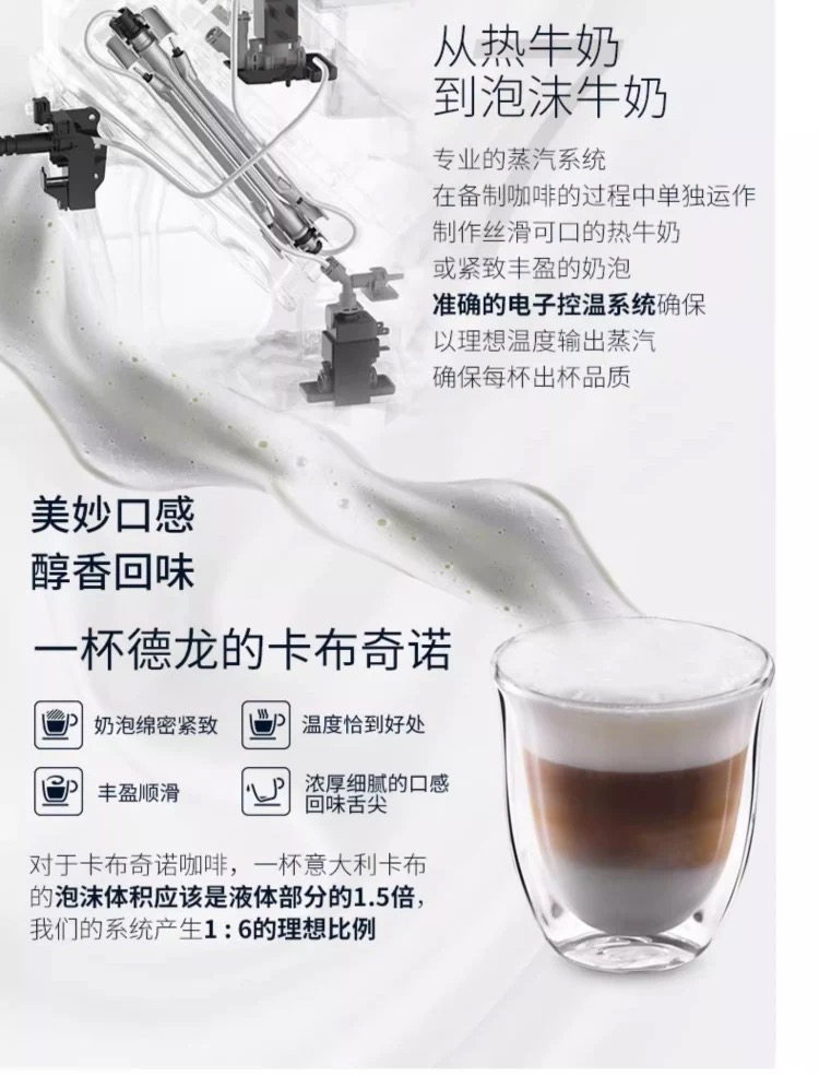 Delonghi德龙ETAM29.660.SB全自动双锅炉咖啡机自动奶泡 德龙官方折扣机样品机 购买日期开始全国联保两年