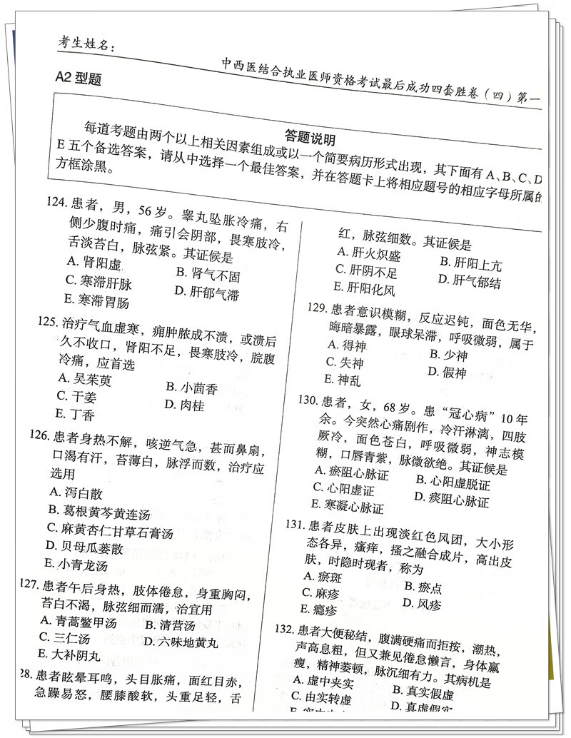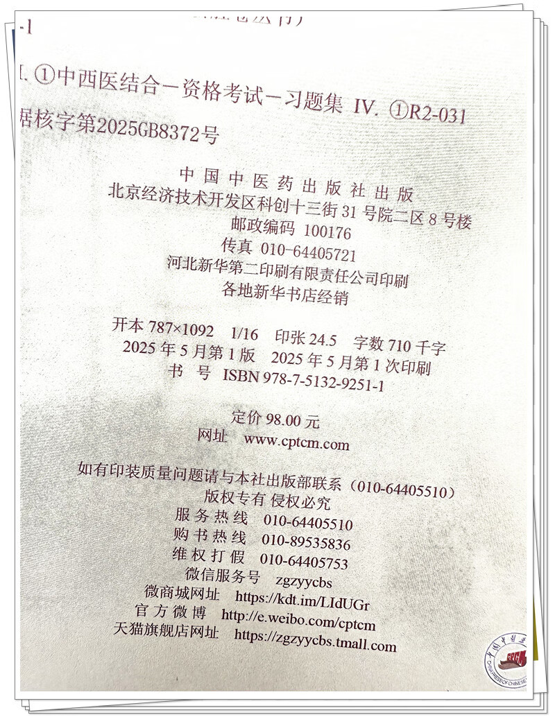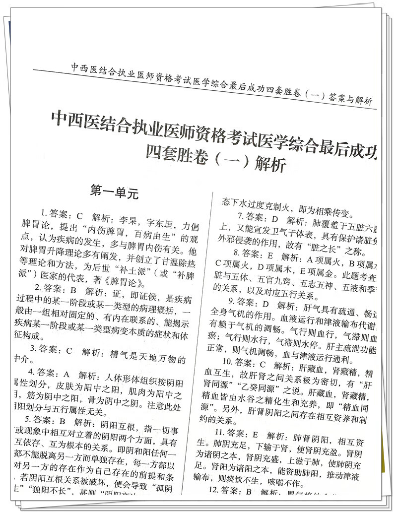 书名:2025年中西医结合执业资格考试医学综合最后成功四套胜卷(附解析)