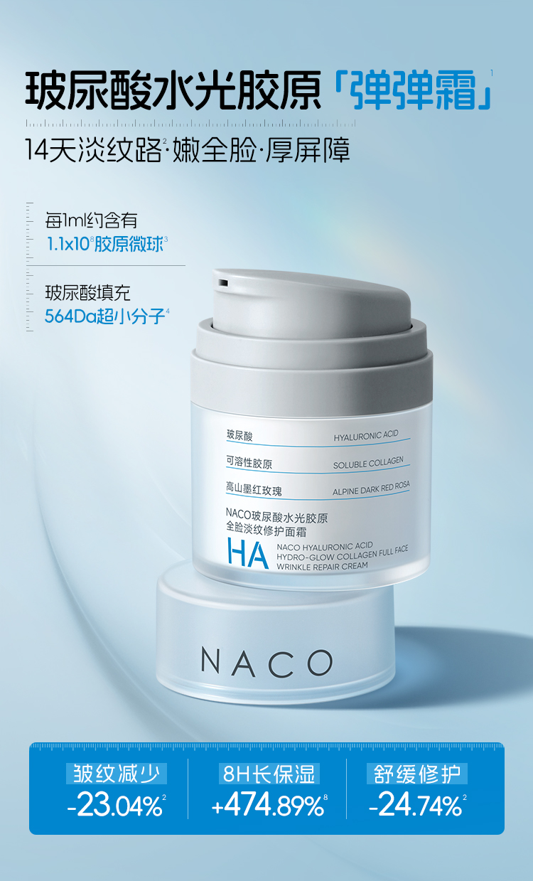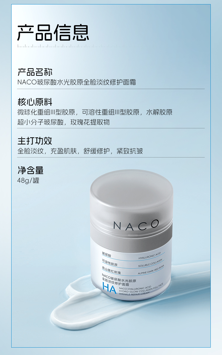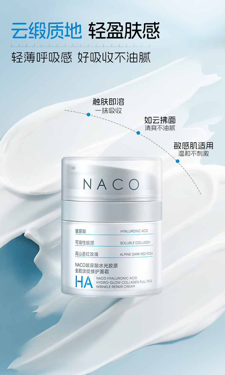【老客专享福利】NACO玻尿酸水光胶原全脸淡纹修护面霜48g/盒#涂抹式水光胶原(弹弹霜)