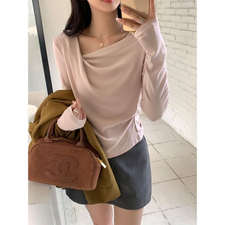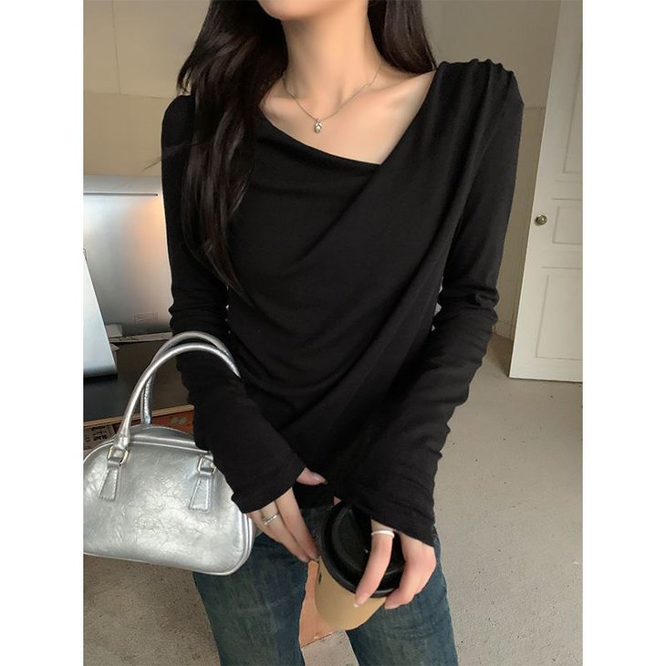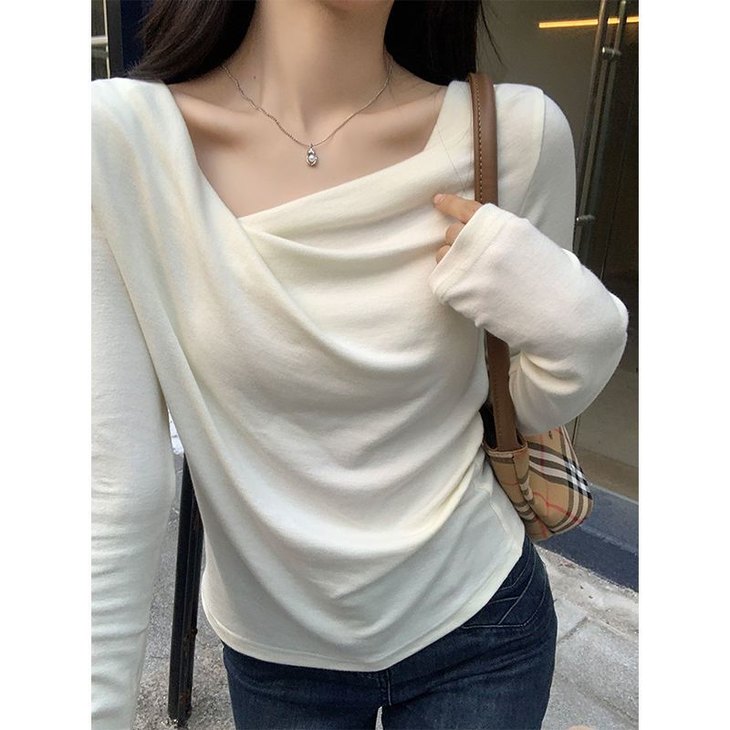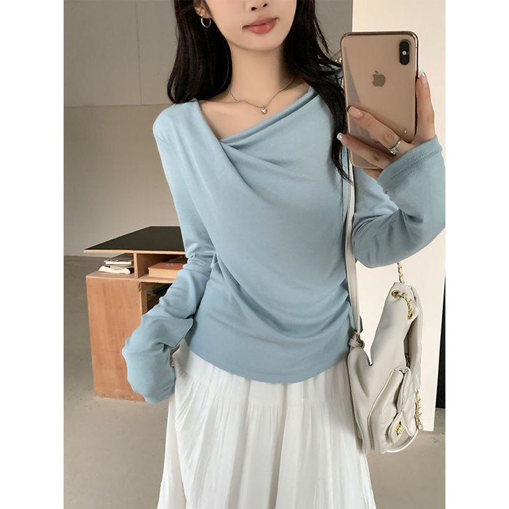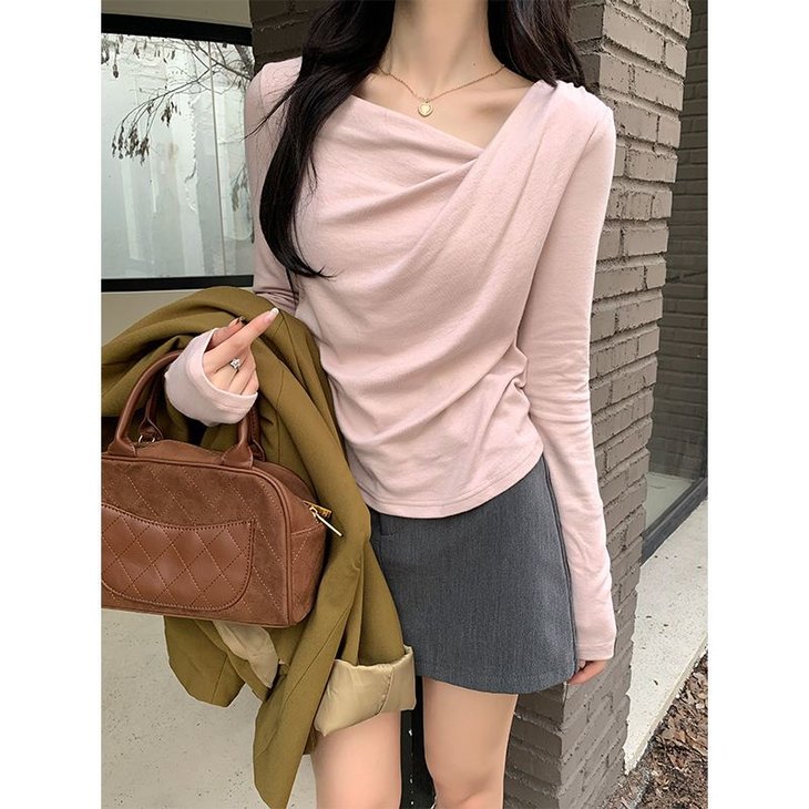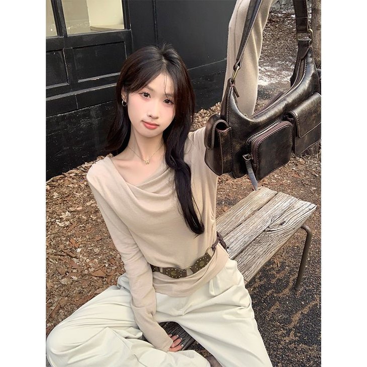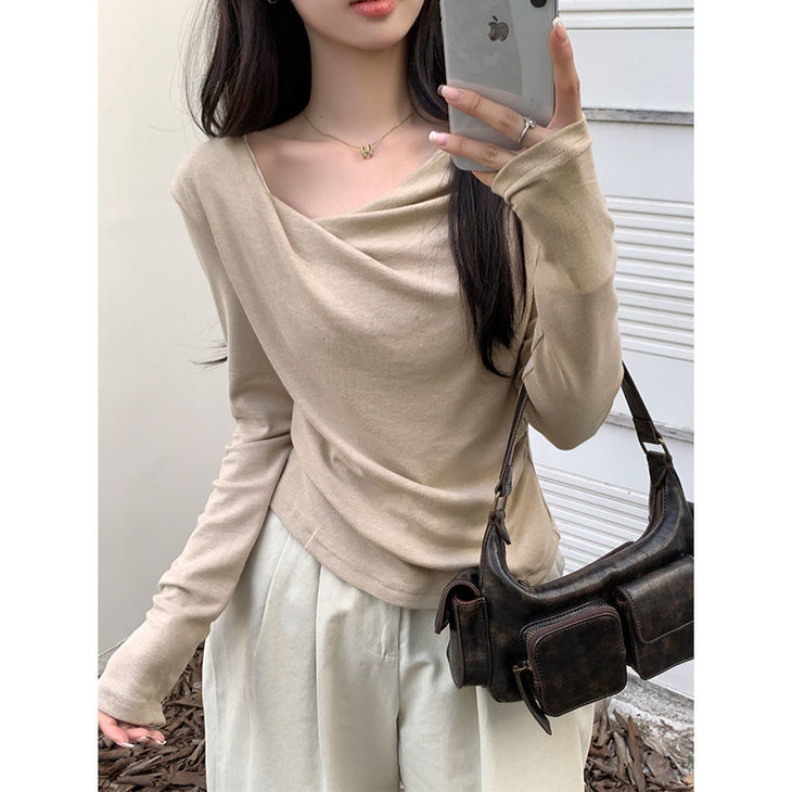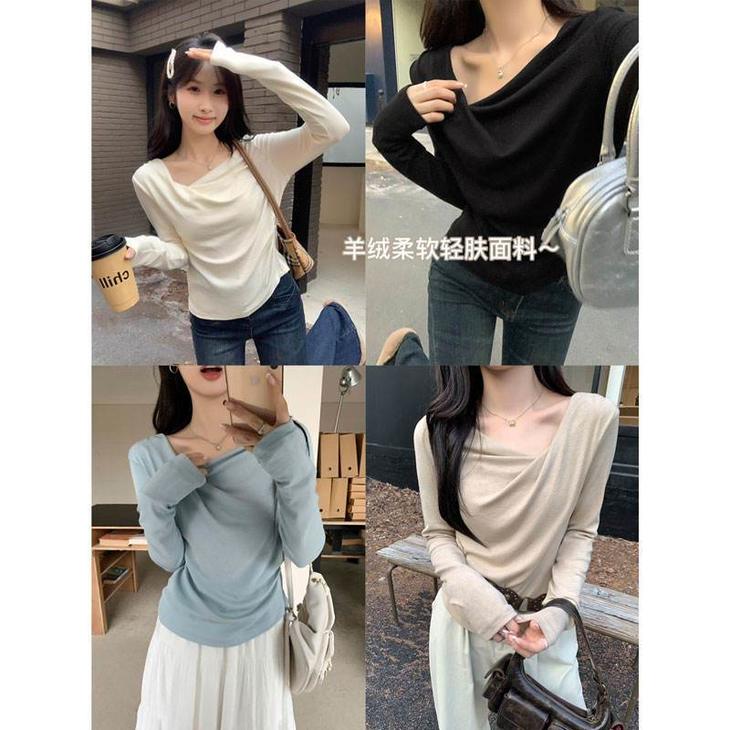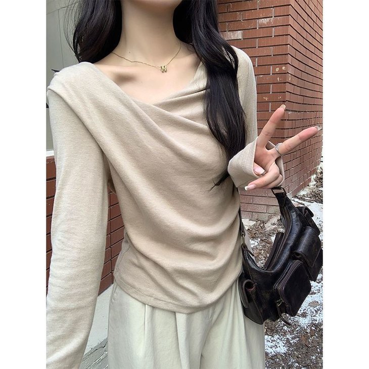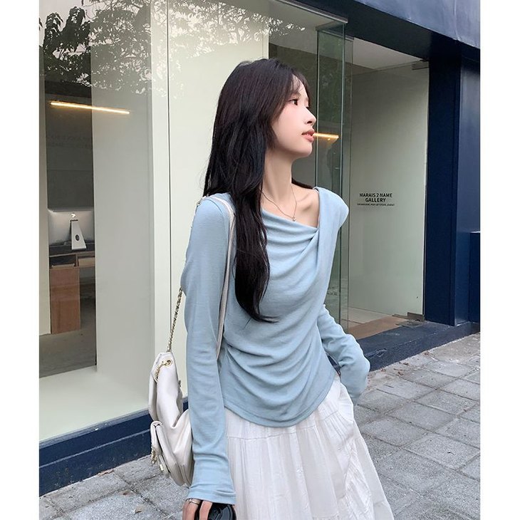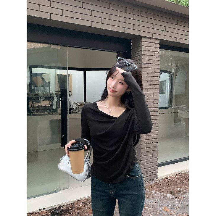 👉初秋风起时,【AVann不规则一字斜肩长袖褶皱收腰露肩上衣7743🌻】 🔺不规则剪裁 + 斜肩露肩 + 褶皱收腰 = 一件集个性、💥小性感与显瘦于一体的上衣。