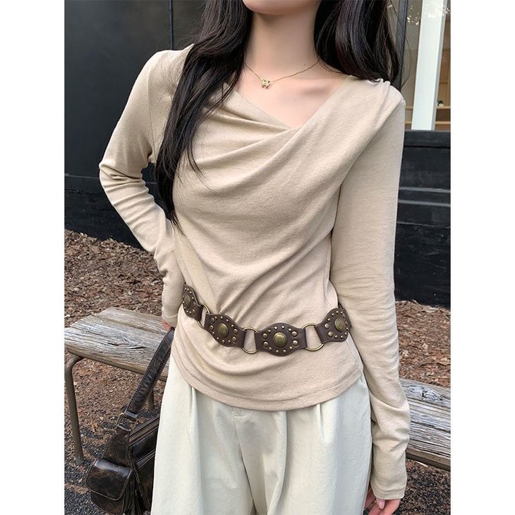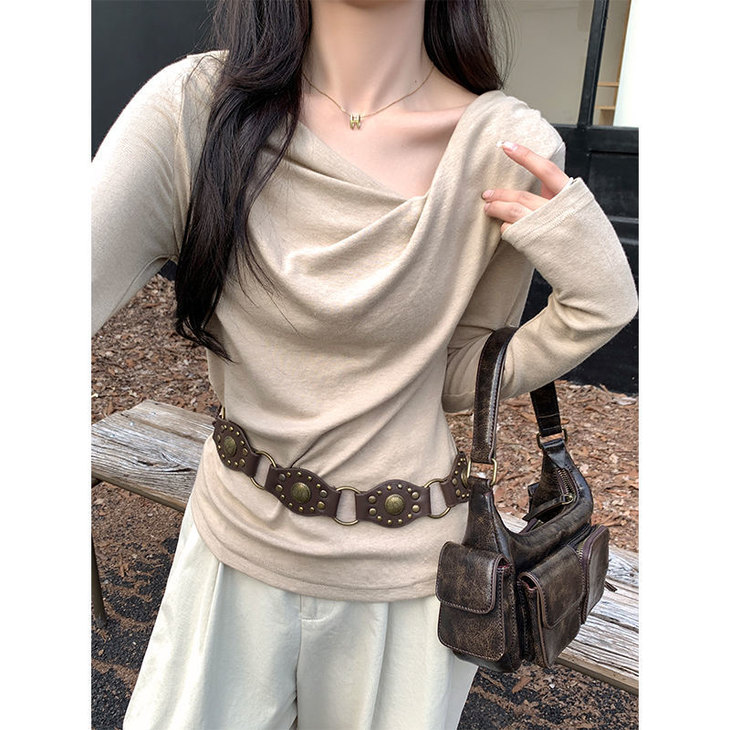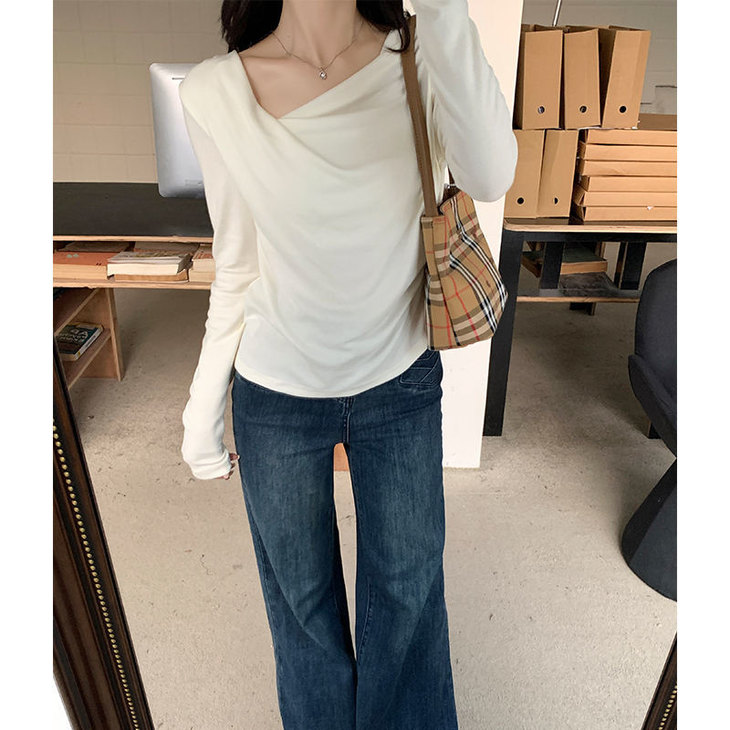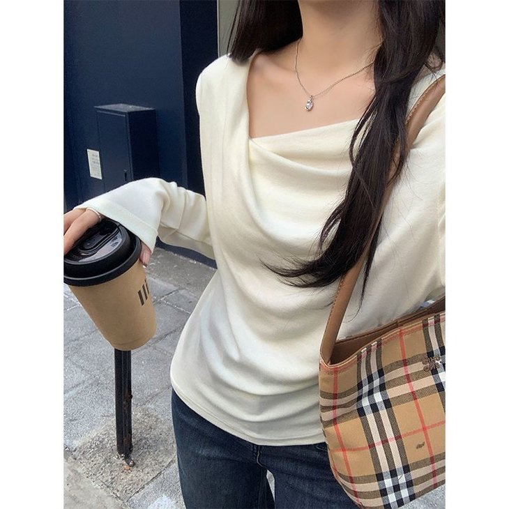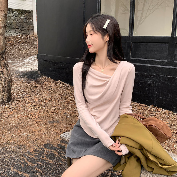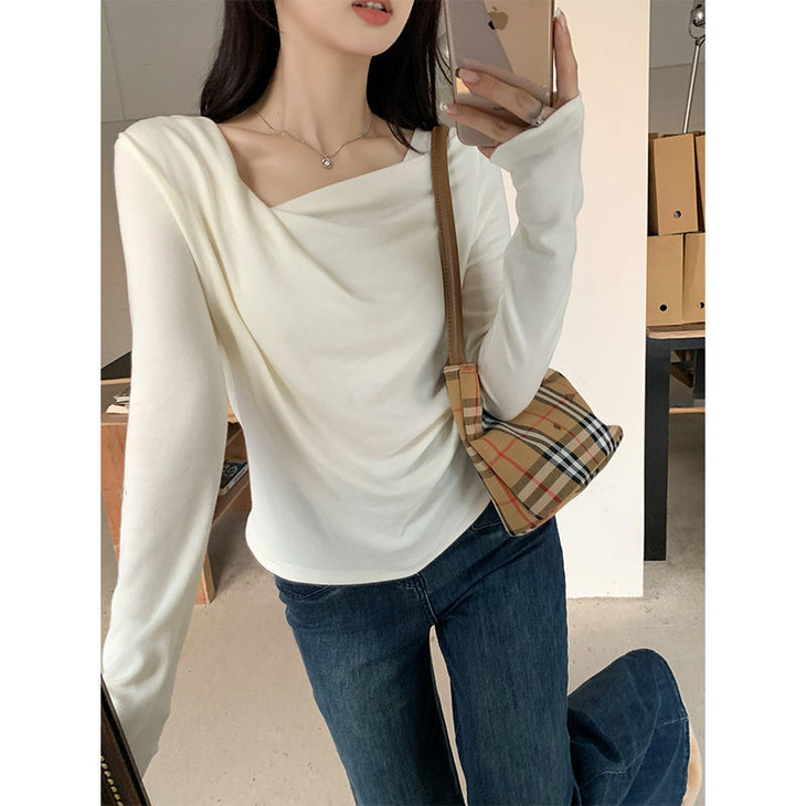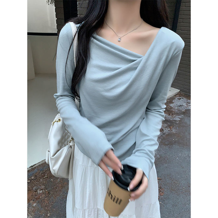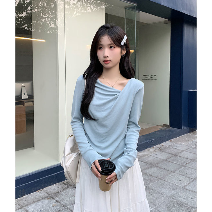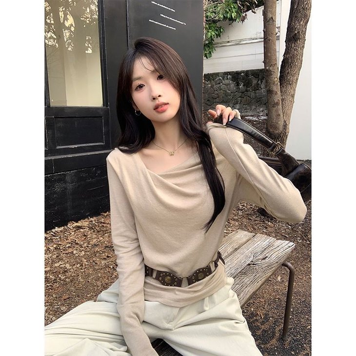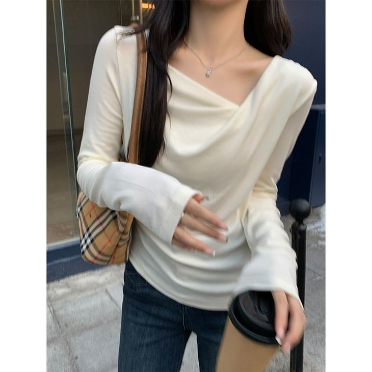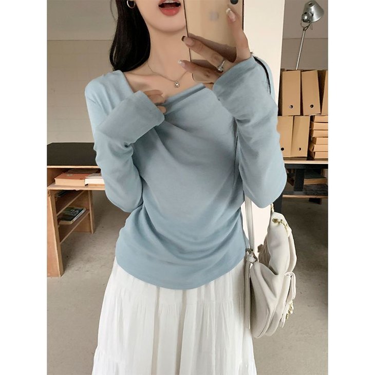 👉初秋风起时,【AVann不规则一字斜肩长袖褶皱收腰露肩上衣7743🌻】 🔺不规则剪裁 + 斜肩露肩 + 褶皱收腰 = 一件集个性、💥小性感与显瘦于一体的上衣。