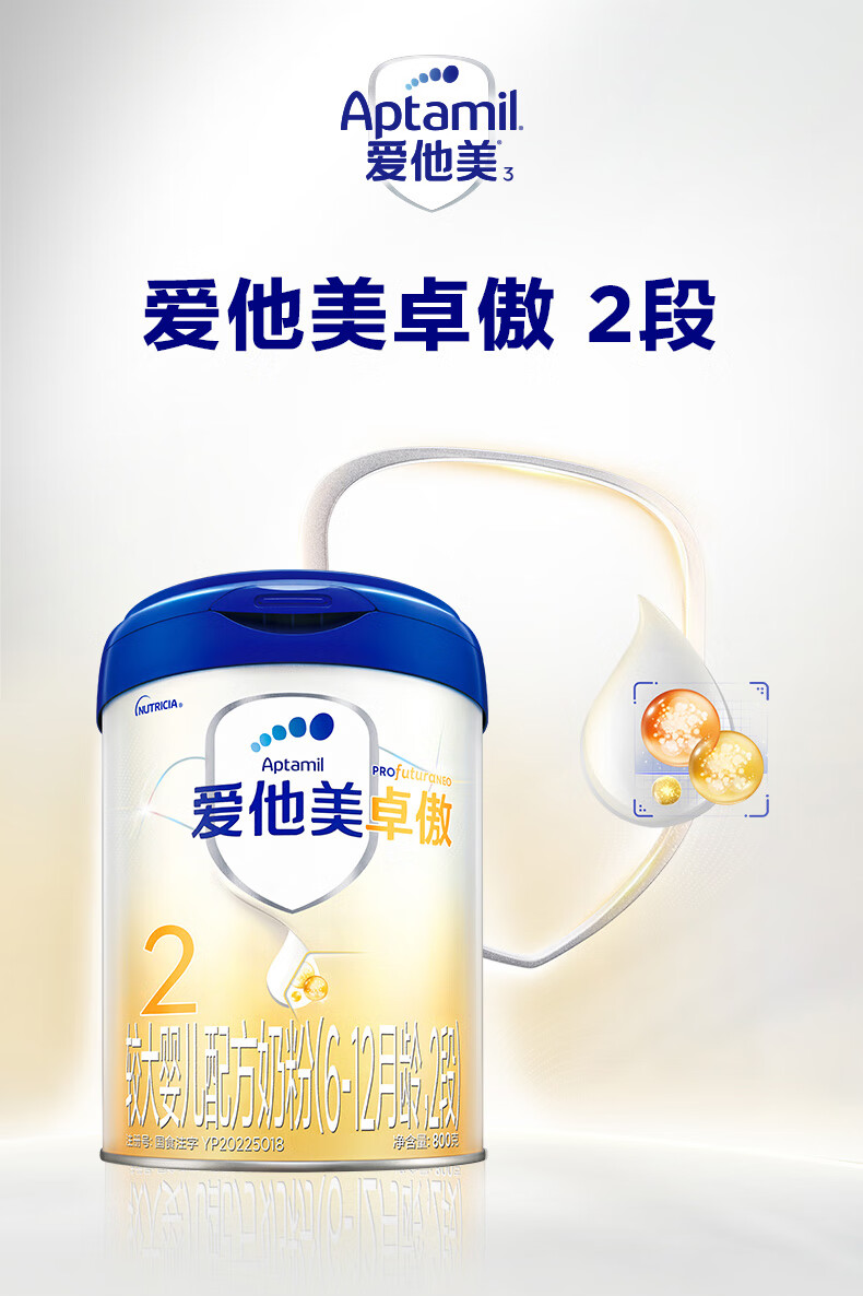【国行】爱他美卓萃版卓傲奶粉婴幼儿2段(6-12个月)800g
