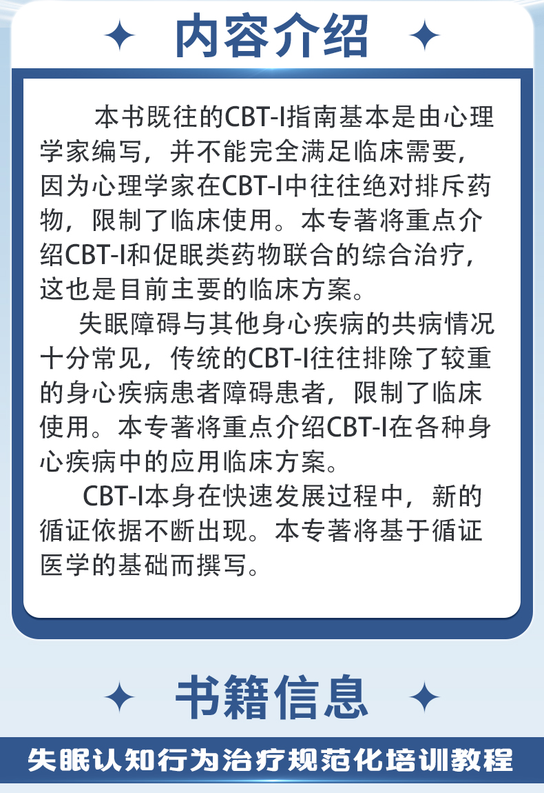 书名:【全2册】失眠认知行为治疗实操手册+失眠认知行为治疗规范化培训教程