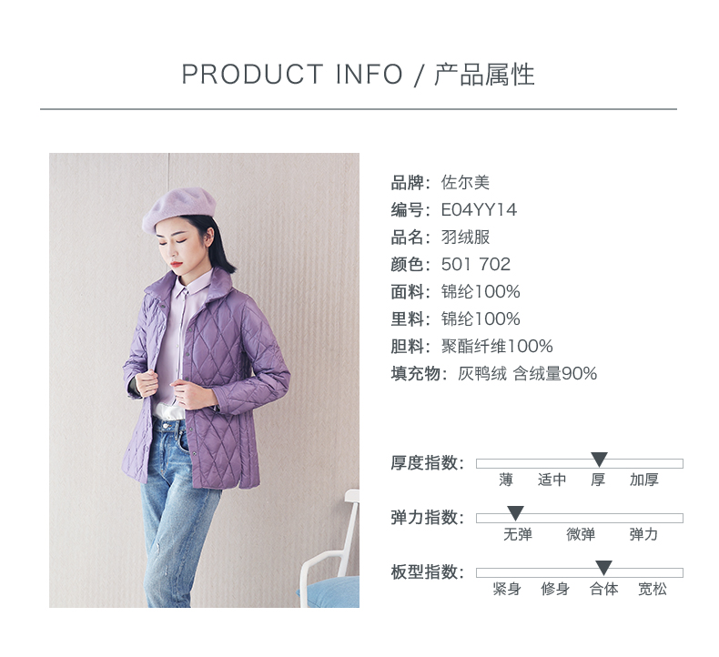 佐尔美秋冬新款简约复古纯色短款羽绒服女E04YY14