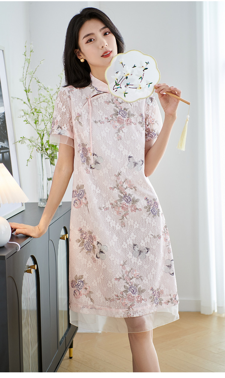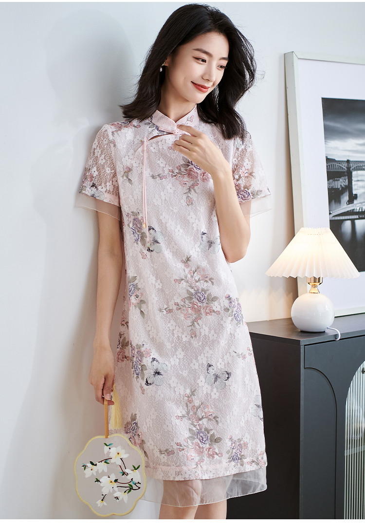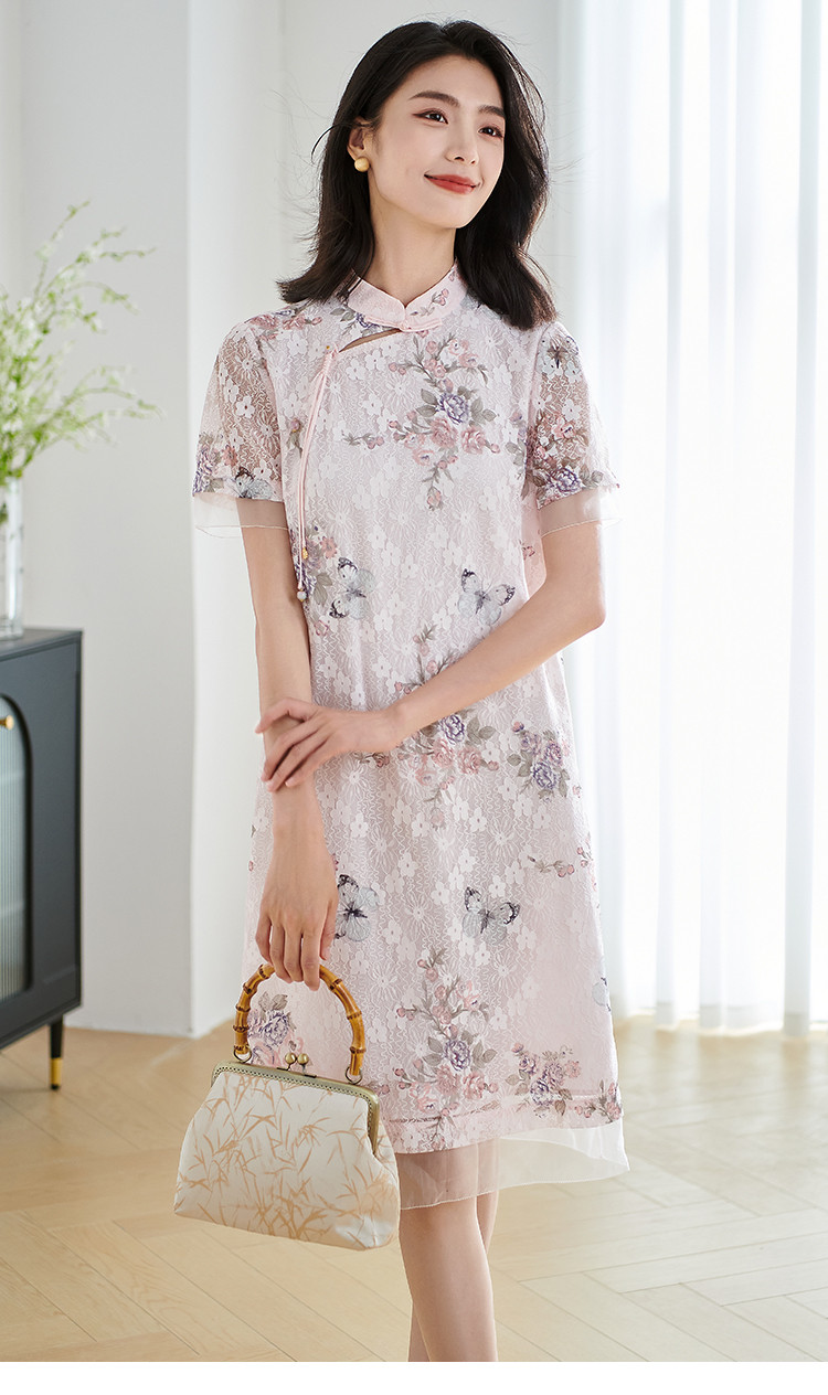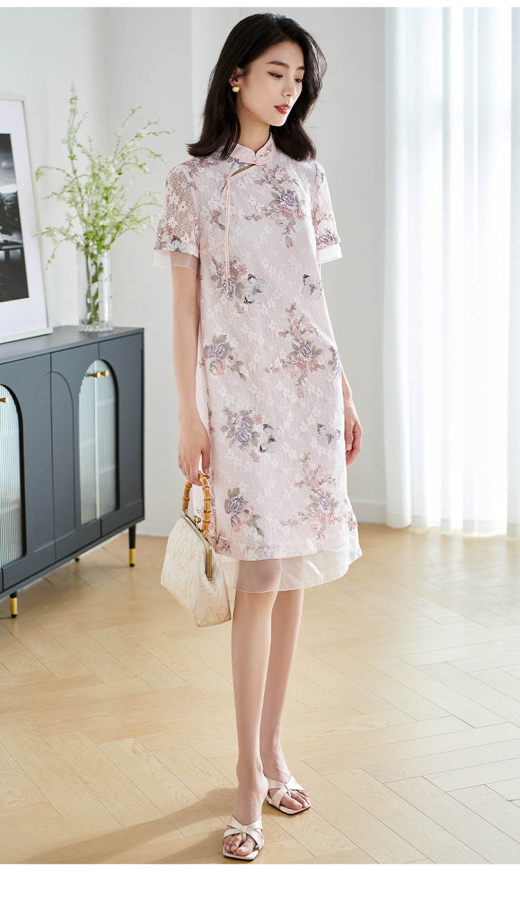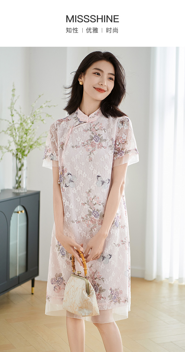 剩S/M 米思阳【新中式旗袍】2025夏季中国风蕾丝印花裙显瘦连衣裙2231