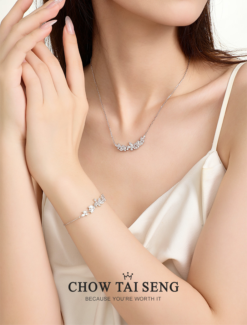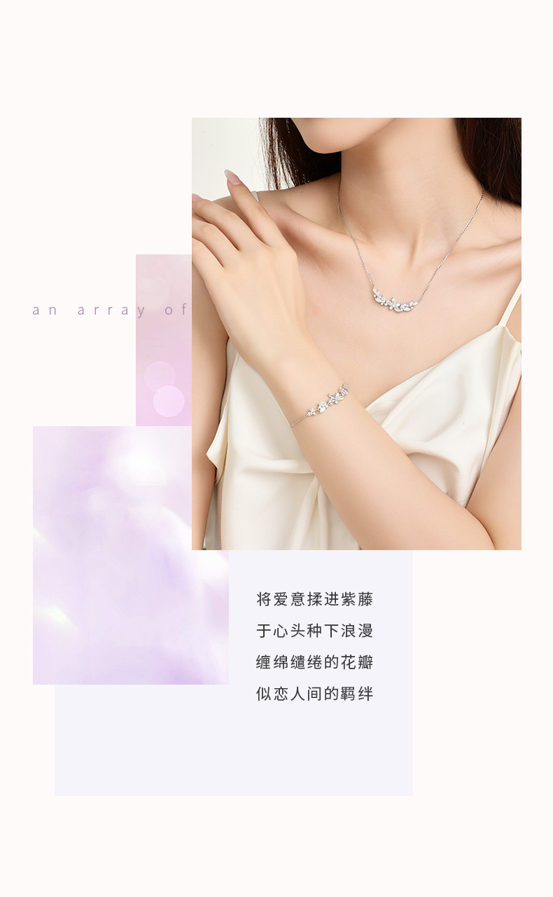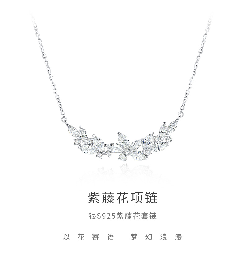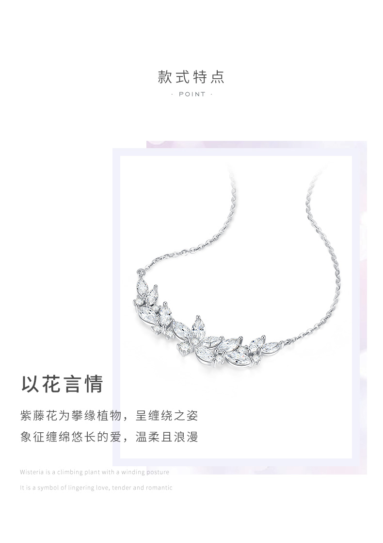 周大生紫藤花纯银925项链女轻奢锁骨链高级感设计七夕礼物送女友