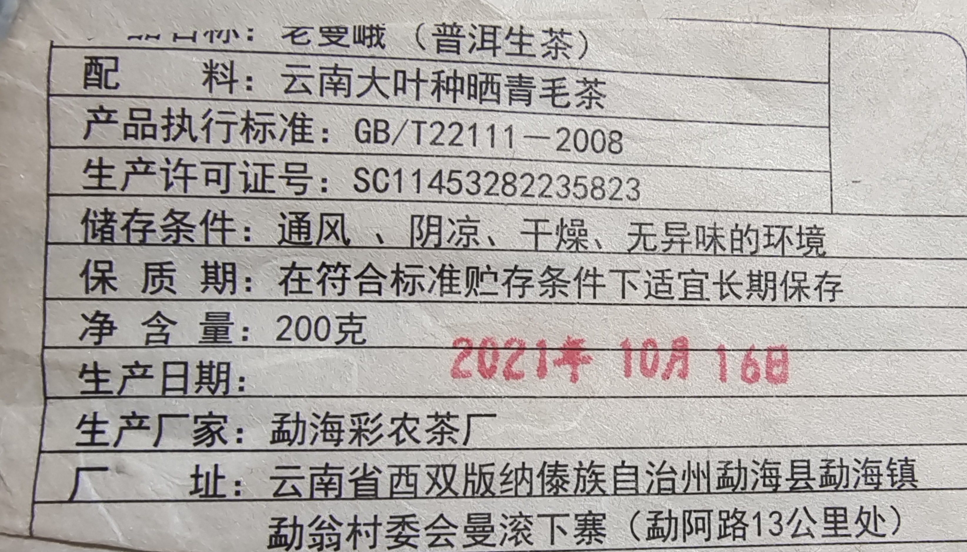 彩农茶|老曼峨2021秋古树纯料青饼