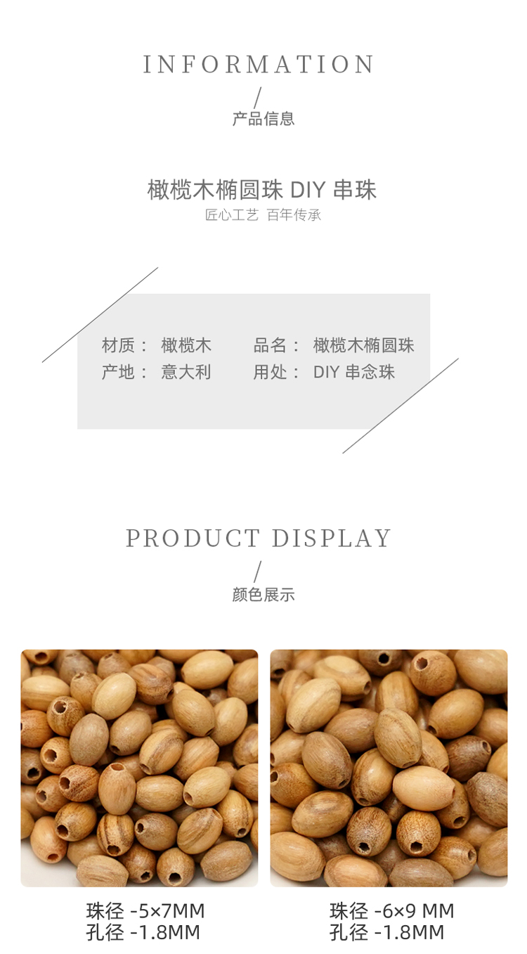 椭圆橄榄木珠木料原木料意卡米诺手串念珠串珠单颗珠子料散珠老料意大利进口