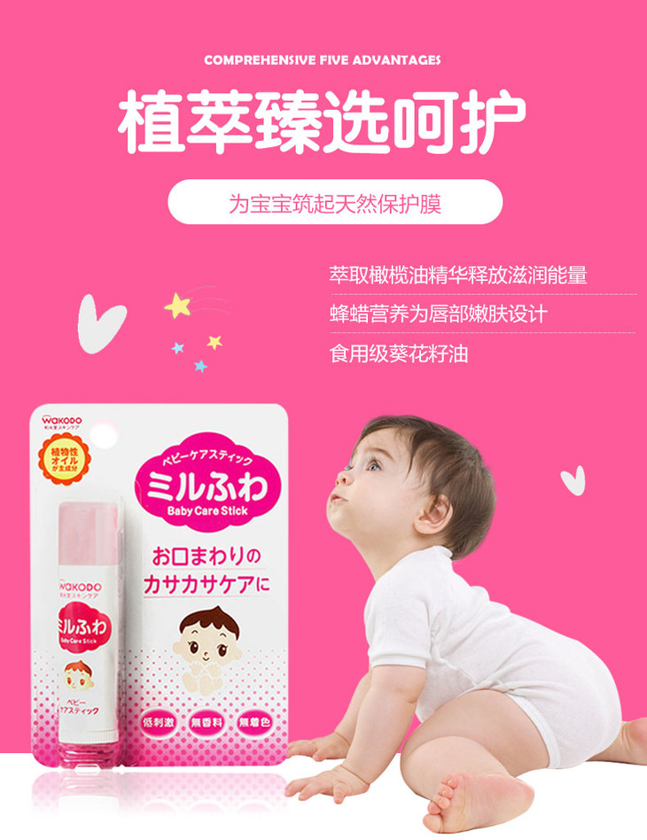 日本Wakodo和光堂婴儿宝宝润唇膏 滋润保湿护唇补水防干燥 5g