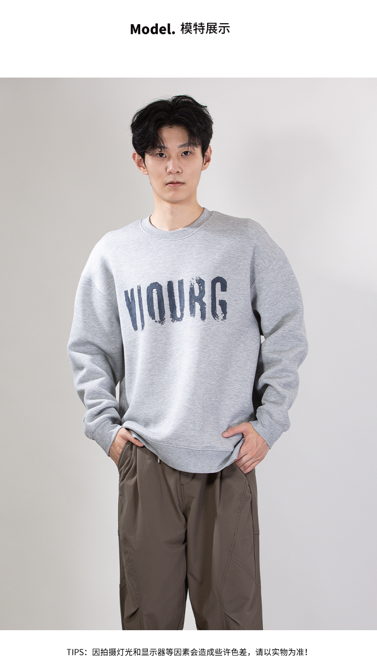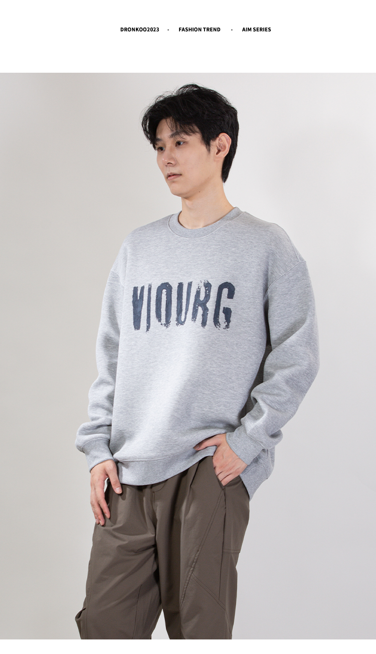 DRONKOO 2025 圆领胸前后幅印胶大字母微阔中厚卫衣