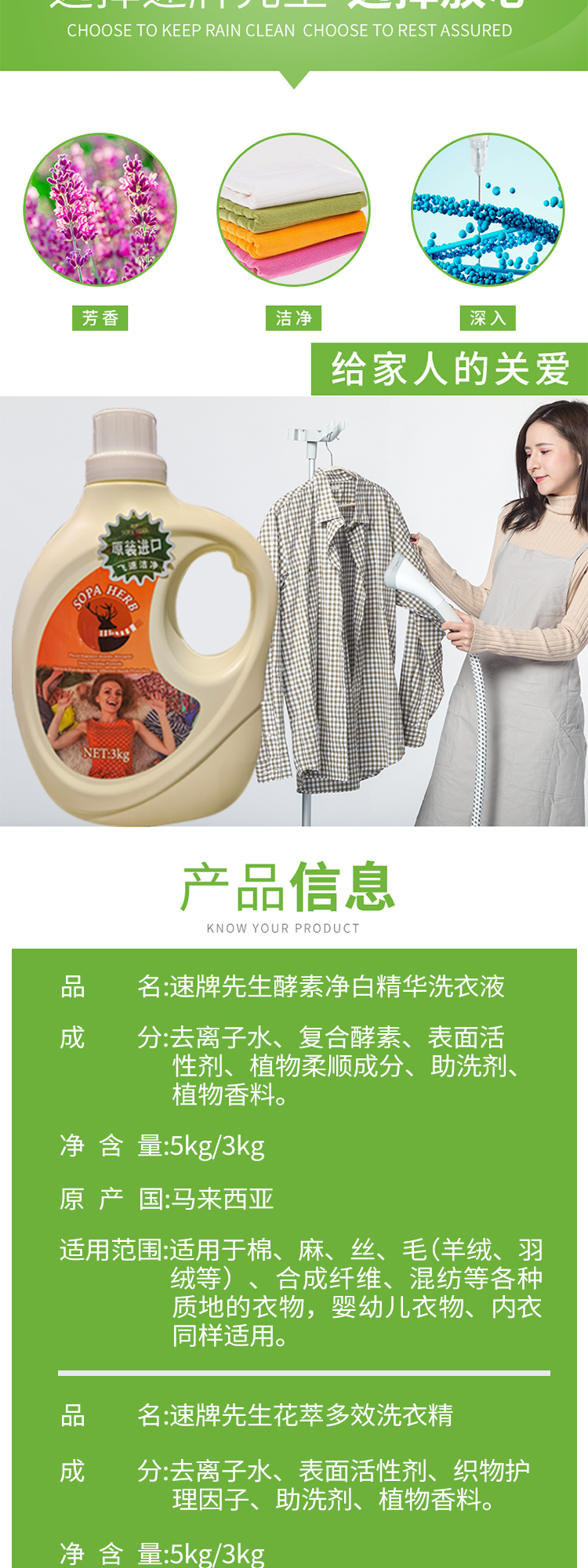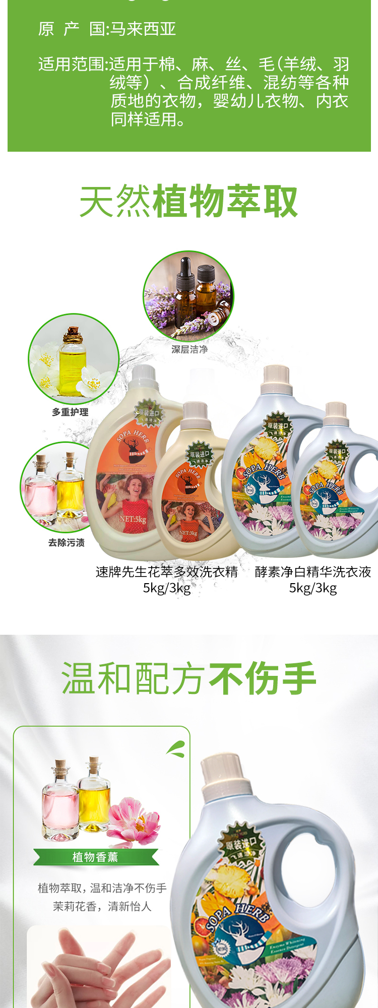 马来西亚进口速牌先生花萃多效洗衣精5kg(满一件送同品牌奢护柔顺剂30g)