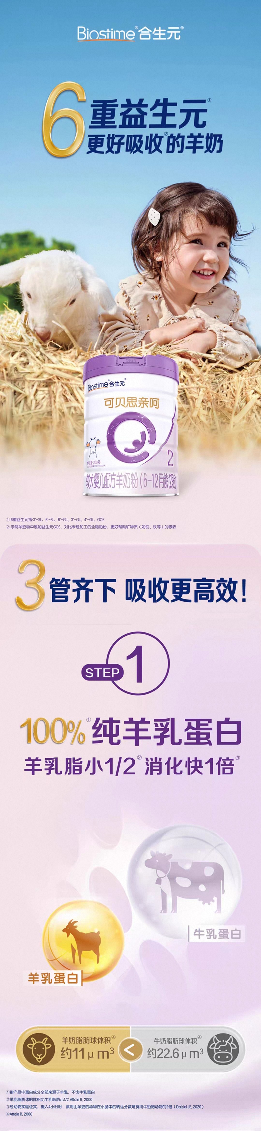 合生元可贝思亲呵较大婴儿羊奶粉2段700g*6罐