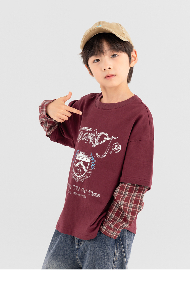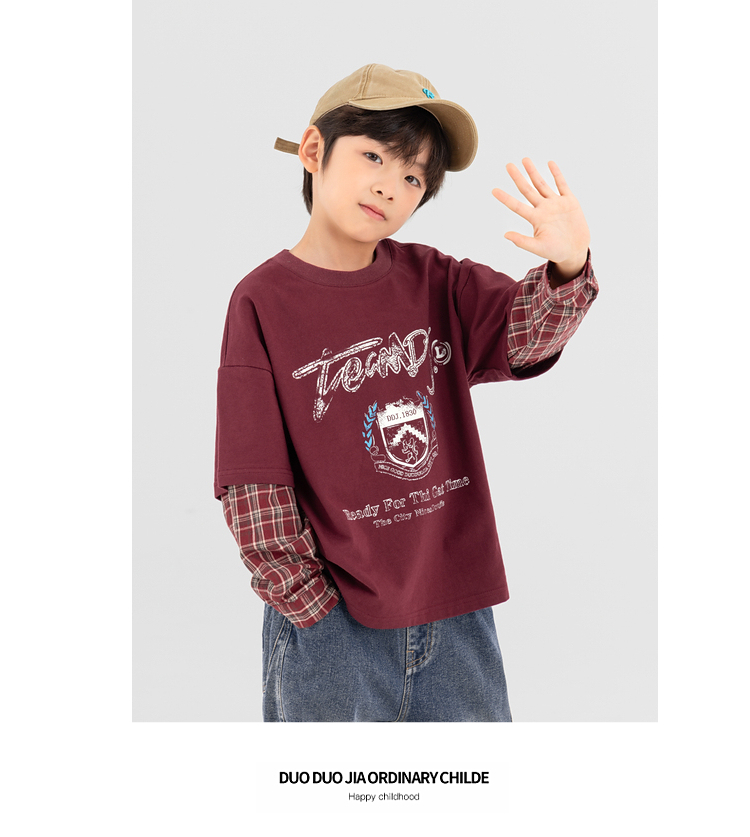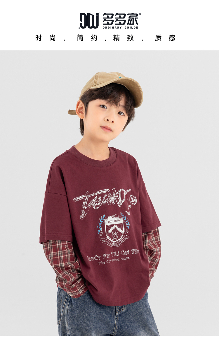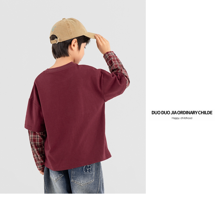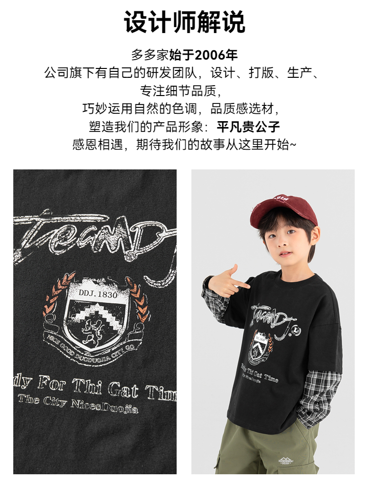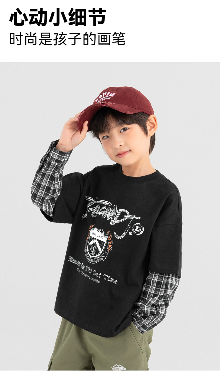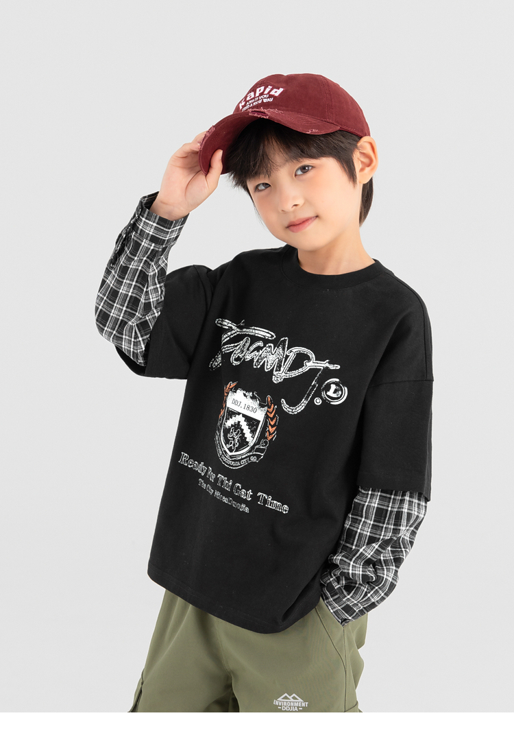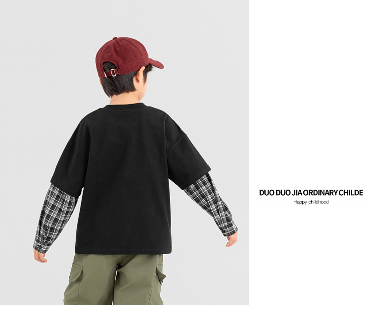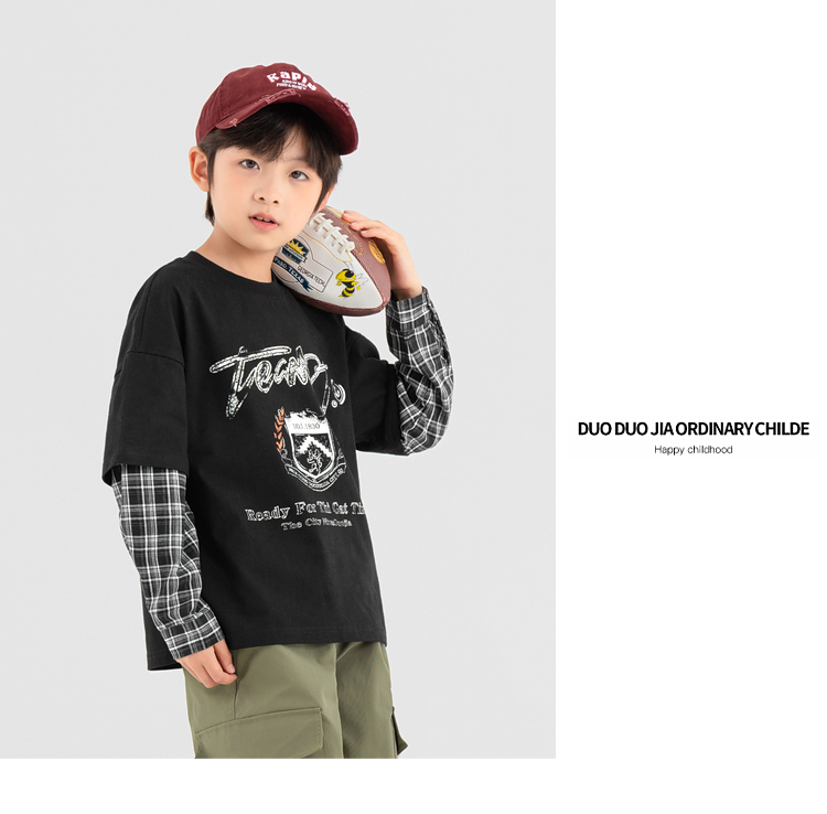 【件件底价,童装双倍积分】多多家男童假两件卫衣2025春秋新款儿童中大童格纹印花洋气上衣潮10981