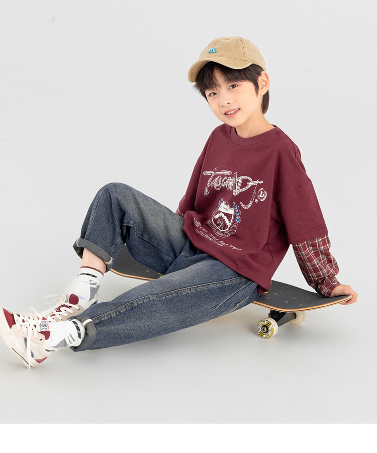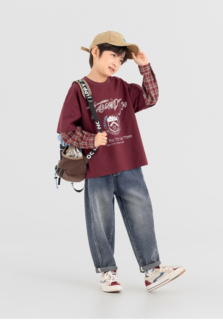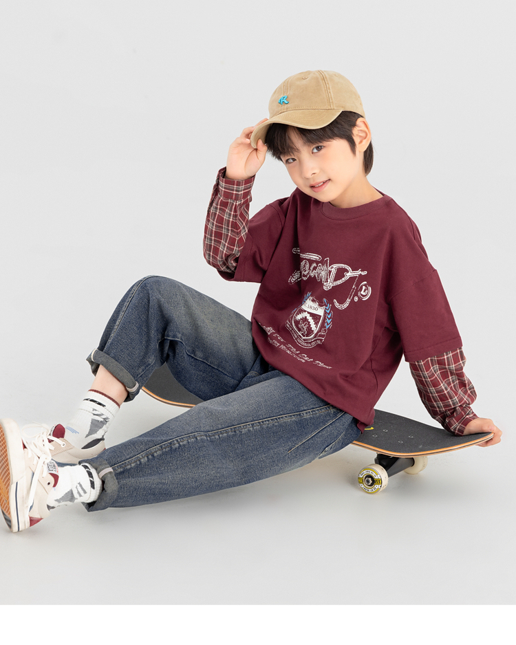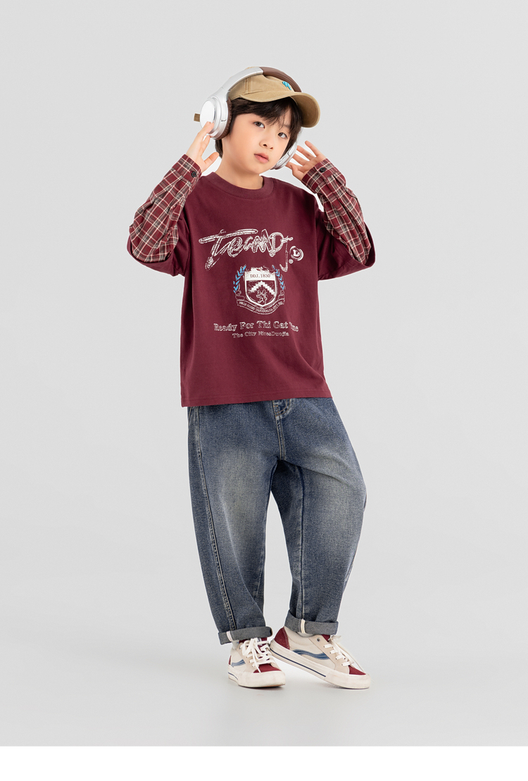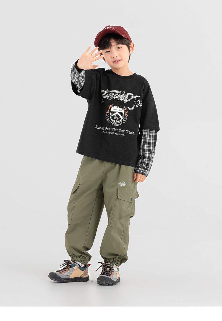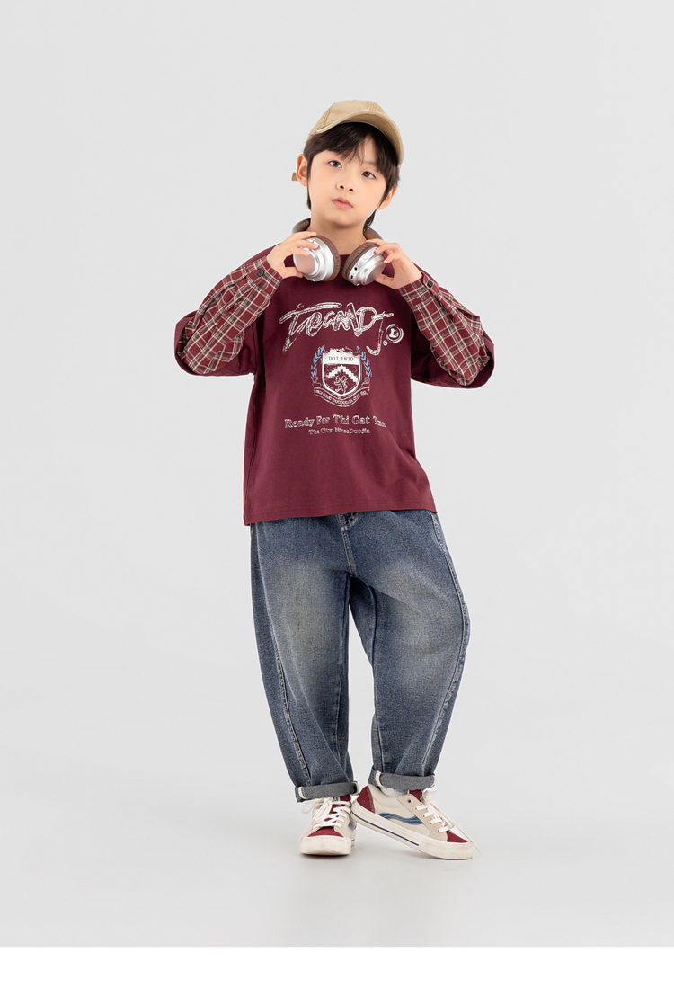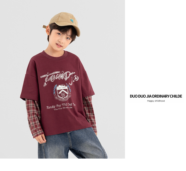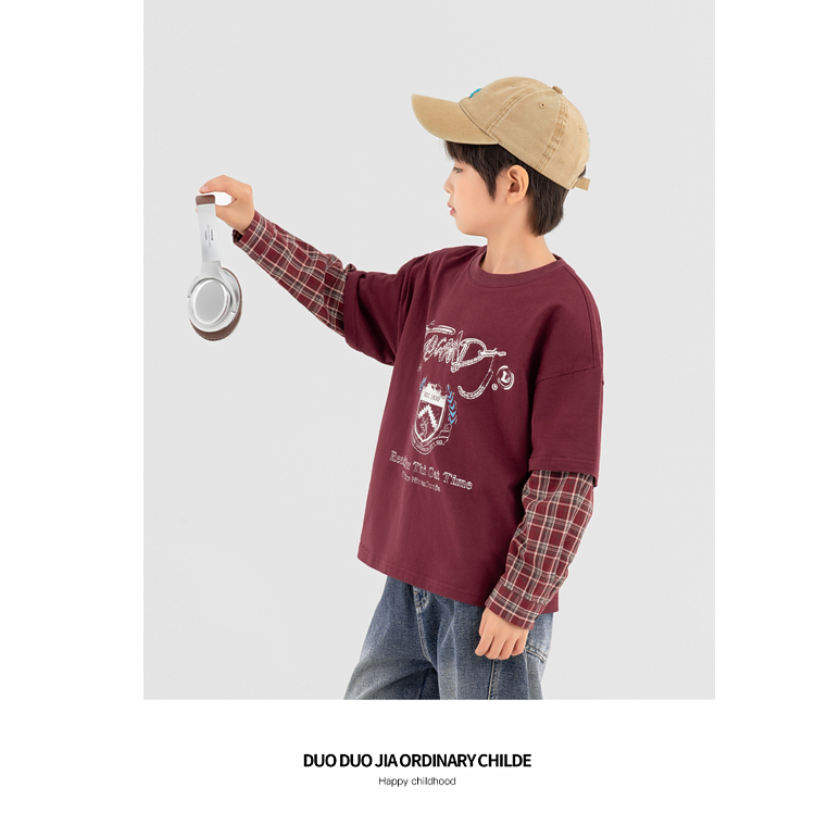 【件件底价,童装双倍积分】多多家男童假两件卫衣2025春秋新款儿童中大童格纹印花洋气上衣潮10981