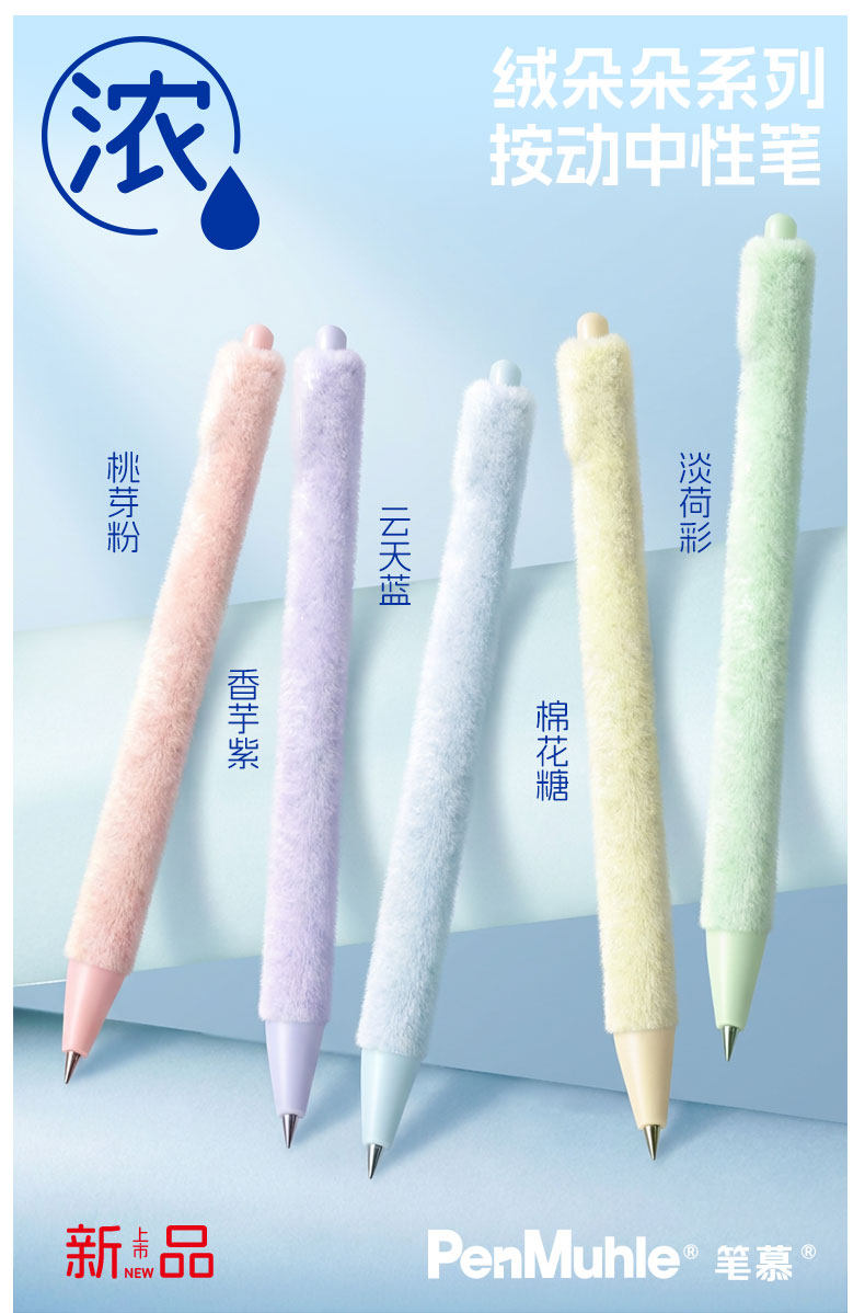 笔慕PenMuhle绒朵朵中性笔植绒毛绒按动式水笔