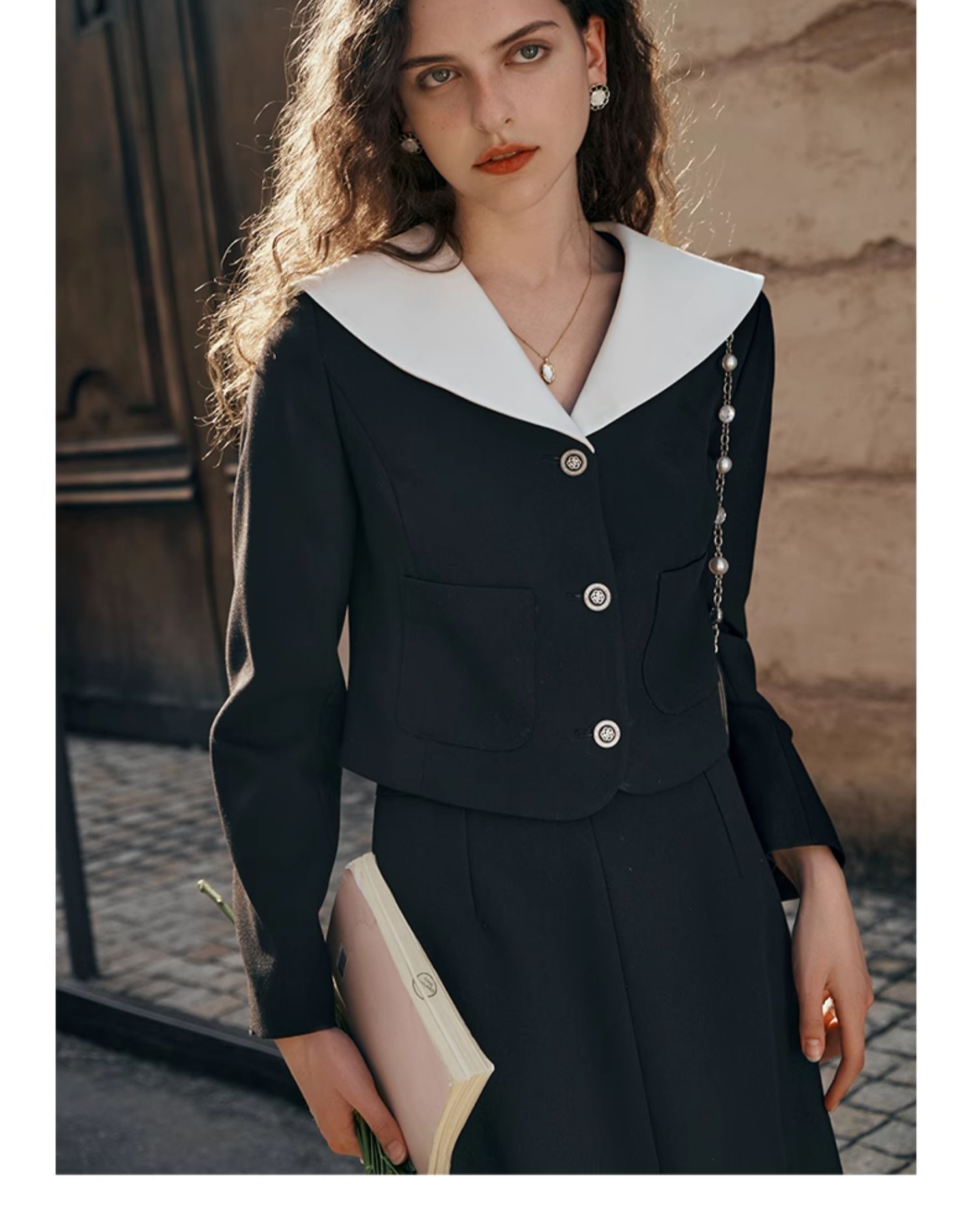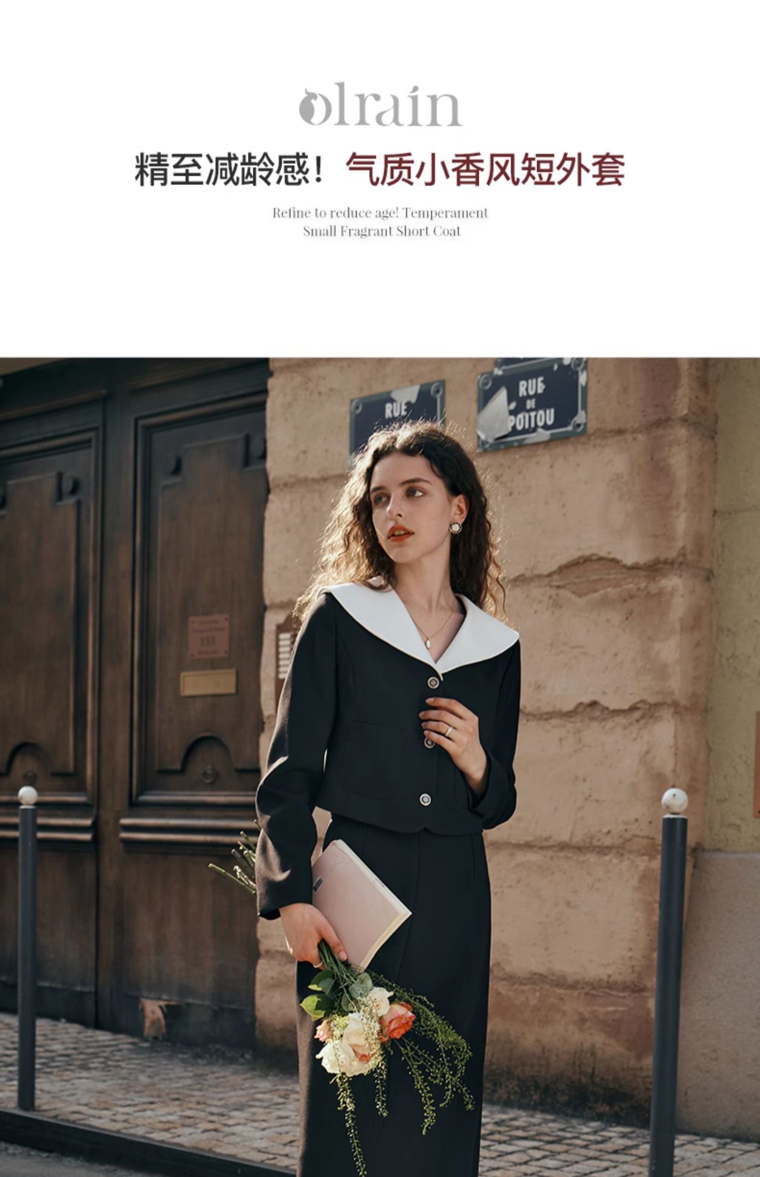 OLrain欧芮儿黑色小香风短外套女春季2024年新款气质可盐可甜上衣