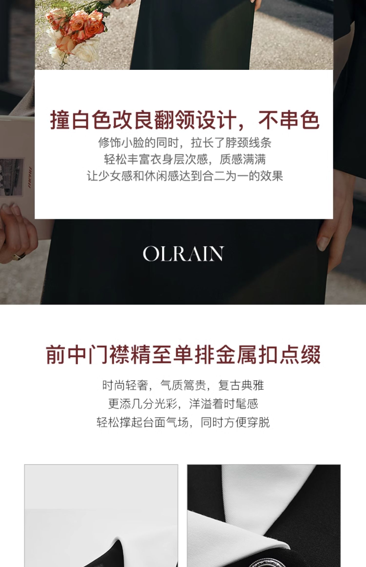 - “精致”是欧芮儿olrain品牌文化的核心,欧芮儿认为,精致的女人,不但要外在动人,更要内在迷人,内外兼修,有魅力、有气质、有内涵,自信而不自傲,优雅而不矫揉,自有万种风情而不轻浮,更不故作矜持。
