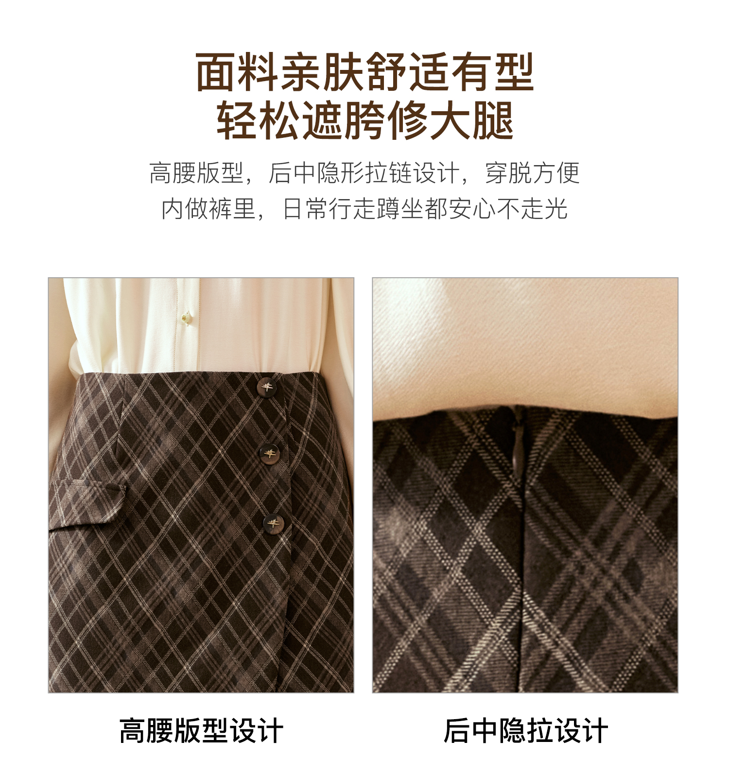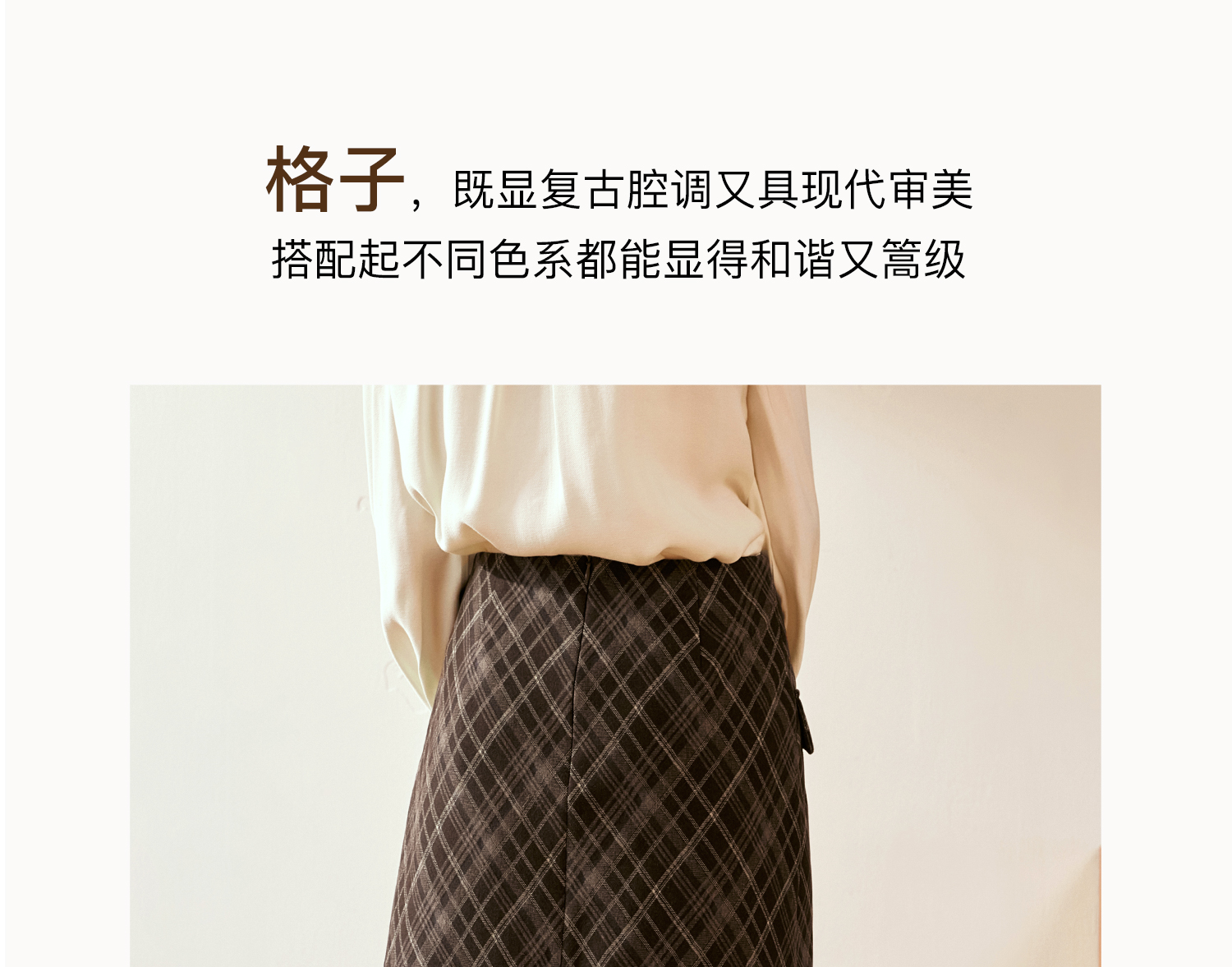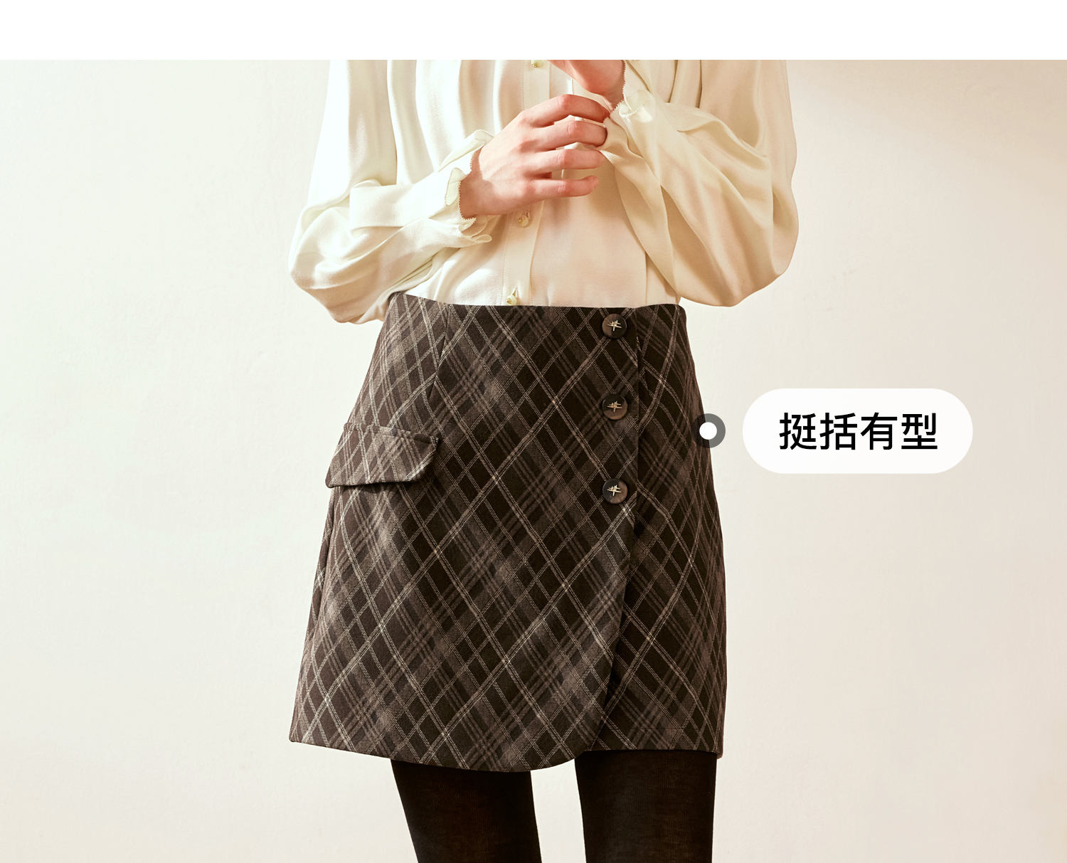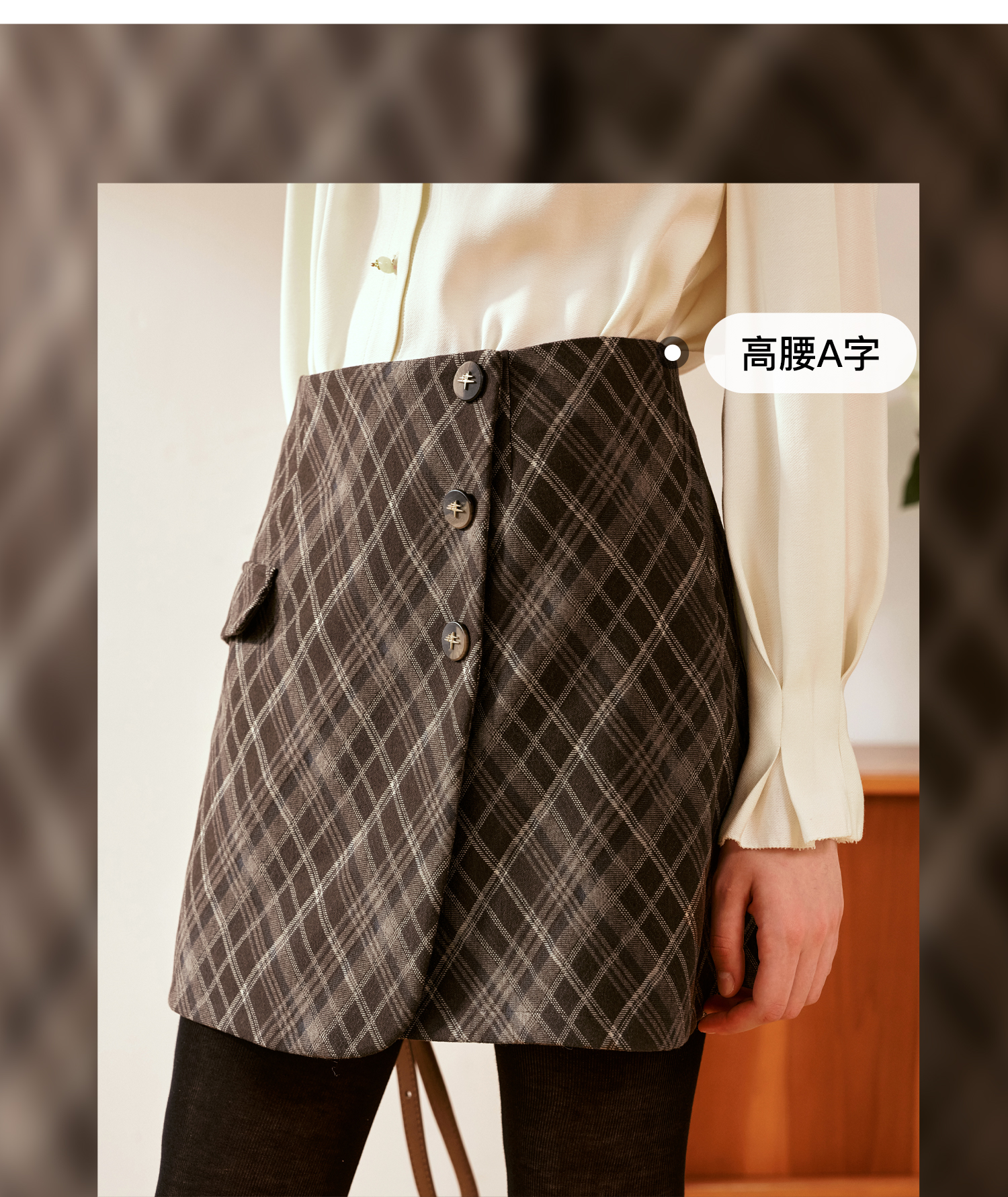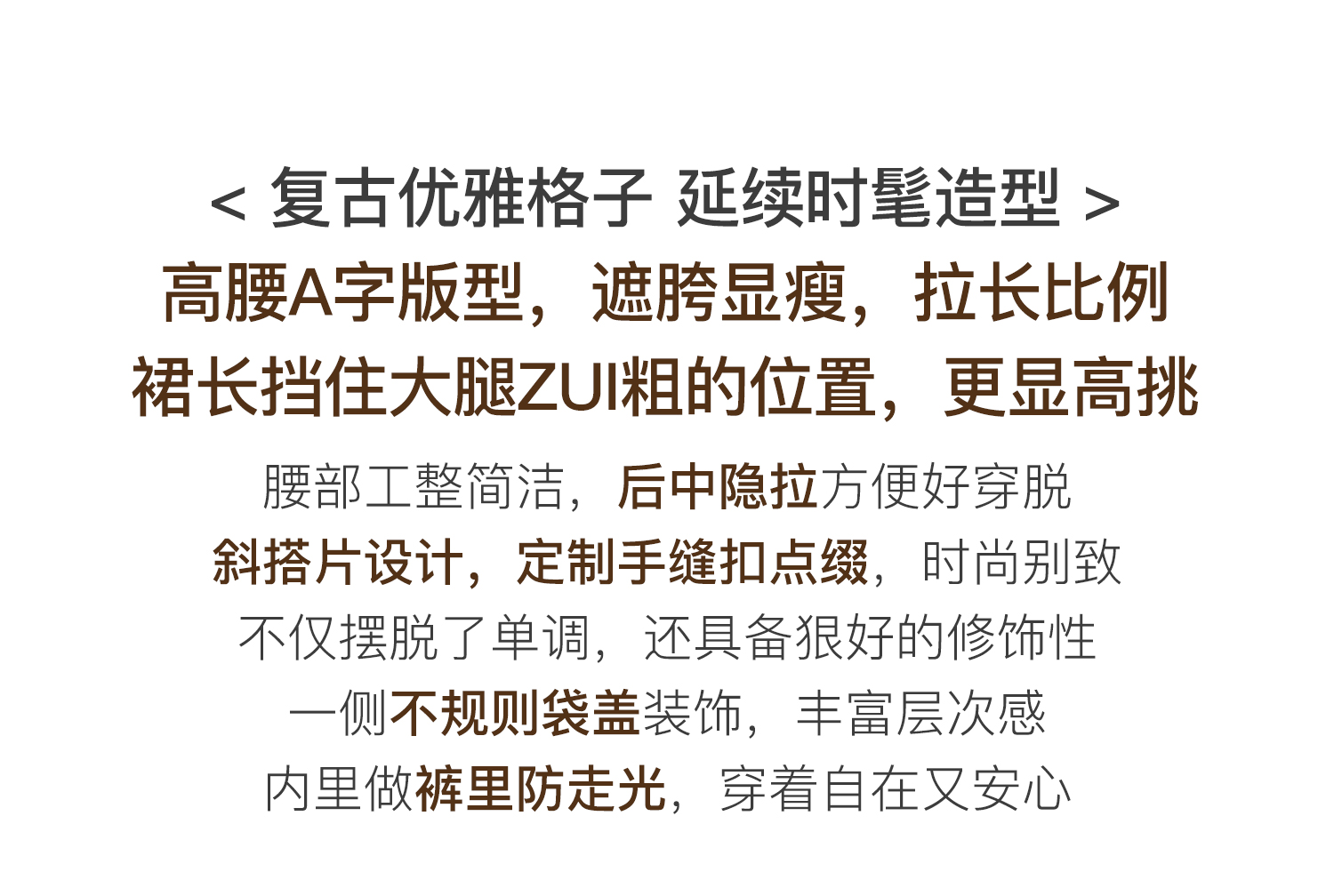 OLrain欧芮儿格子半身裙女秋季2024新款通勤百搭显瘦A字短款半裙