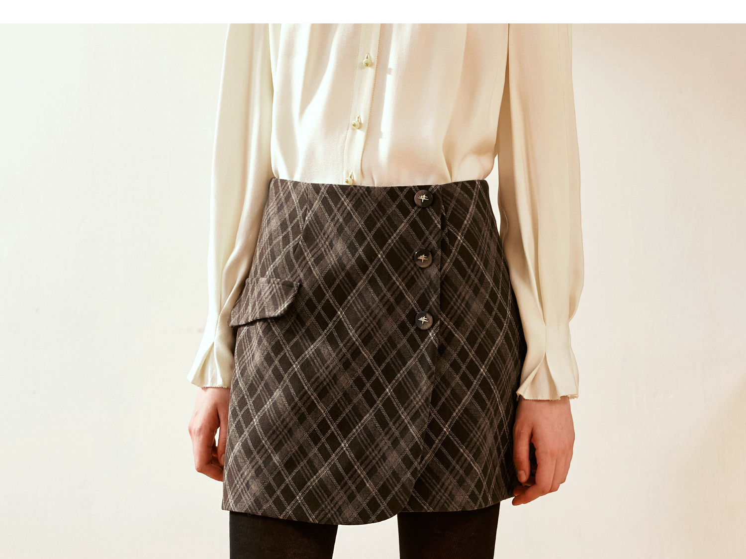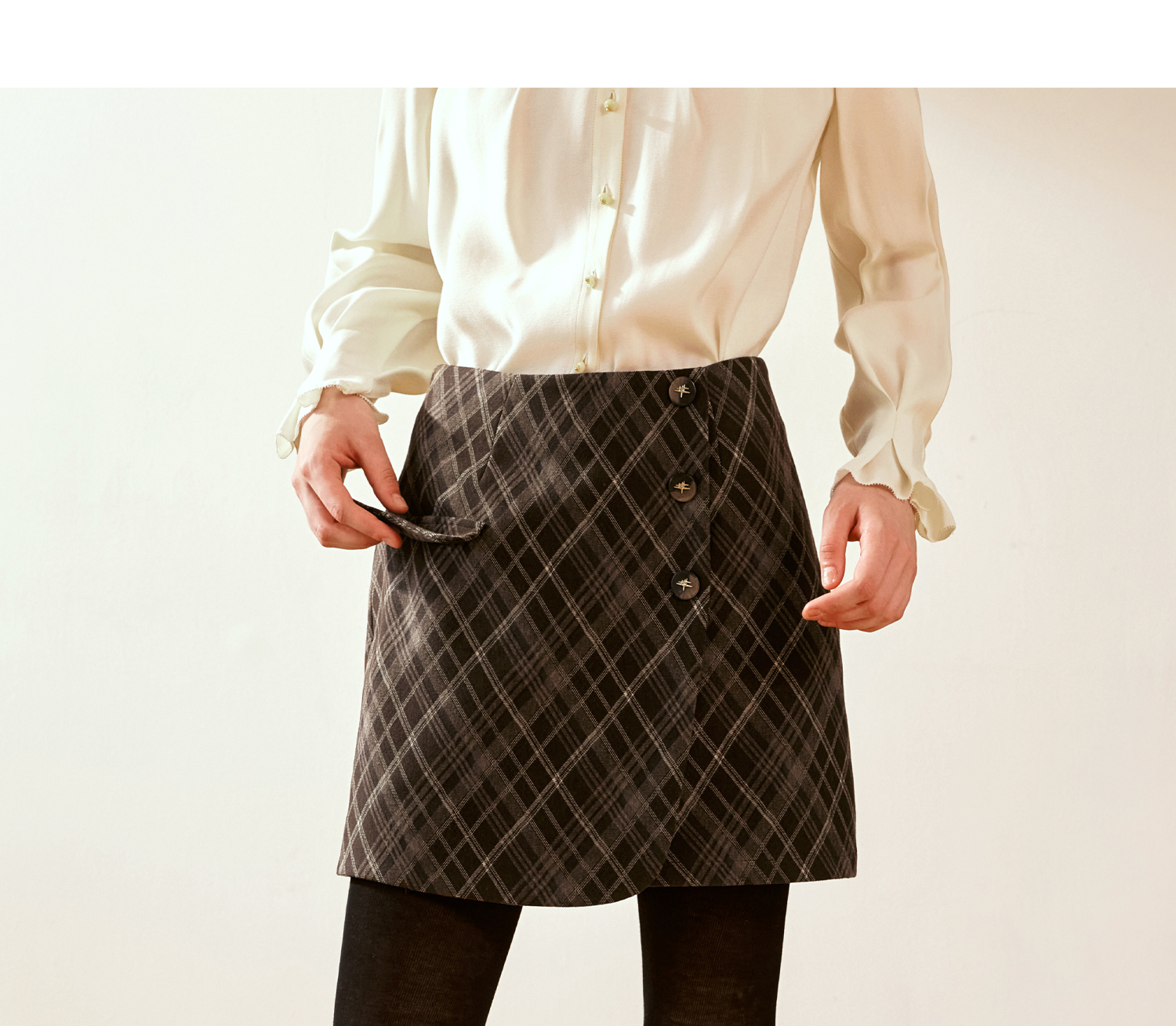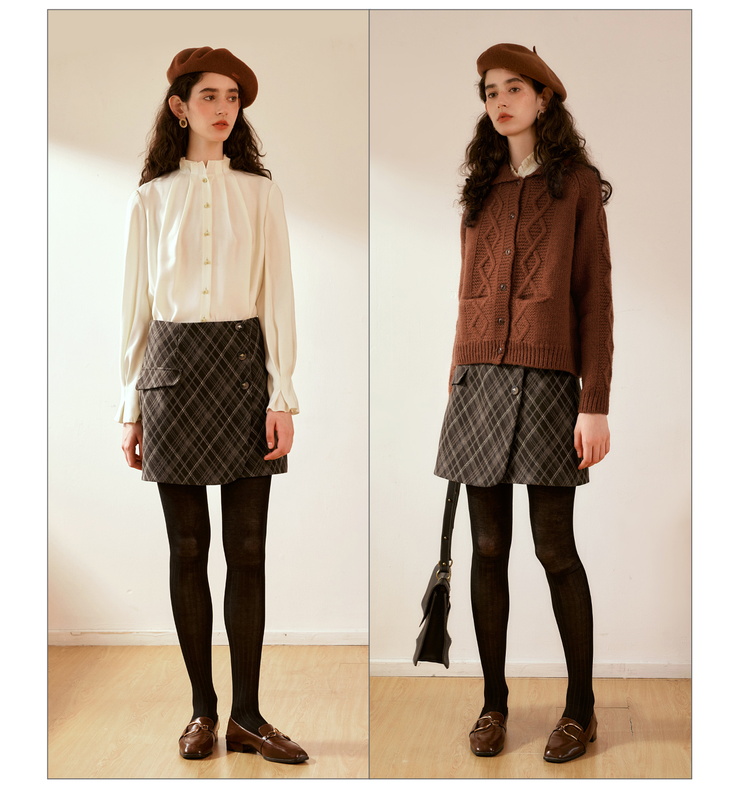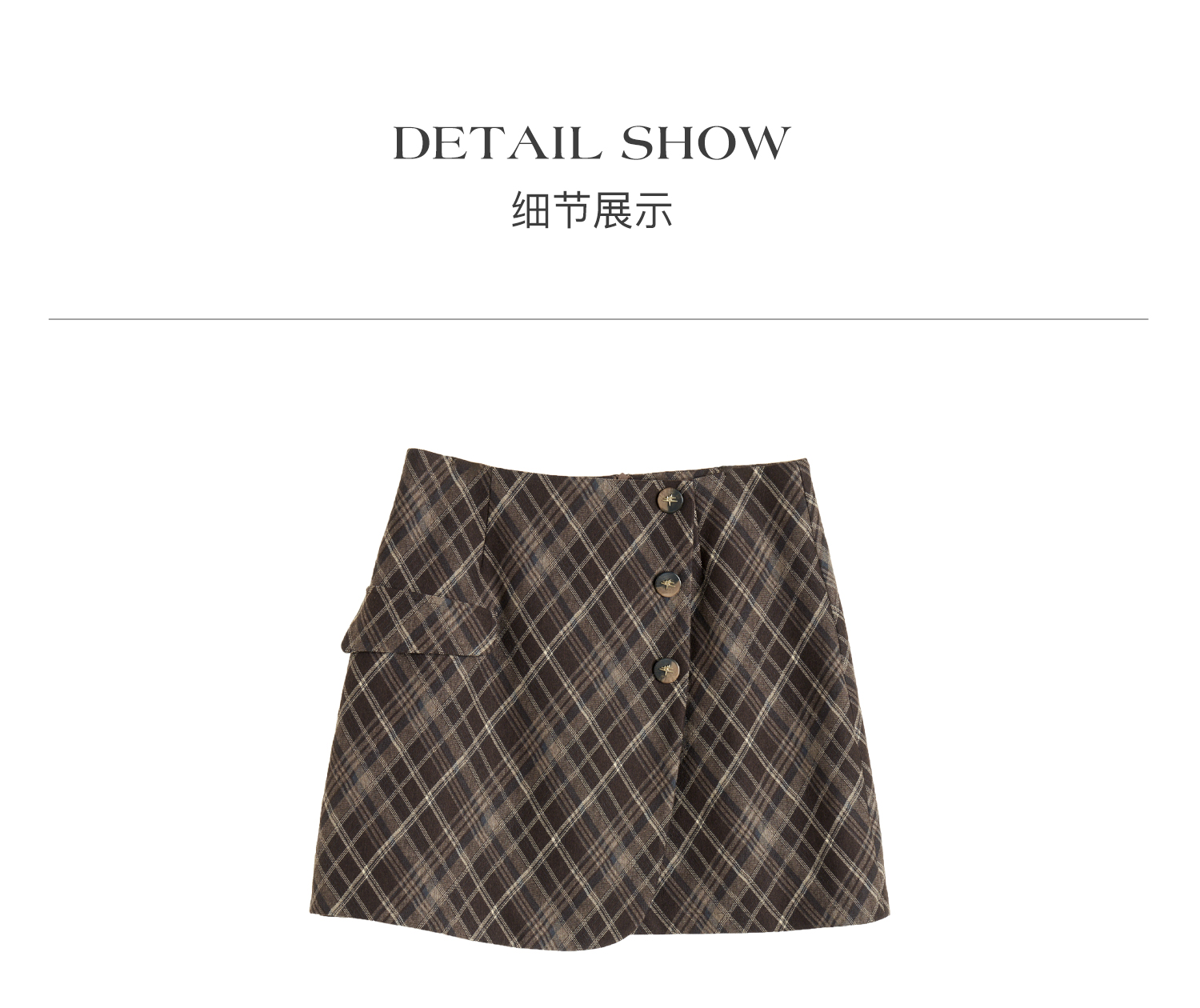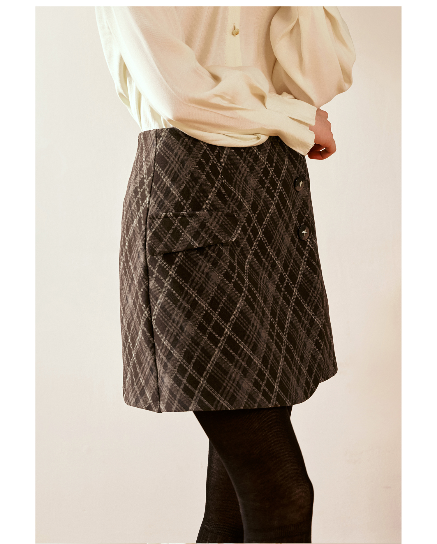 OLrain欧芮儿格子半身裙女秋季2024新款通勤百搭显瘦A字短款半裙
