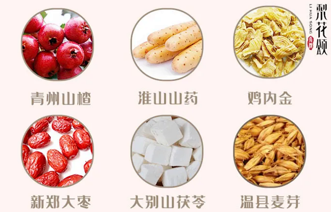 精选产地山楂、麦芽、鸡内金、山药、大枣和茯苓,