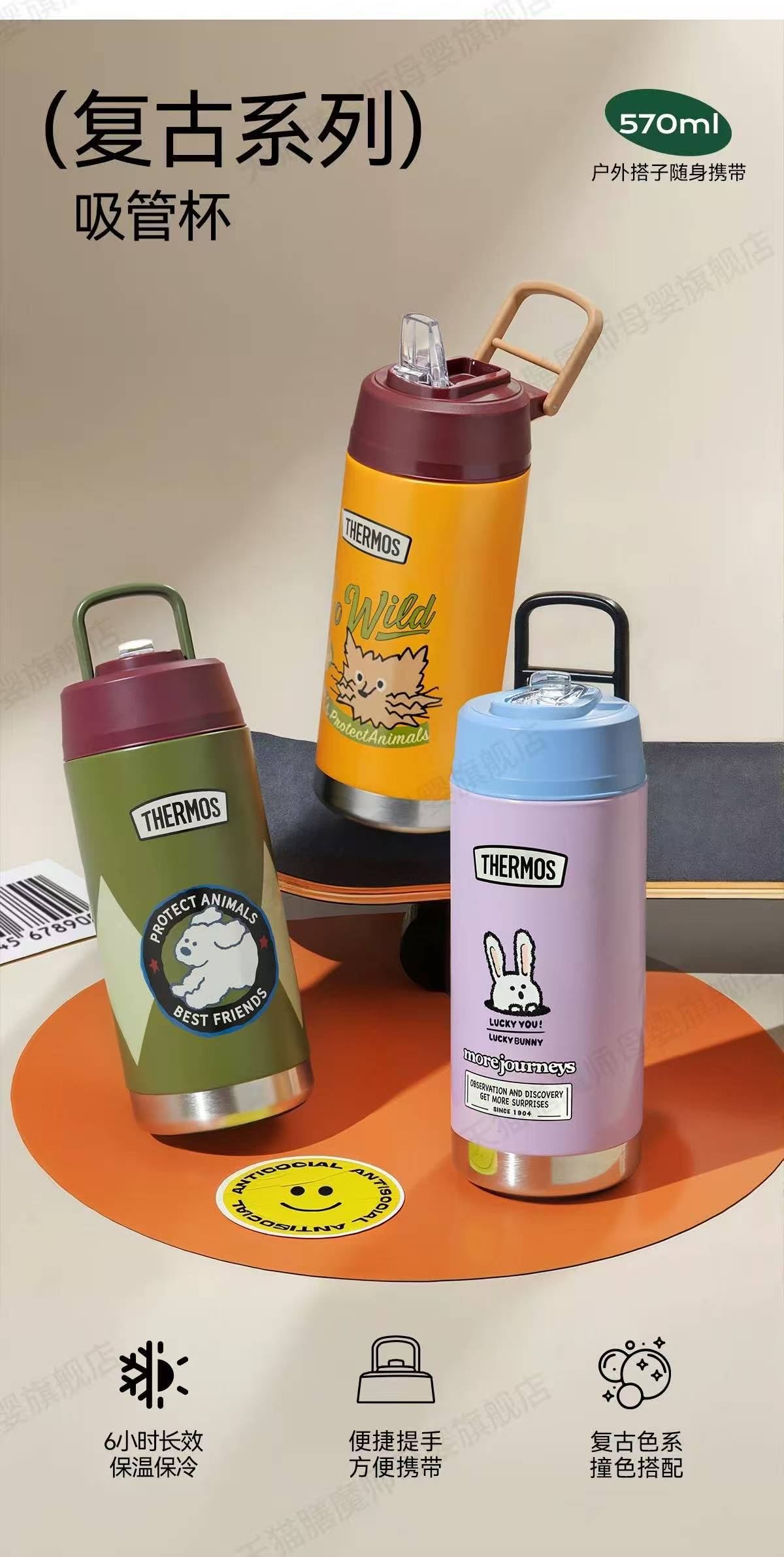 膳魔师复古系列儿童保温杯宝宝吸管杯570ml