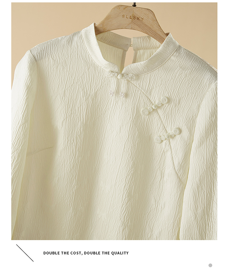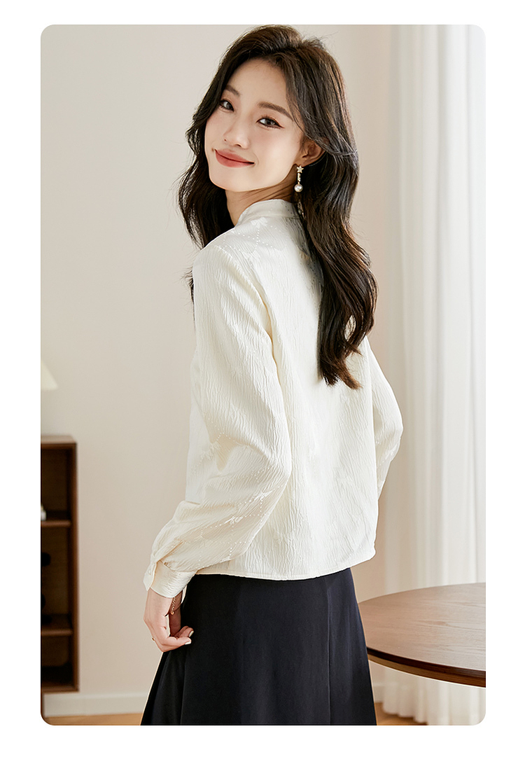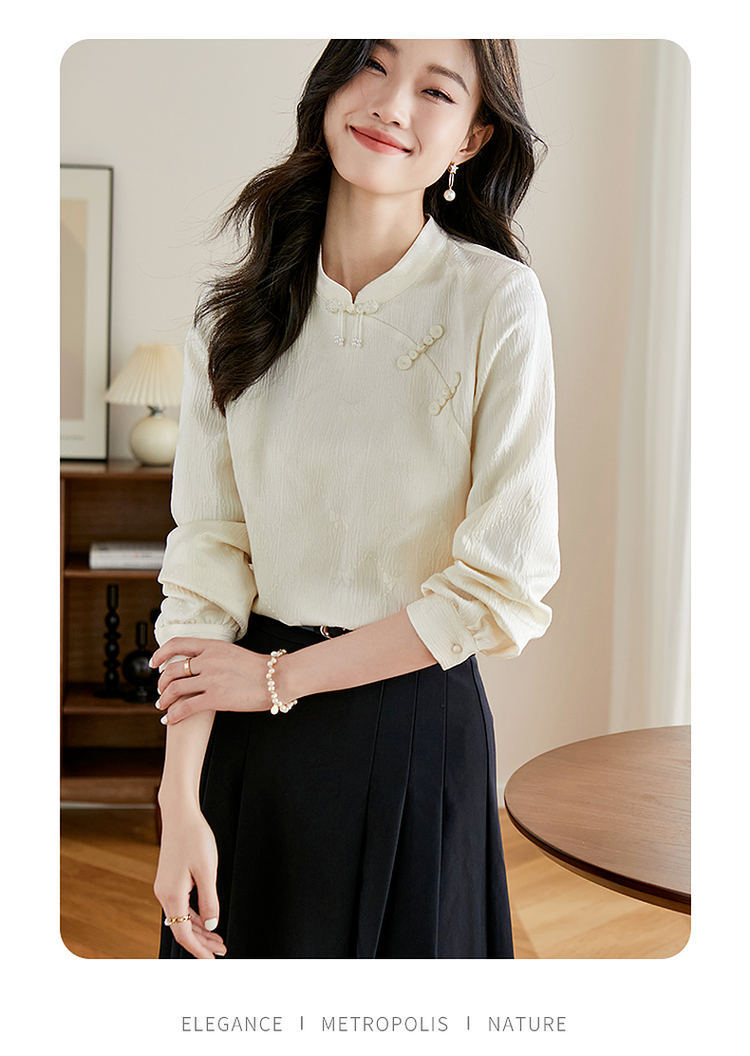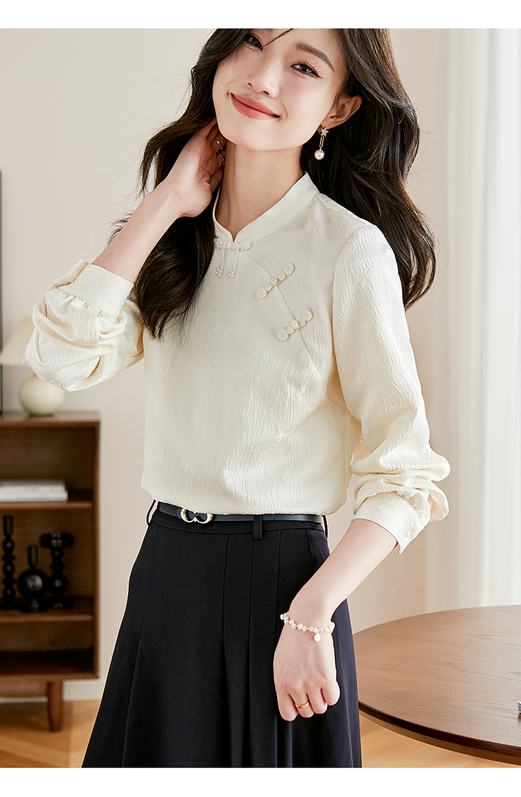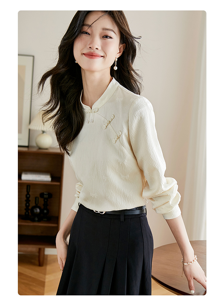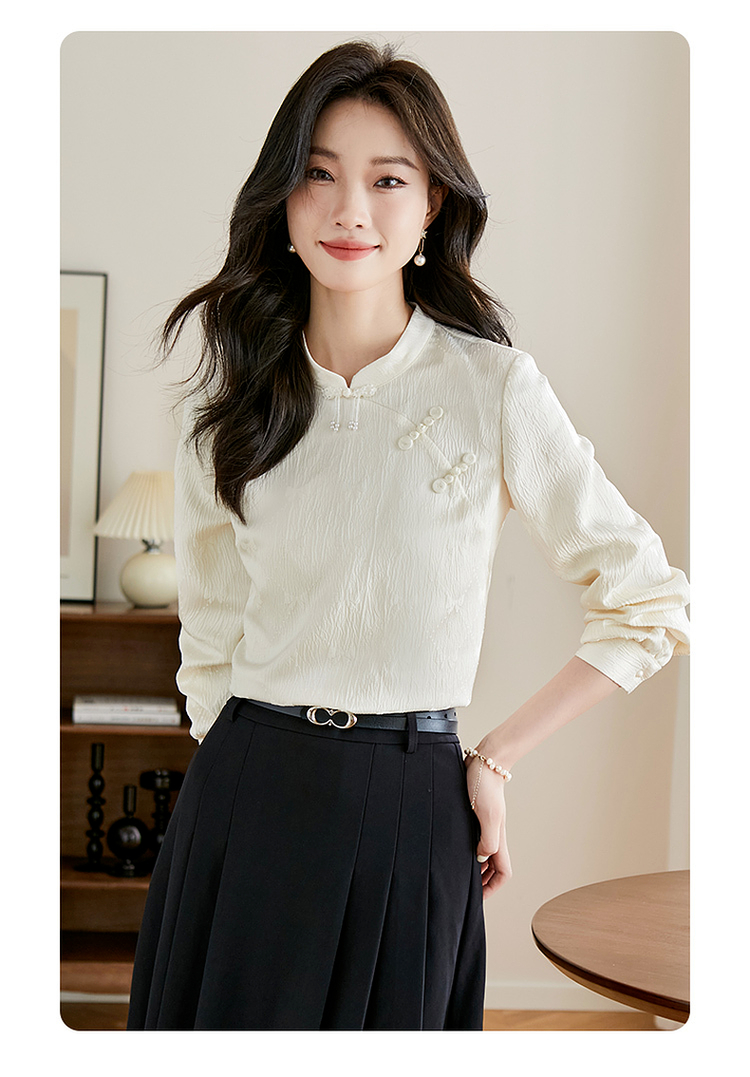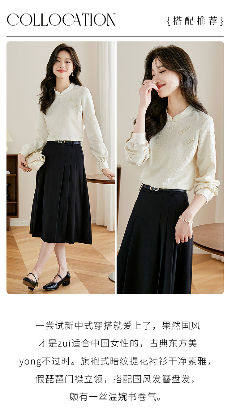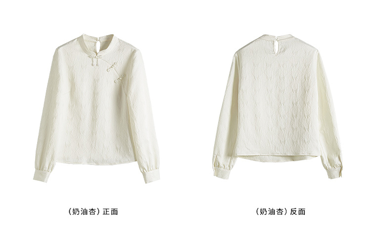 【五折购】熙世界新中式旗袍式白色衬衫2025秋季新款长袖国风复古盘扣上衣