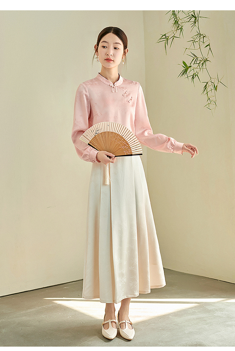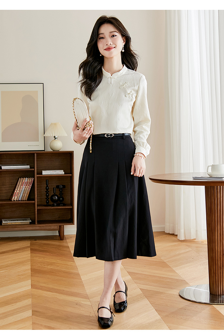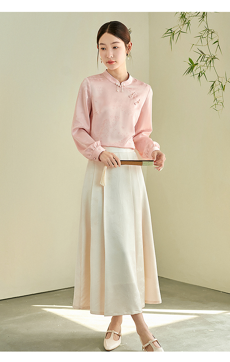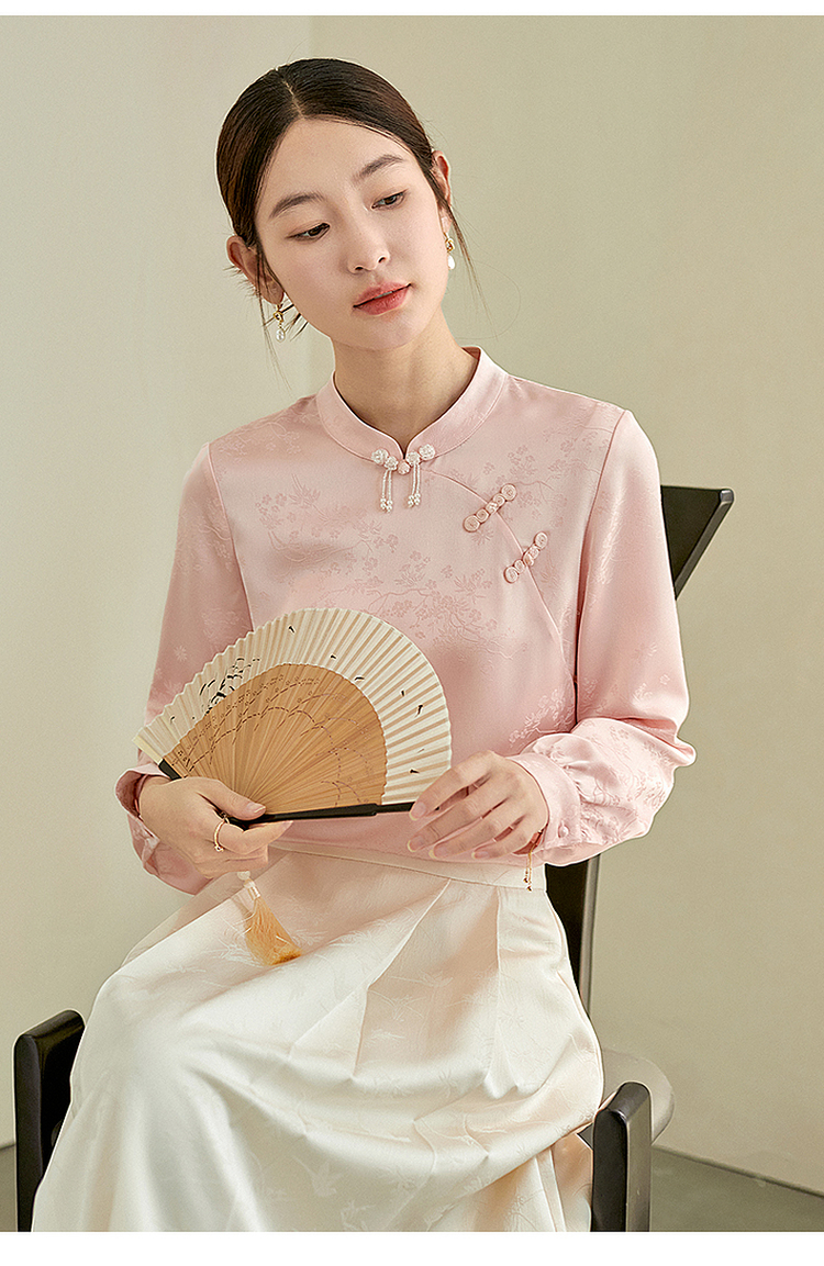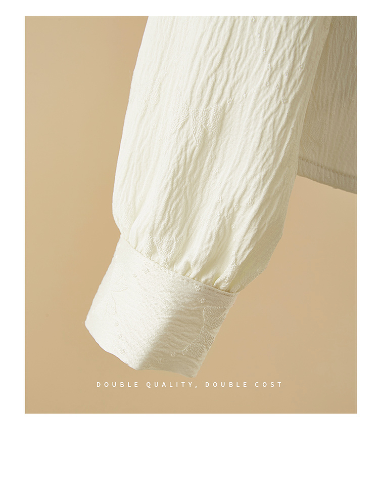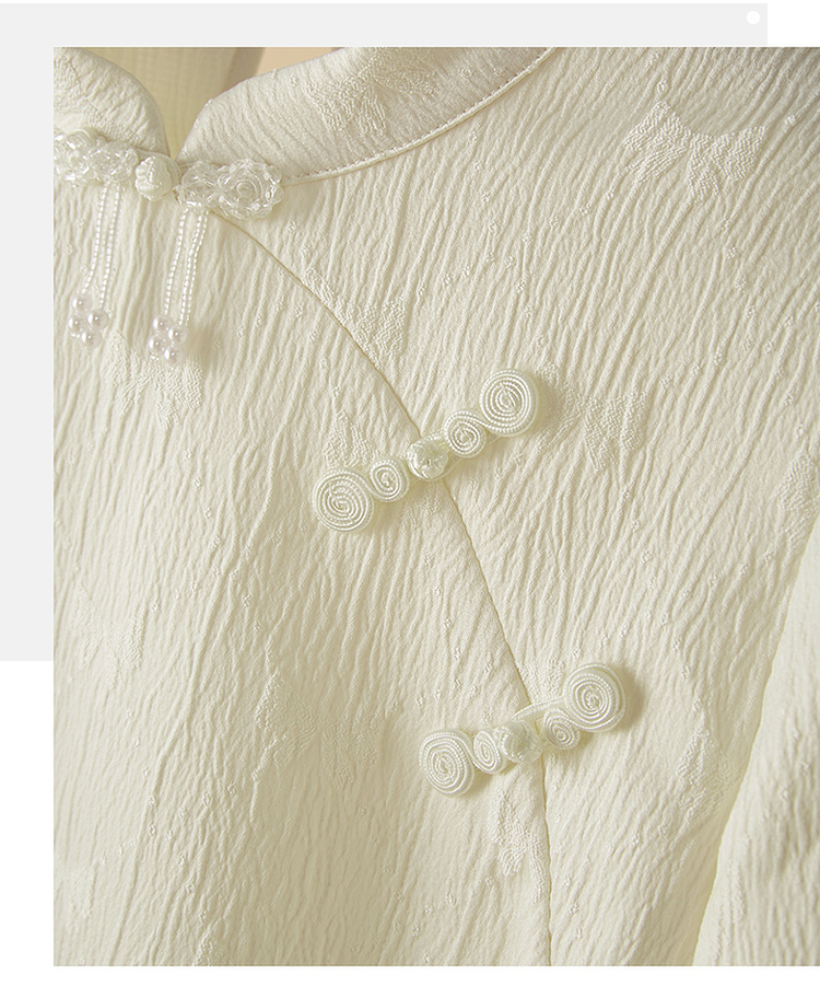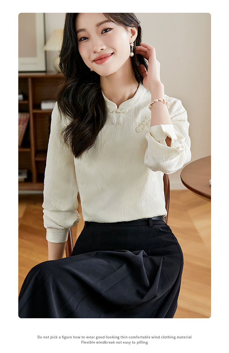 【五折购】熙世界新中式旗袍式白色衬衫2025秋季新款长袖国风复古盘扣上衣