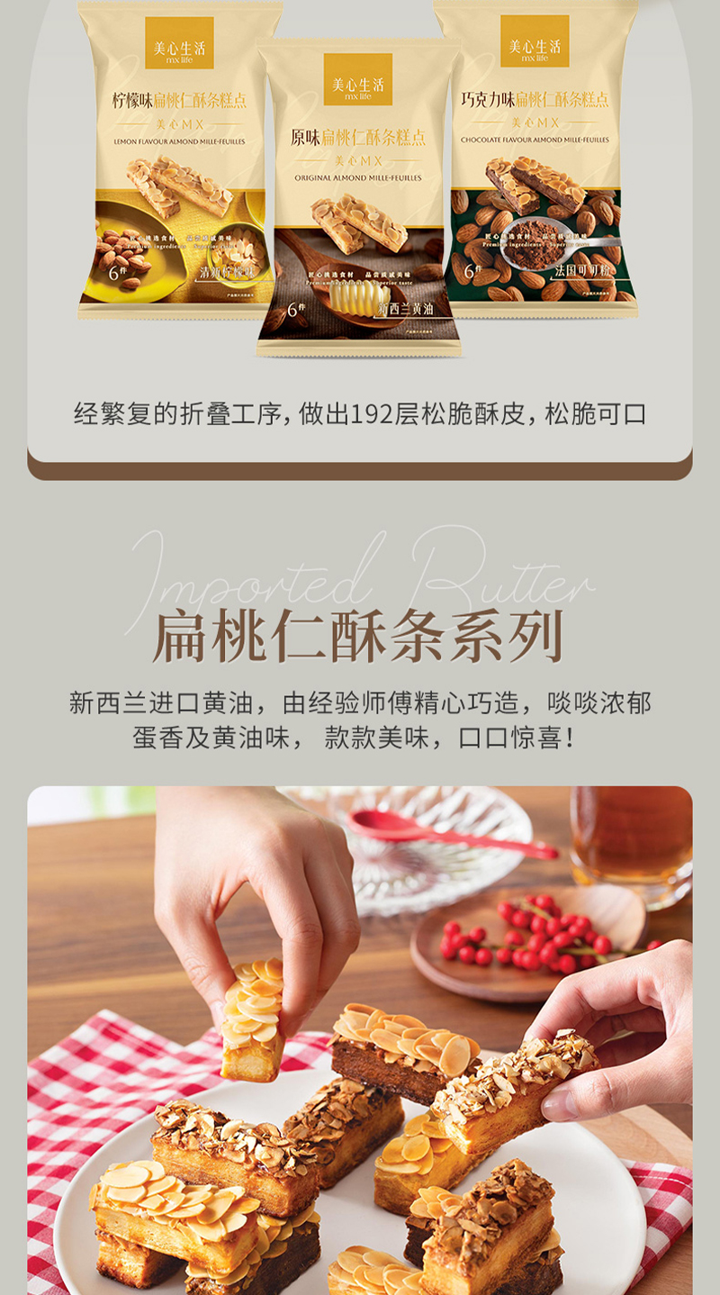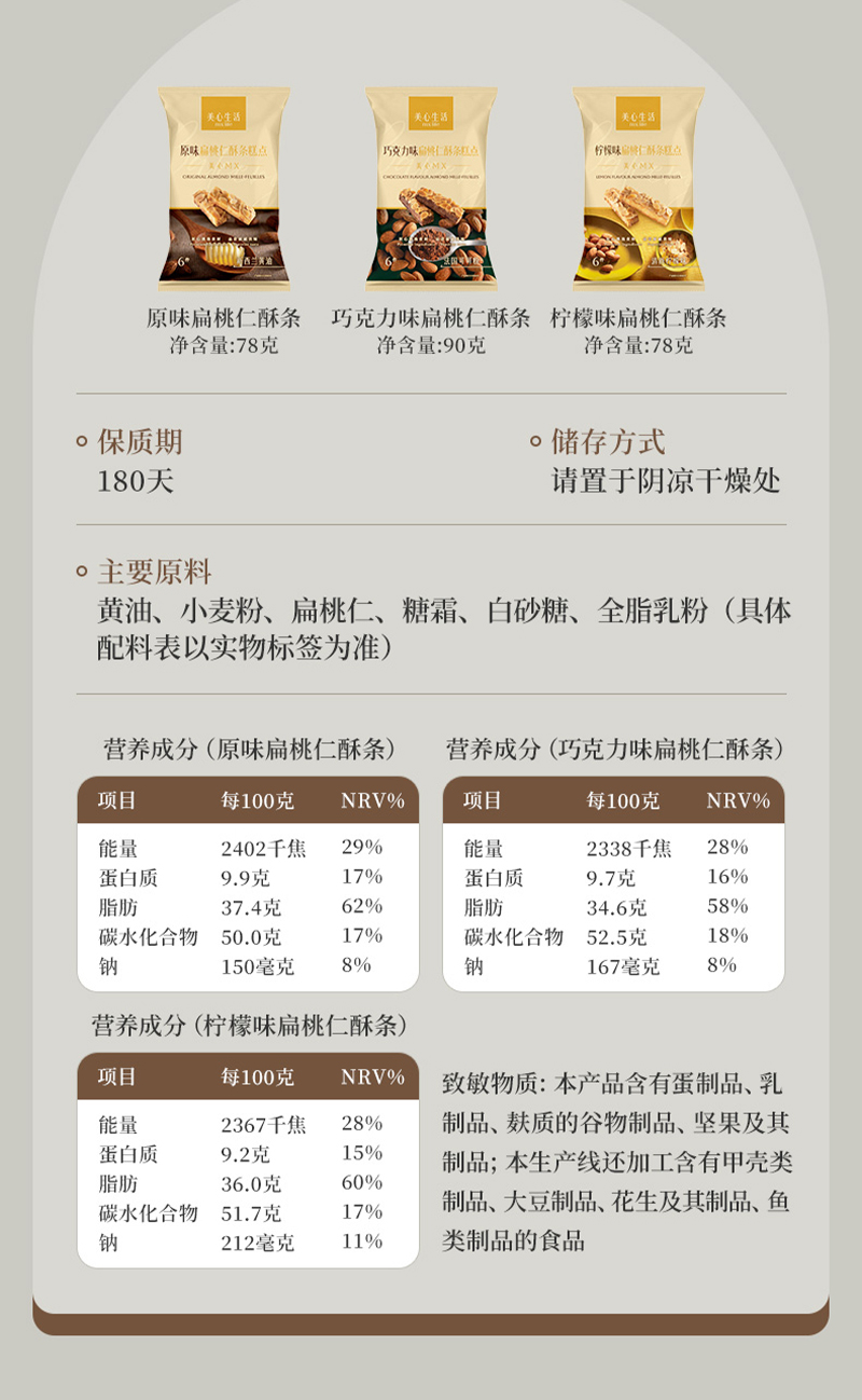 美心生活原味扁桃仁酥条78g+柠檬味扁桃仁酥条78g+巧克力味扁桃仁酥条90g