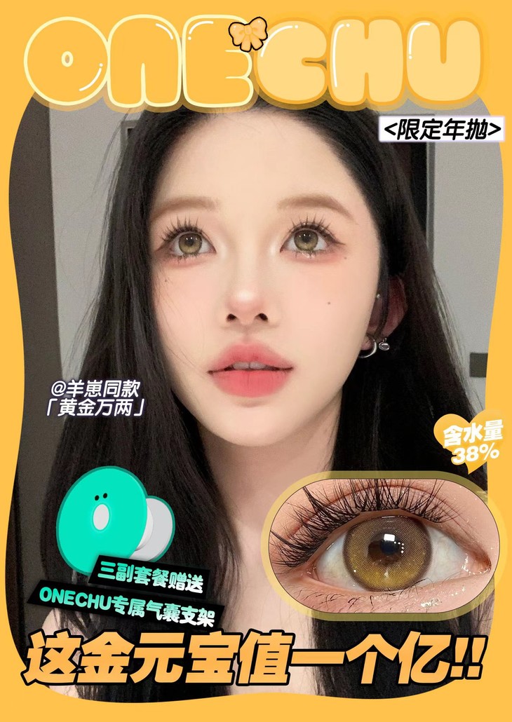 【618秒杀】Onechu,61.8元/任选两副(活动时间未定随时会结束,韩国工厂,年抛,含硅水凝胶,无售后无赠品不送盒子)