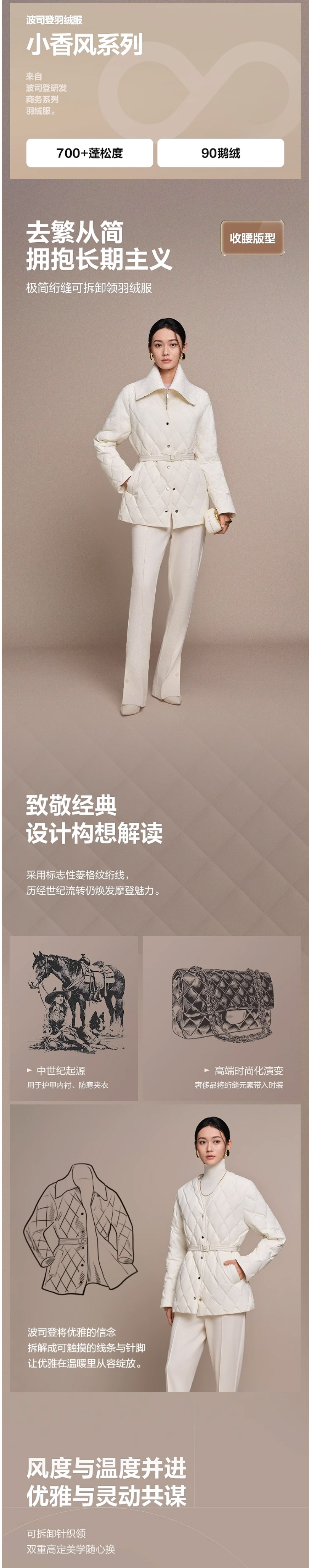 波司登25秋季新款女正品轻薄羽绒服收腰鹅绒B250134152