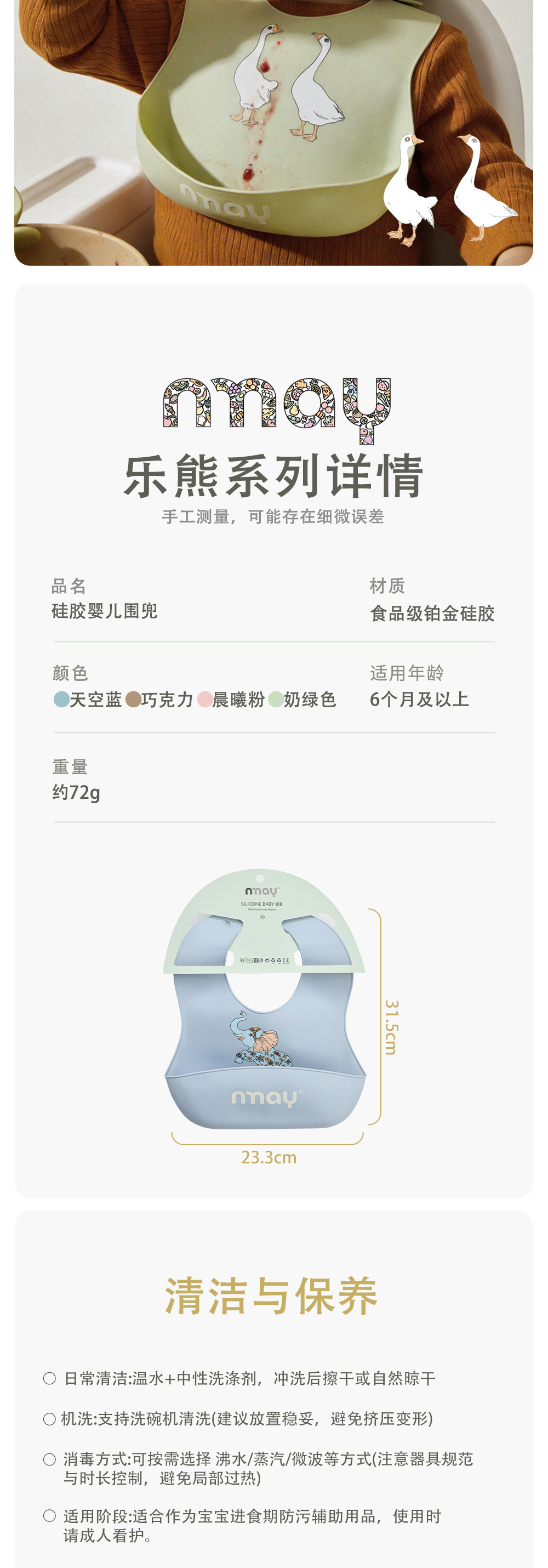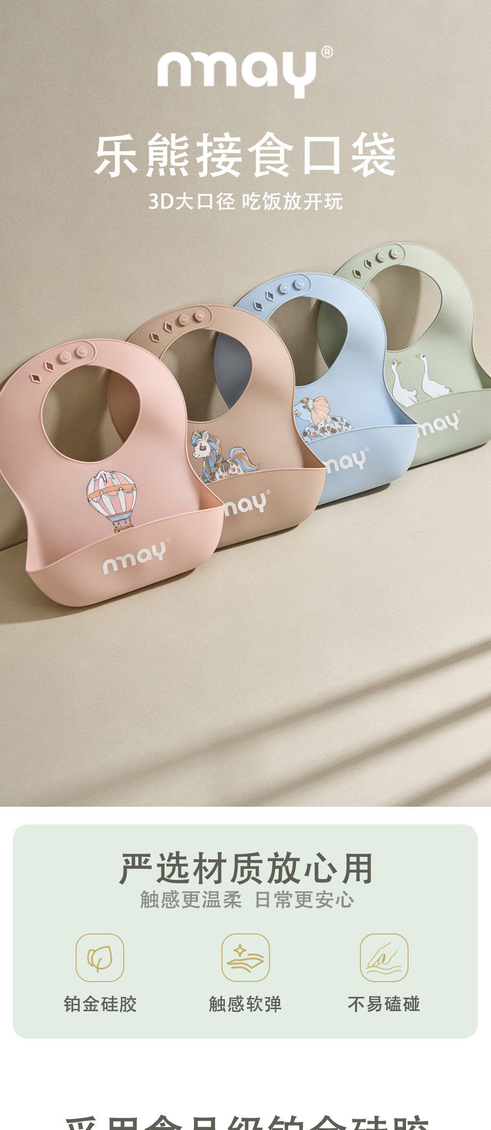nmay 乐熊系列 婴儿围兜 硅胶宝宝辅食饭吃饭专用餐具围嘴6月+