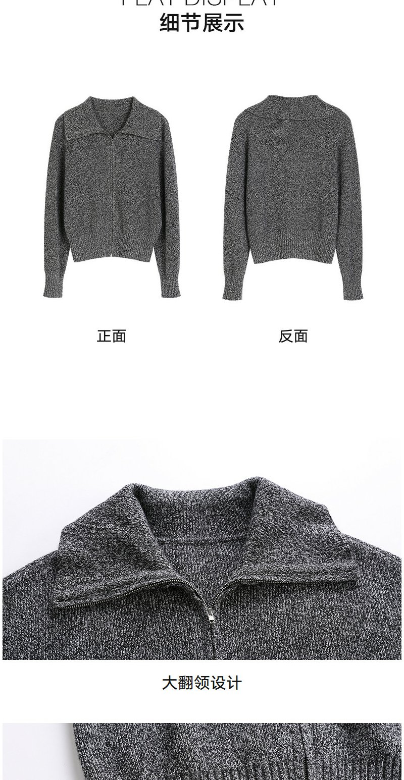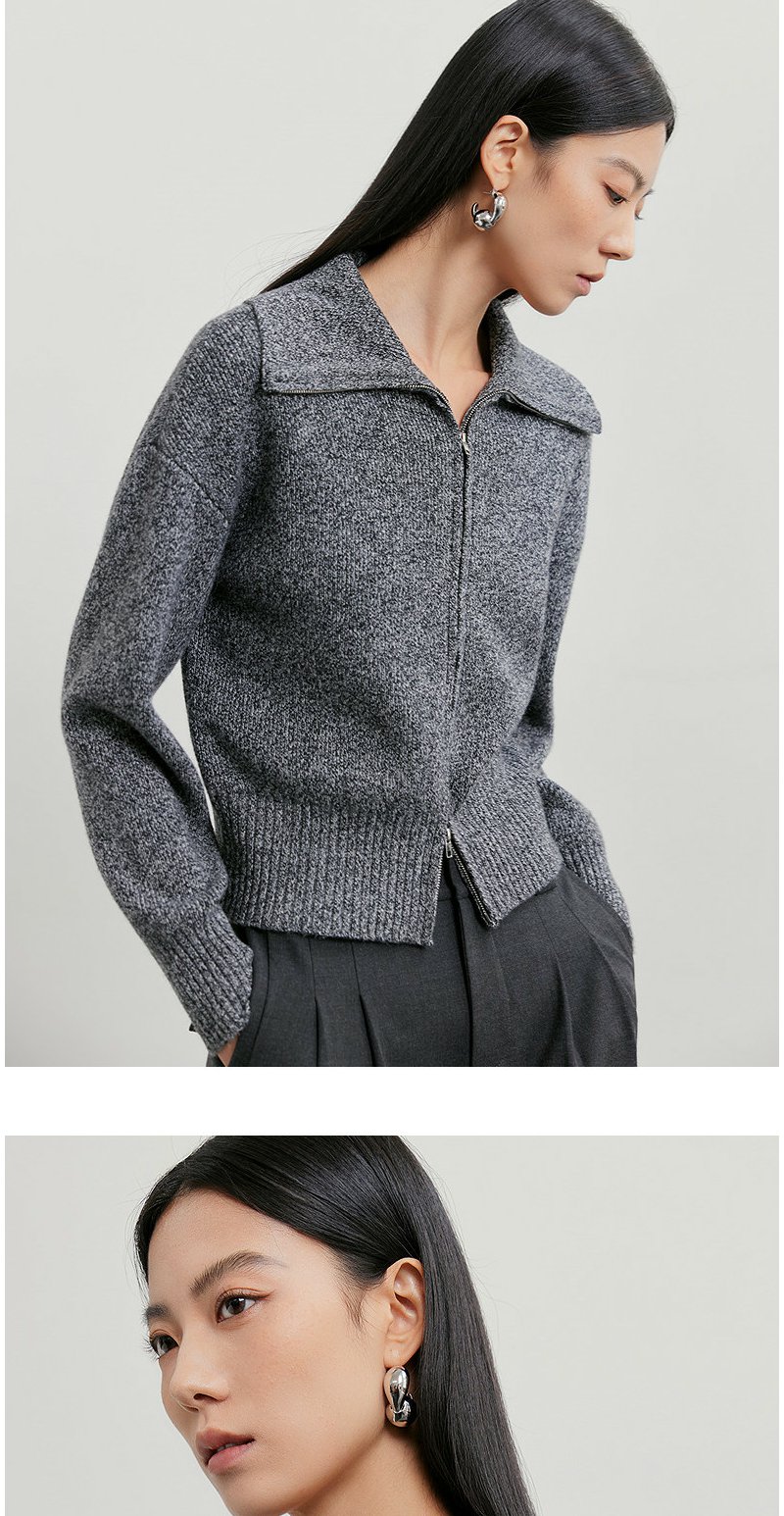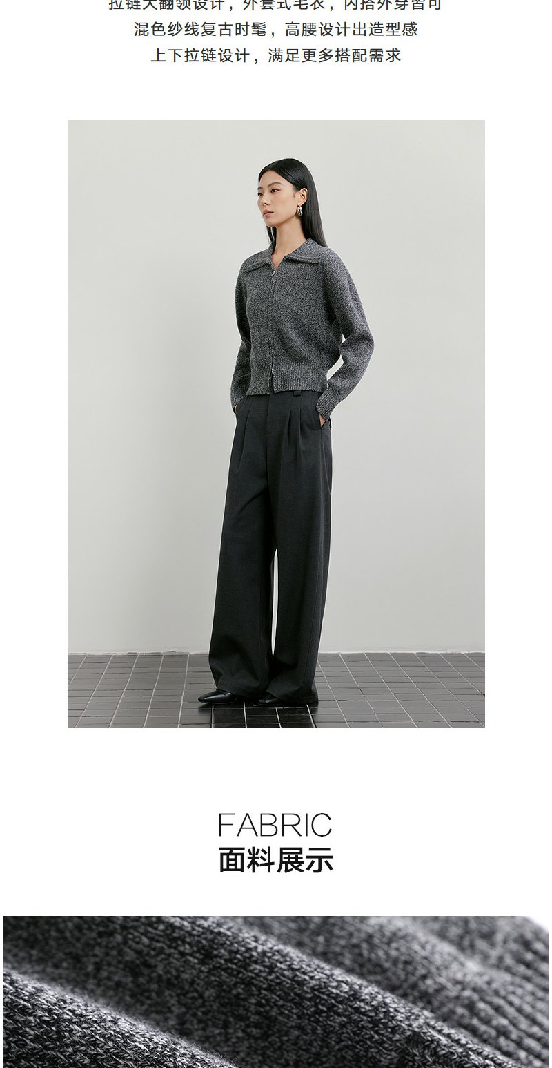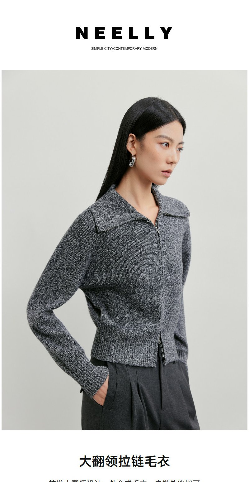 NEELLY纳俪商场同款春季新款时髦大翻领拉链针织衫女复古气质上衣N26011A01006
