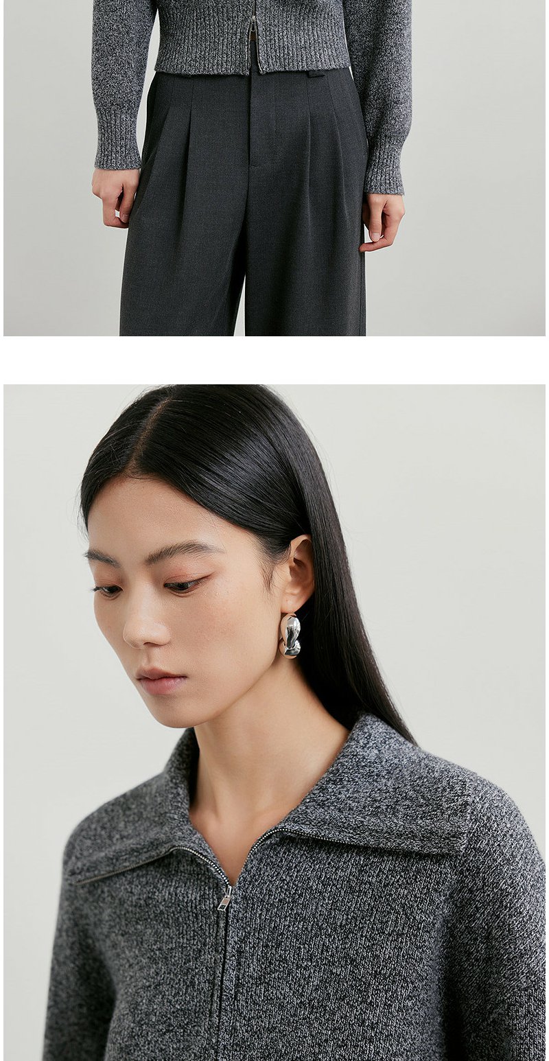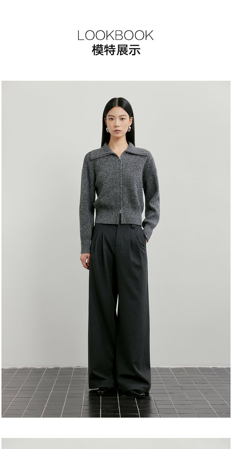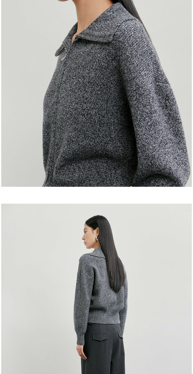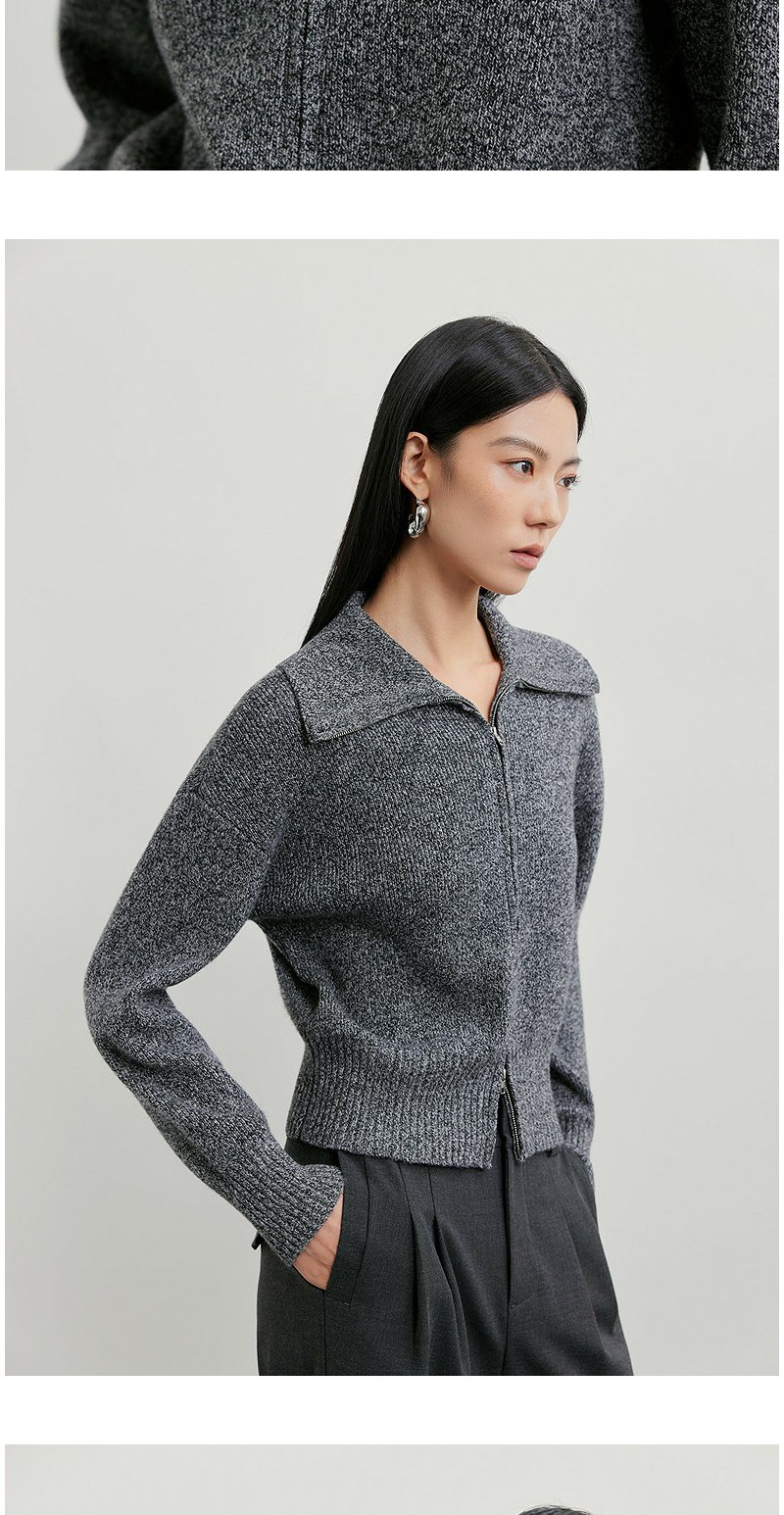 NEELLY纳俪商场同款春季新款时髦大翻领拉链针织衫女复古气质上衣N26011A01006