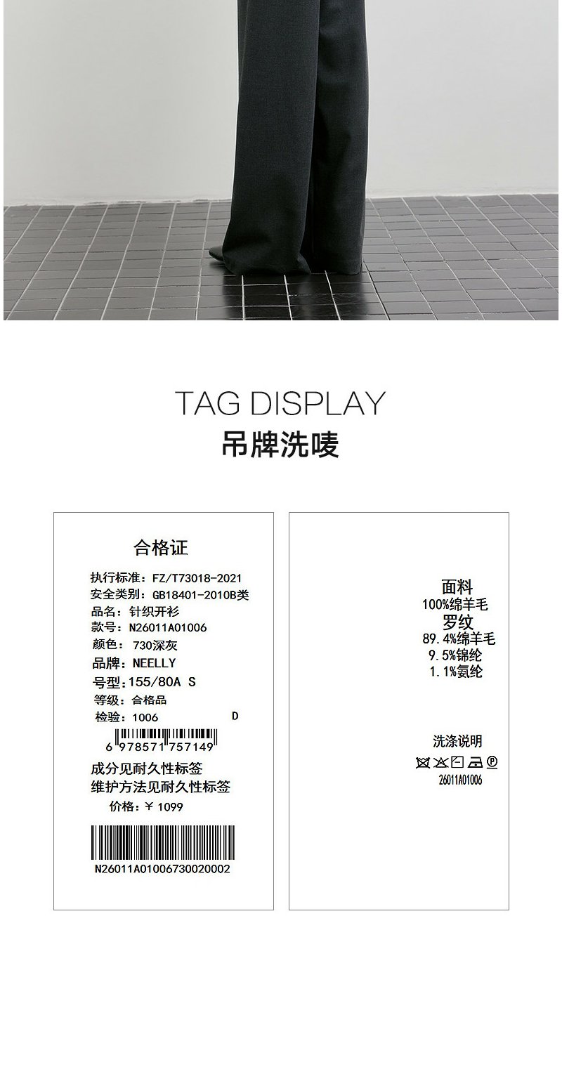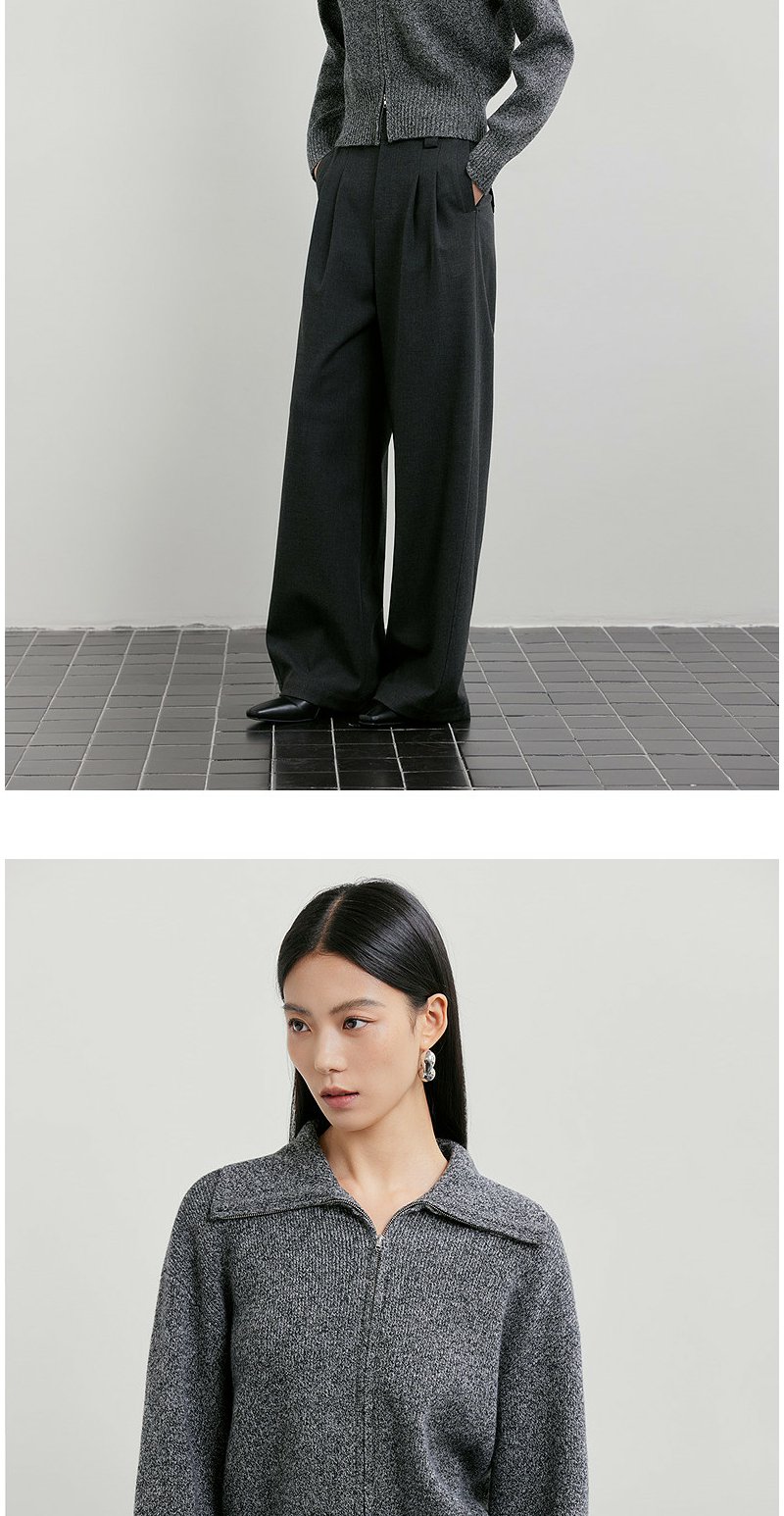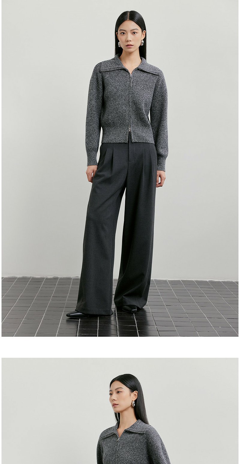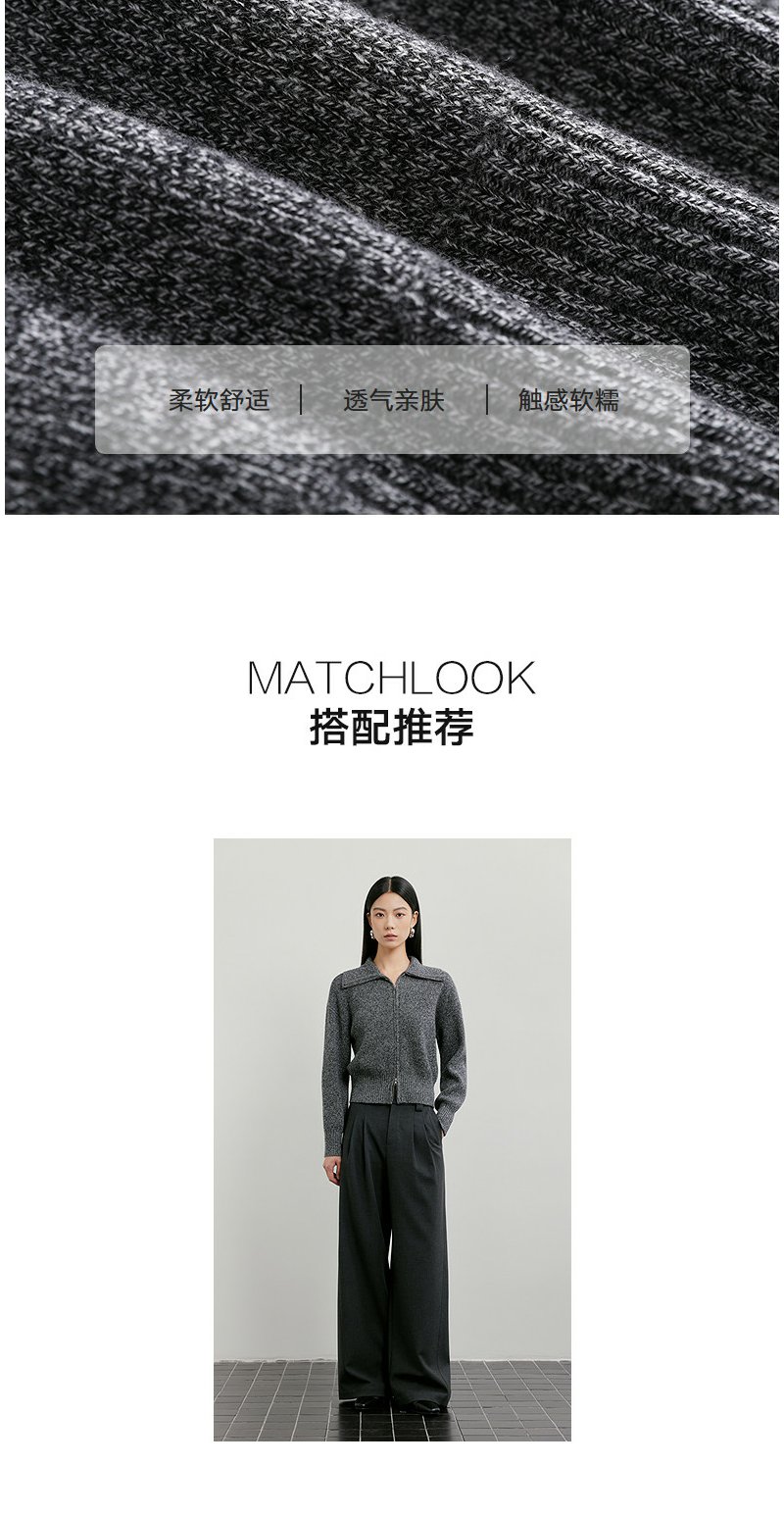 NEELLY纳俪商场同款春季新款时髦大翻领拉链针织衫女复古气质上衣N26011A01006