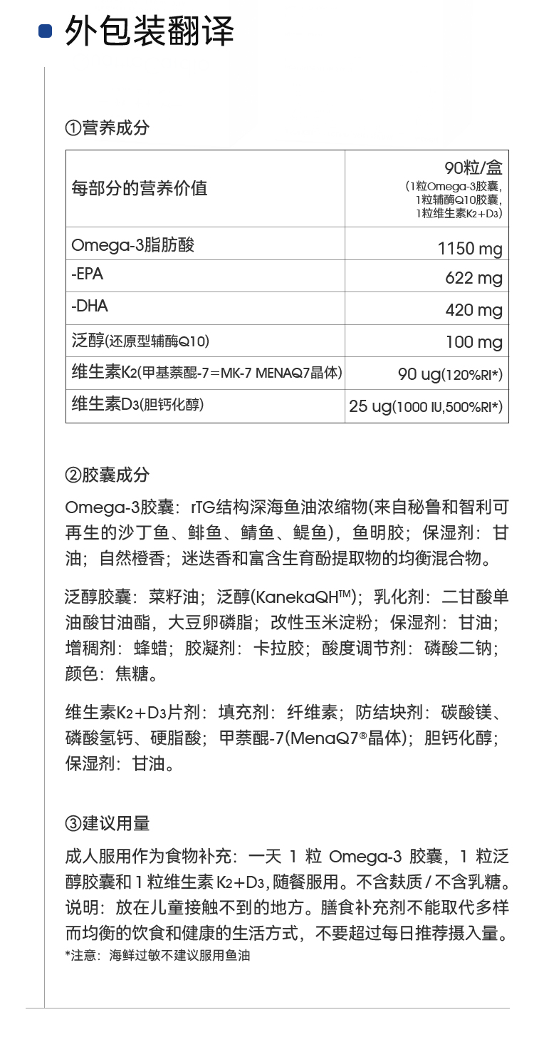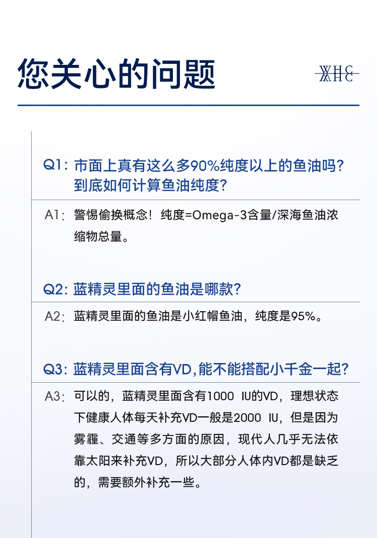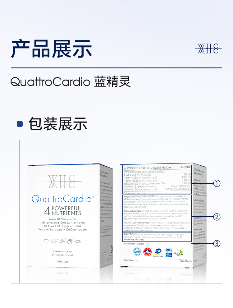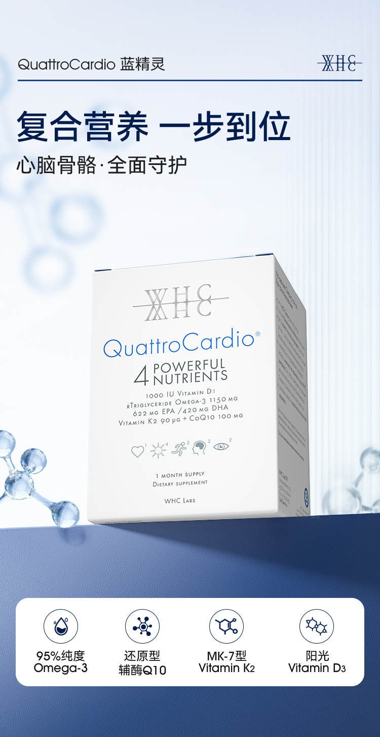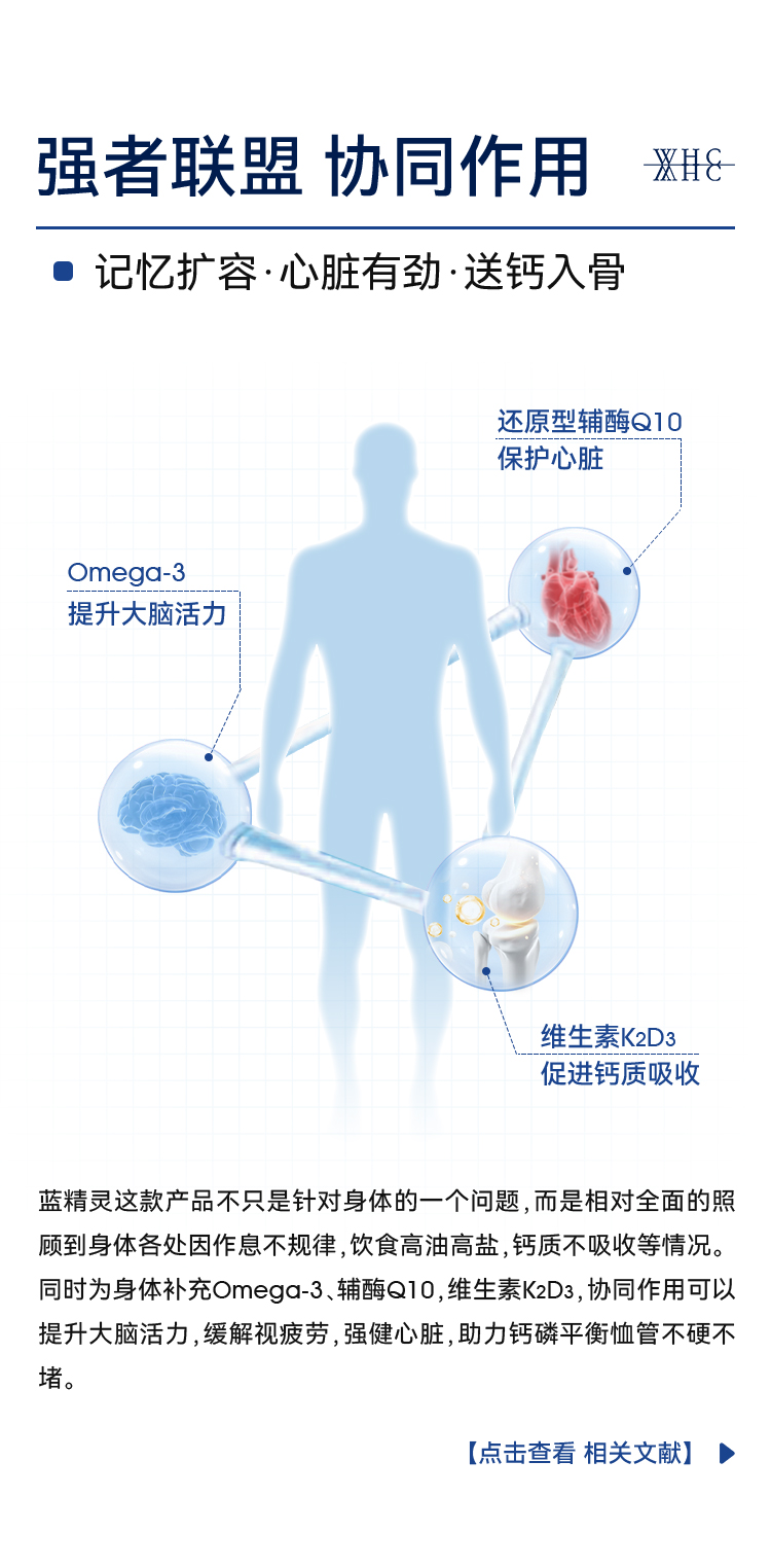 WHC蓝精灵95%鱼油辅酶Q10维生素KD营养包心脑骨骼成人中老年90粒