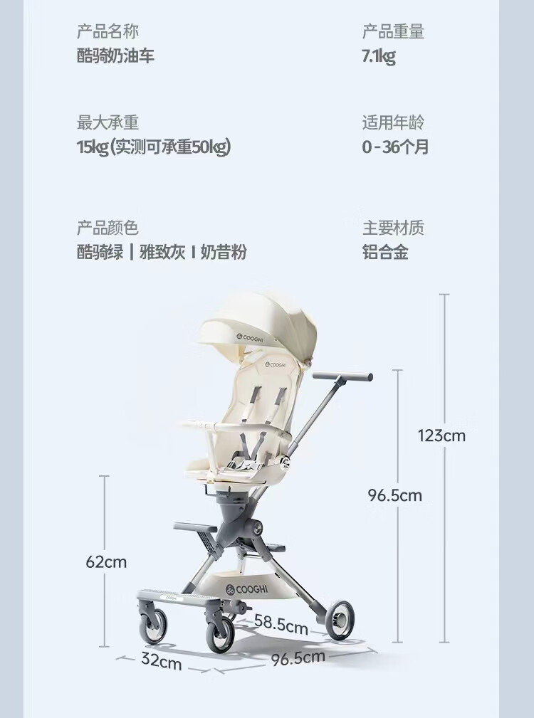 COOGHI酷骑高景观遛溜娃奶油车 M2半躺款