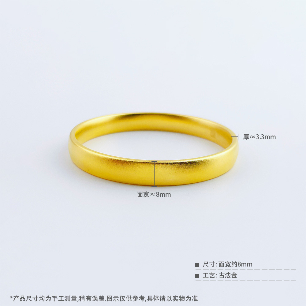 【限时克减128元】足金999 #超轻 古法空心固口手镯超轻加硬福字古法轮胎手镯(面宽约7.8-8.2mm)(AUQGFSZ00066-4)预售产品下单后不退款不退货不换货不补差价