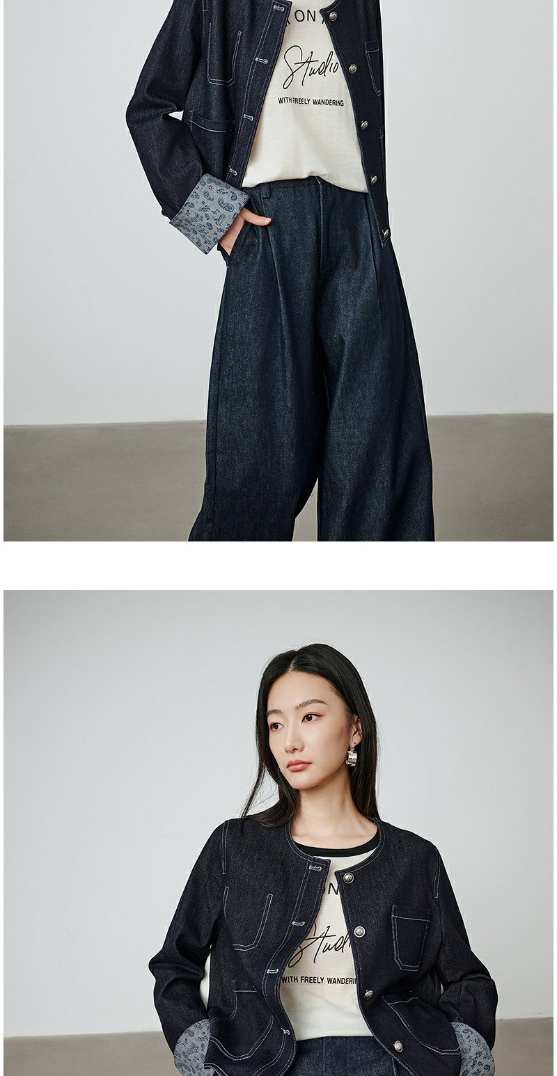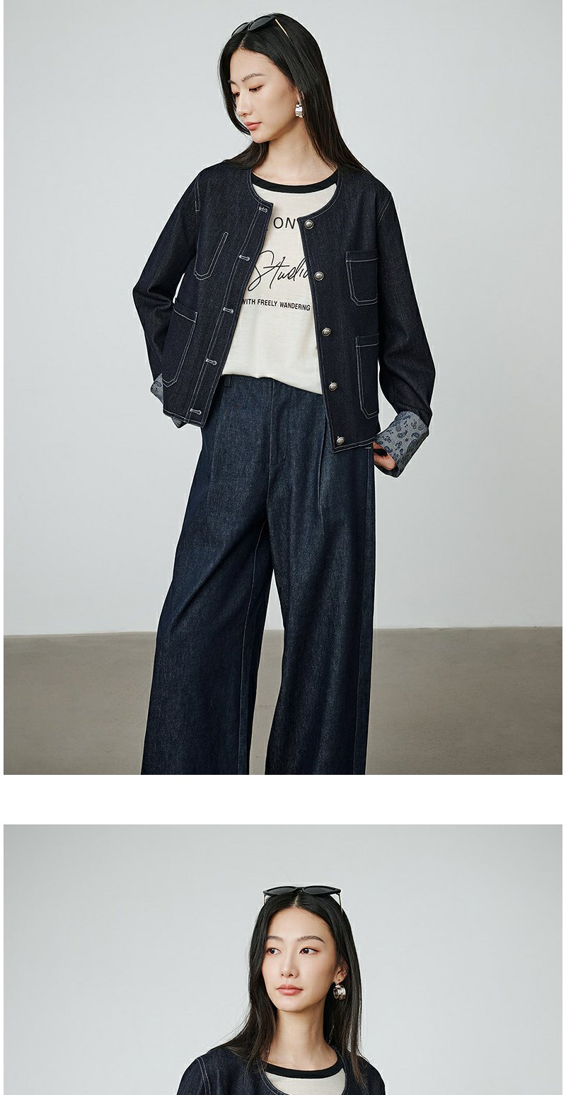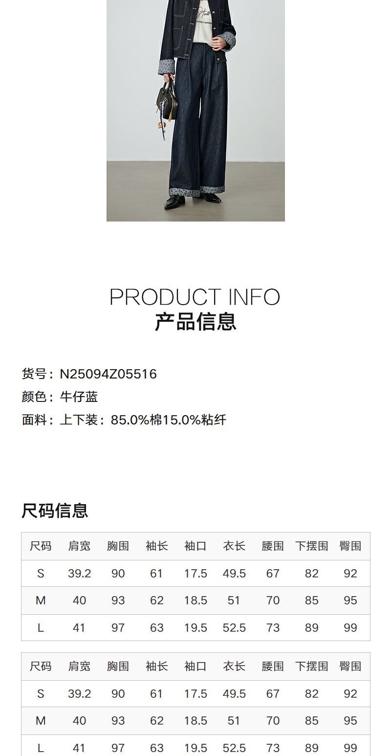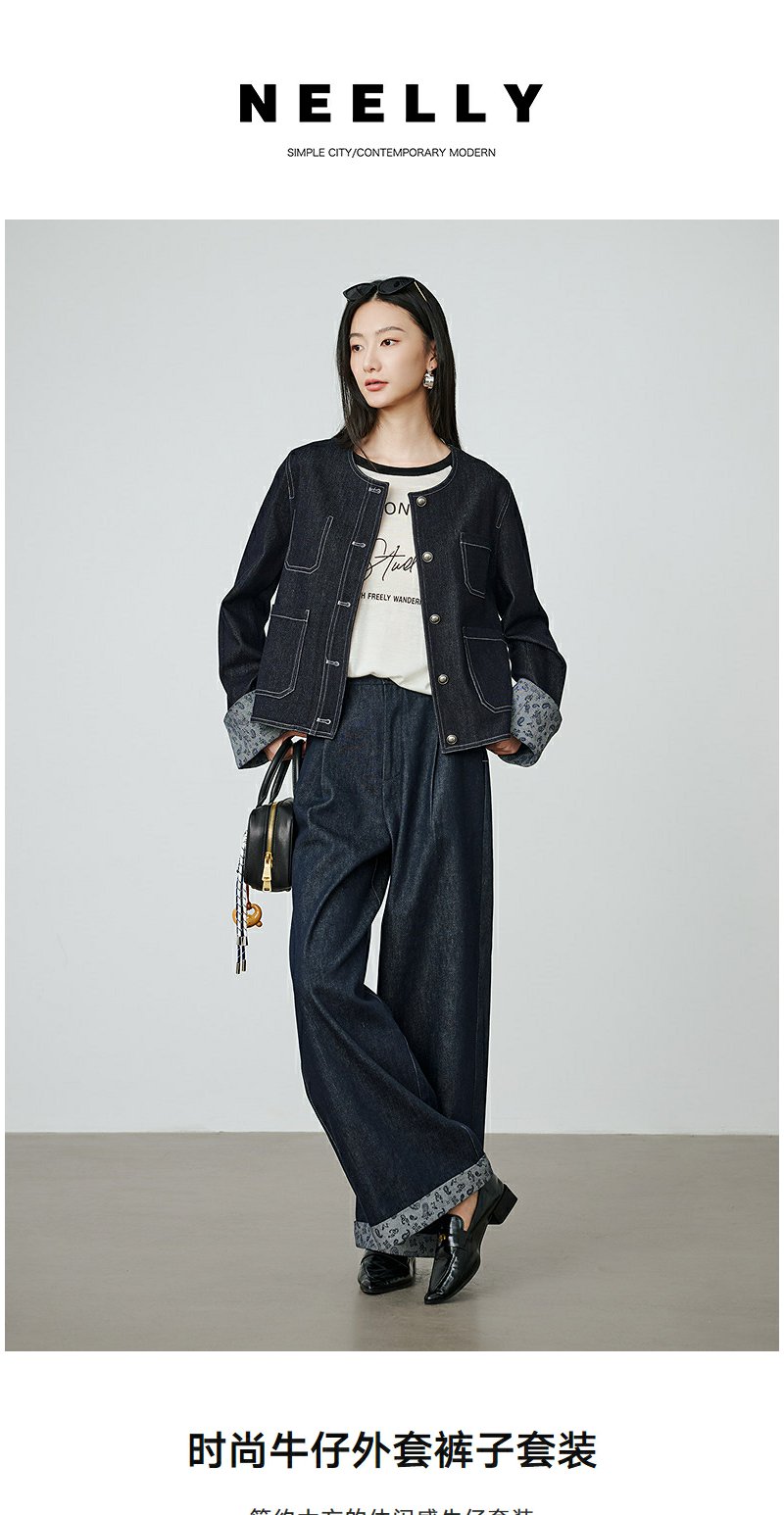 NEELLY纳俪商场同款秋季新款时尚简约牛仔套装女舒适个性两件套N25094Z05516