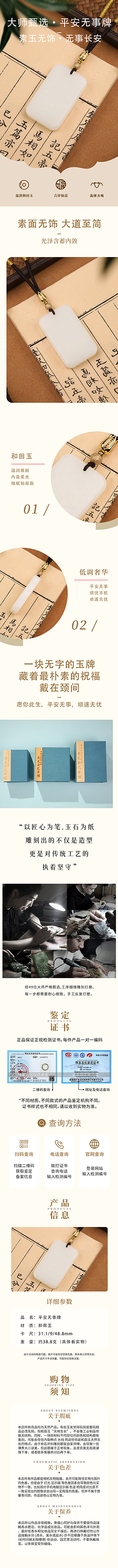 和田玉无事牌吊坠 男女同款平安玉佩 2026 马年转运挂坠
