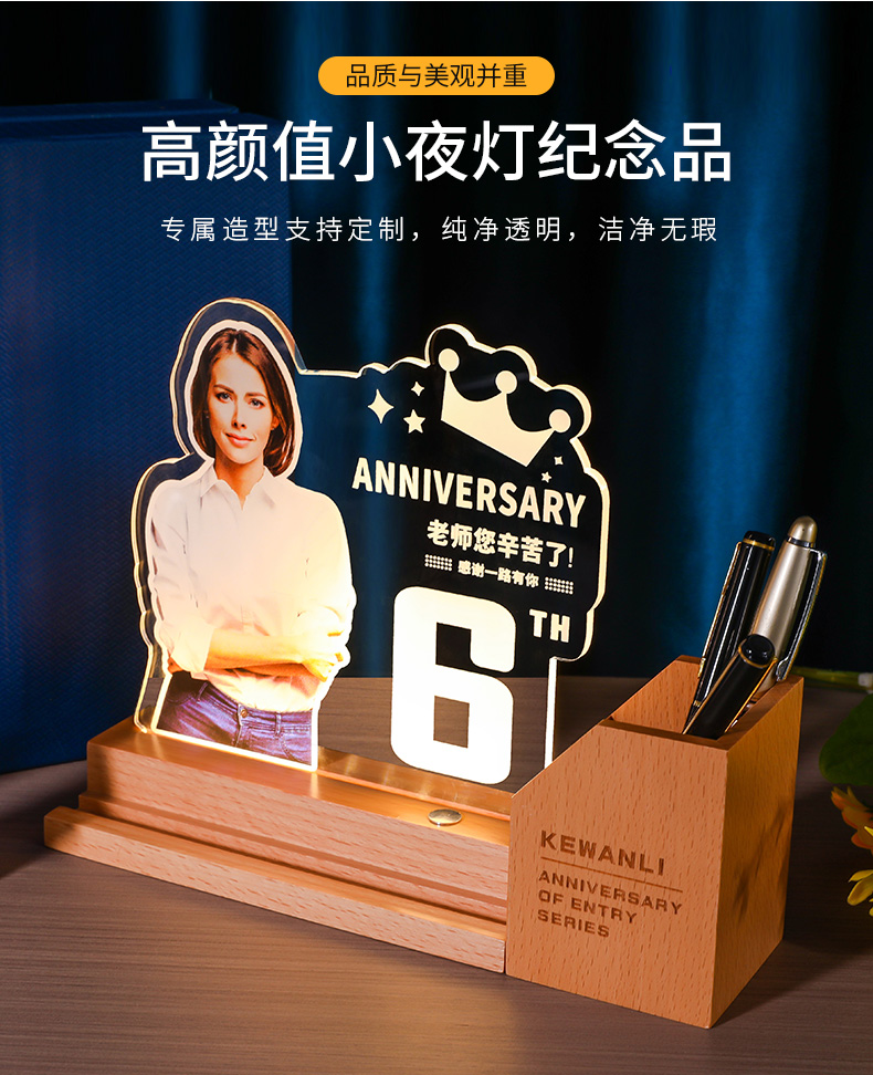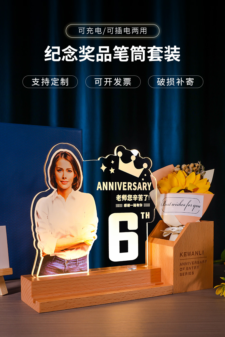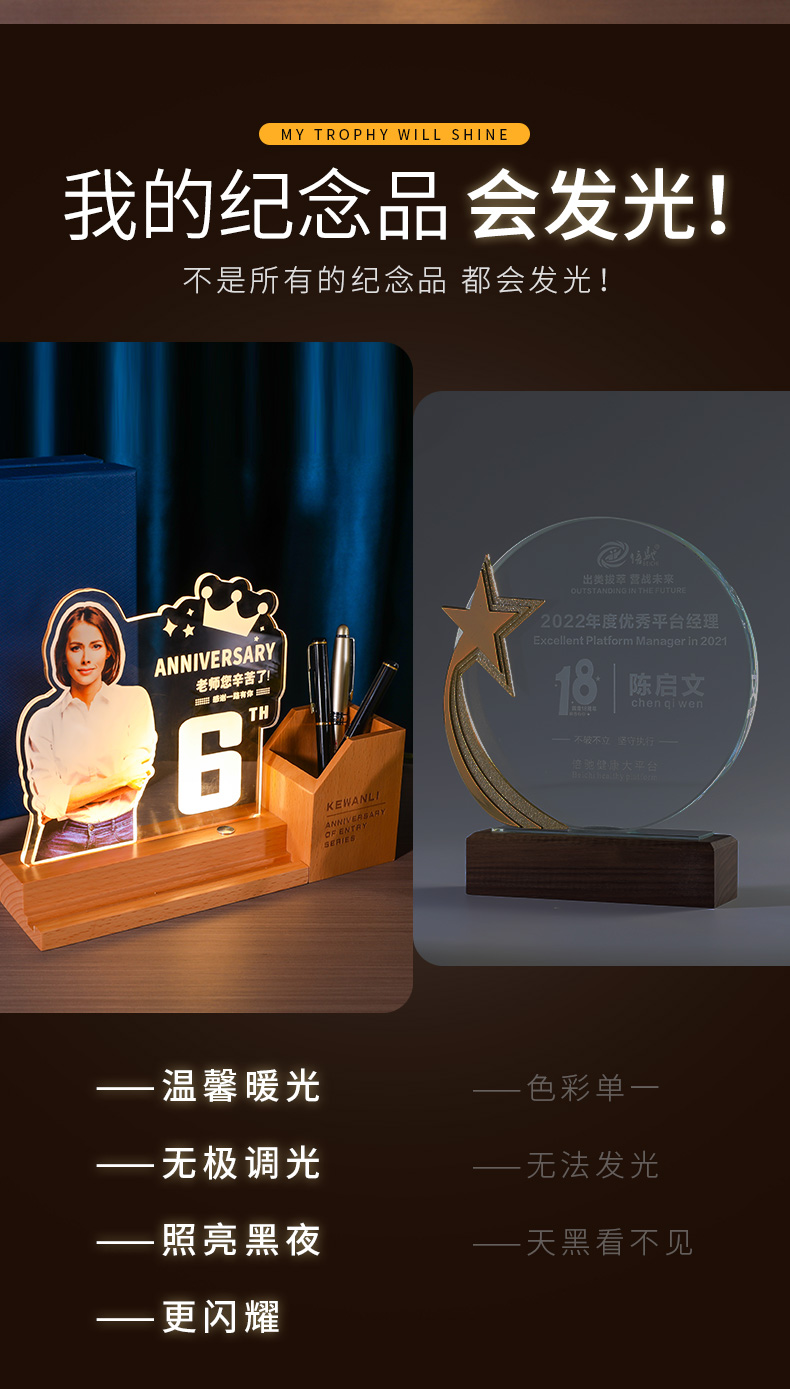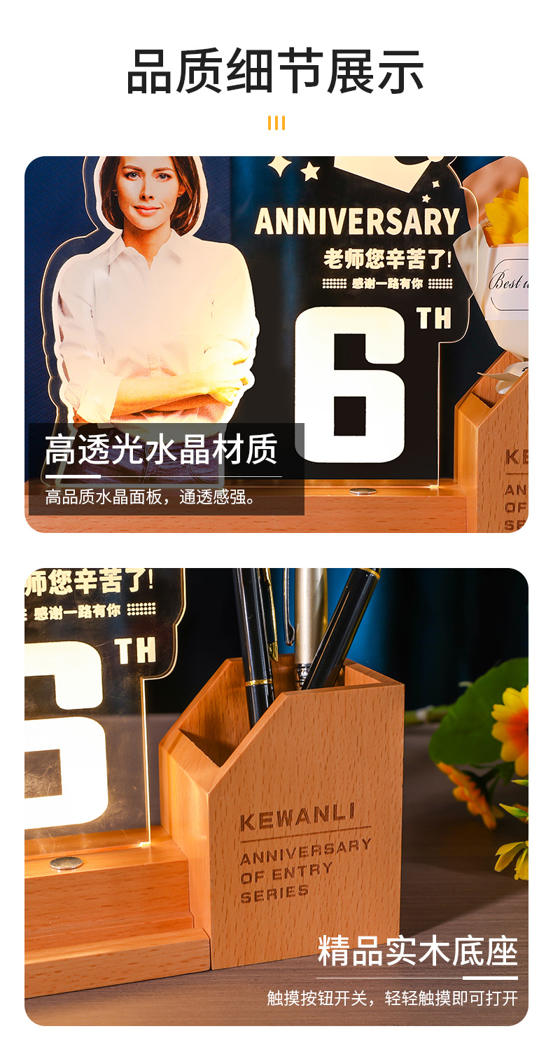 发光水晶奖杯笔筒定制定做教师节毕业光荣退休员工实木摆件纪念品