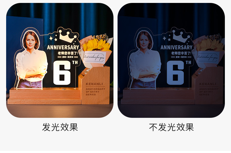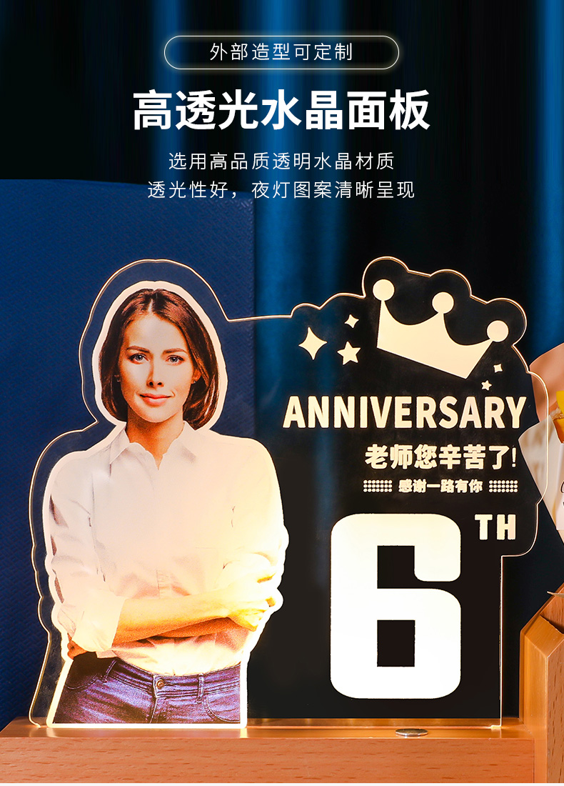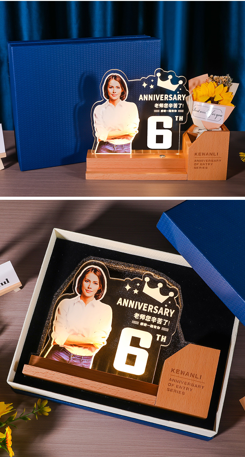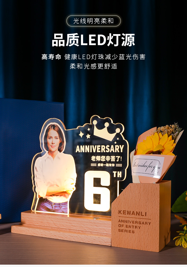 发光水晶奖杯笔筒定制定做教师节毕业光荣退休员工实木摆件纪念品