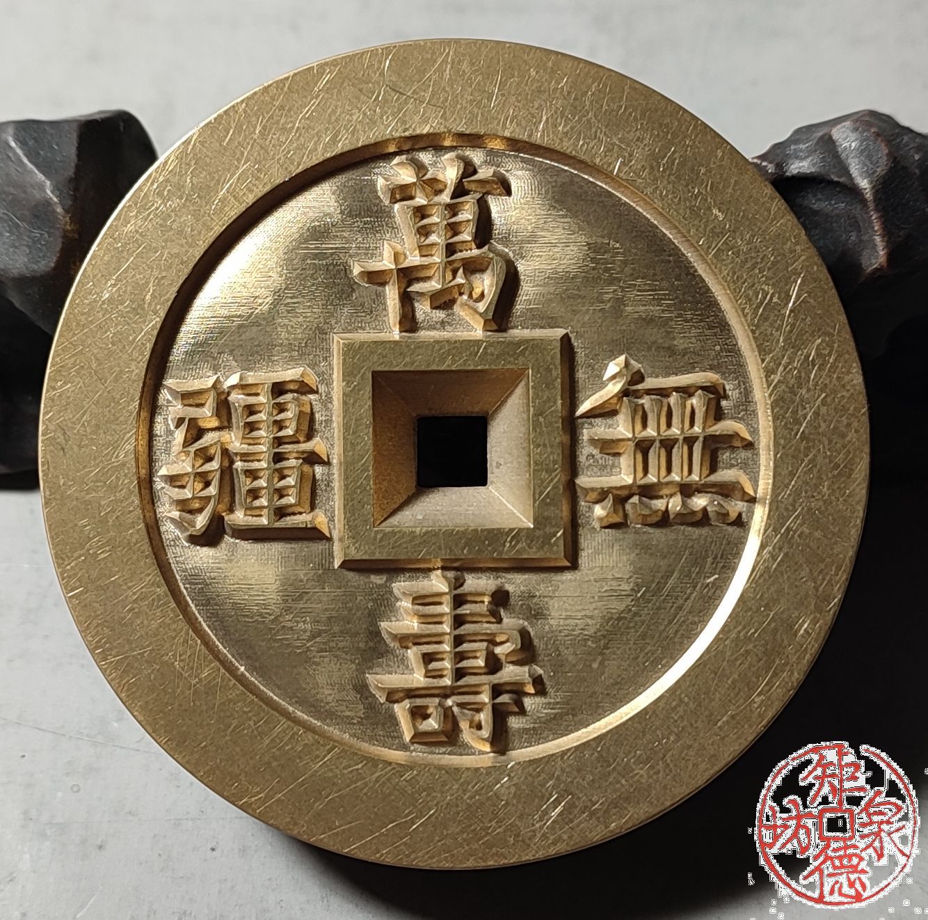 古泉书馆文创 万寿无疆背大雅 (厚)雕母 文房铜镇 DJ0022